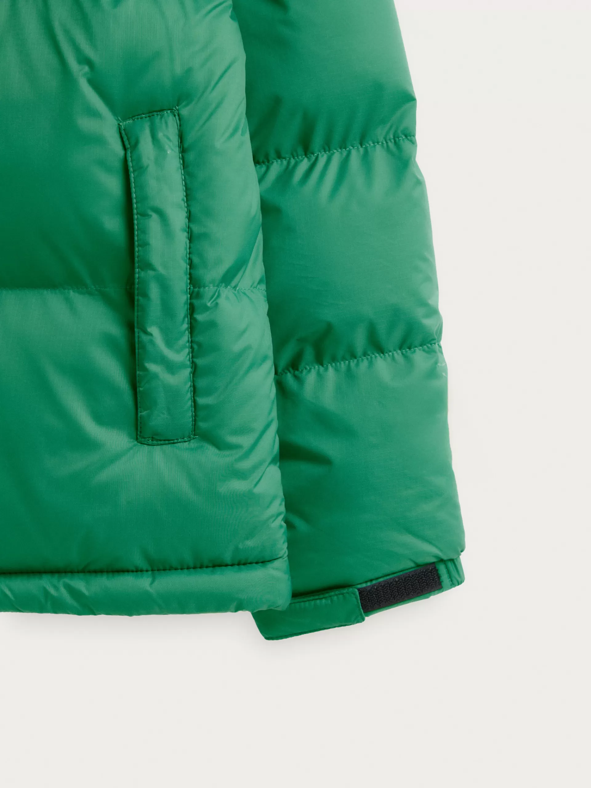 Parka acolchada bicolor con cuello subido y gorro oculto. Cuenta con cierre central mediante cremallera, dos bolsillo en la cintura con cierre de cremallera y puños elásticos ajustables. Detalle personalizado grabado en el frontal y en una de sus mangas. Bolsillo en el interior. Corte regular fit.