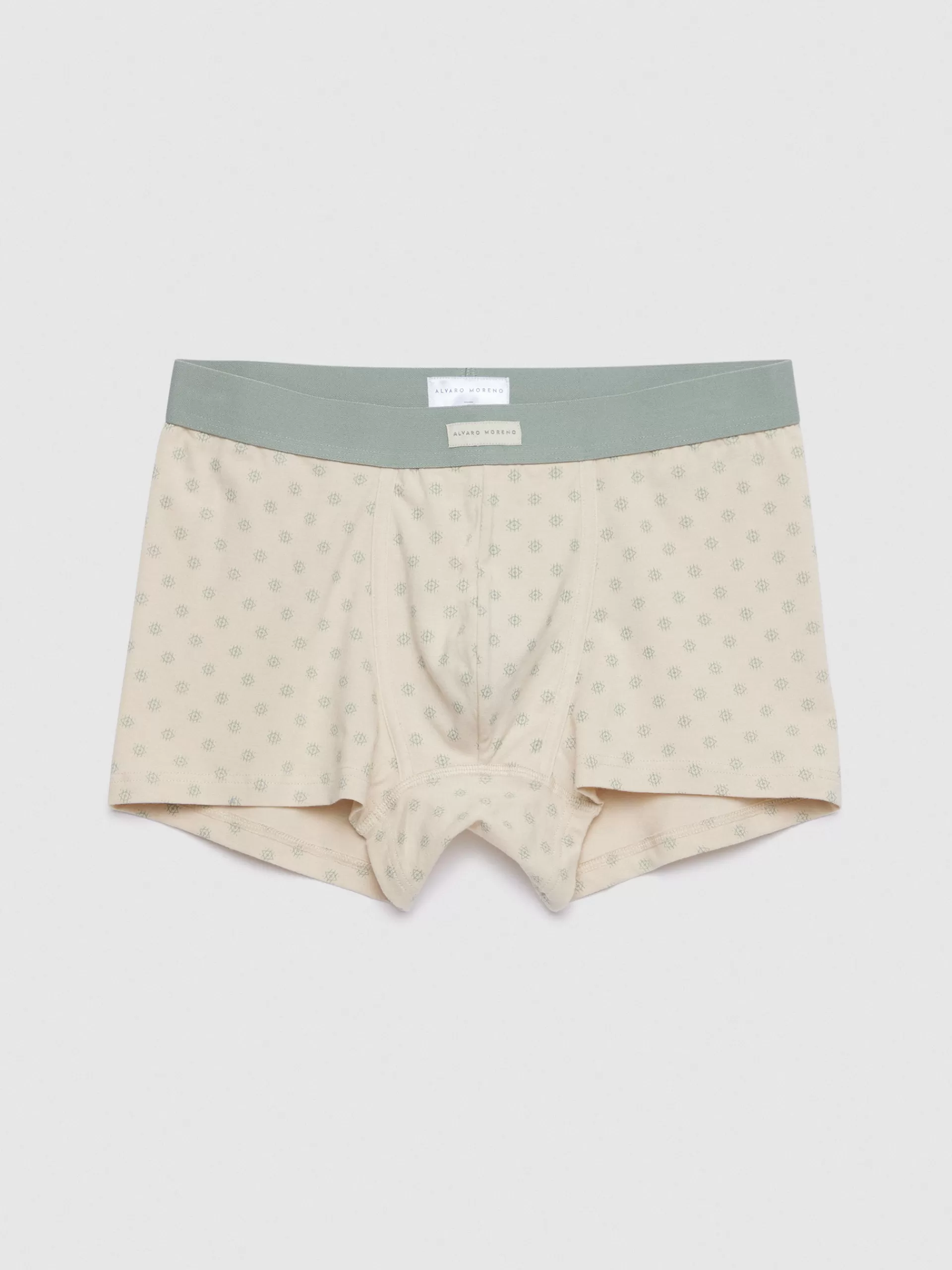 Bóxer con diseño personalizado de corte regular confeccionado en algodón elástico para un ajuste cómodo y ceñido.