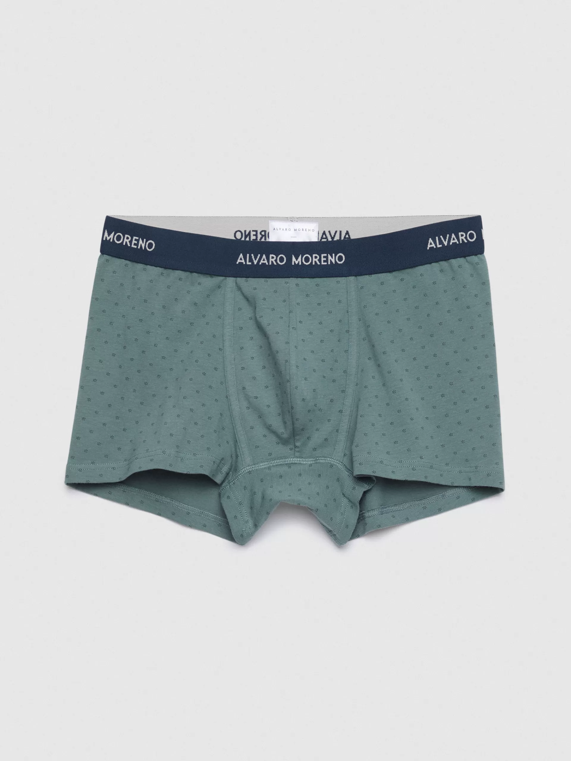 Bóxer con diseño personalizado de corte regular confeccionado en algodón elástico para un ajuste cómodo y ceñido.