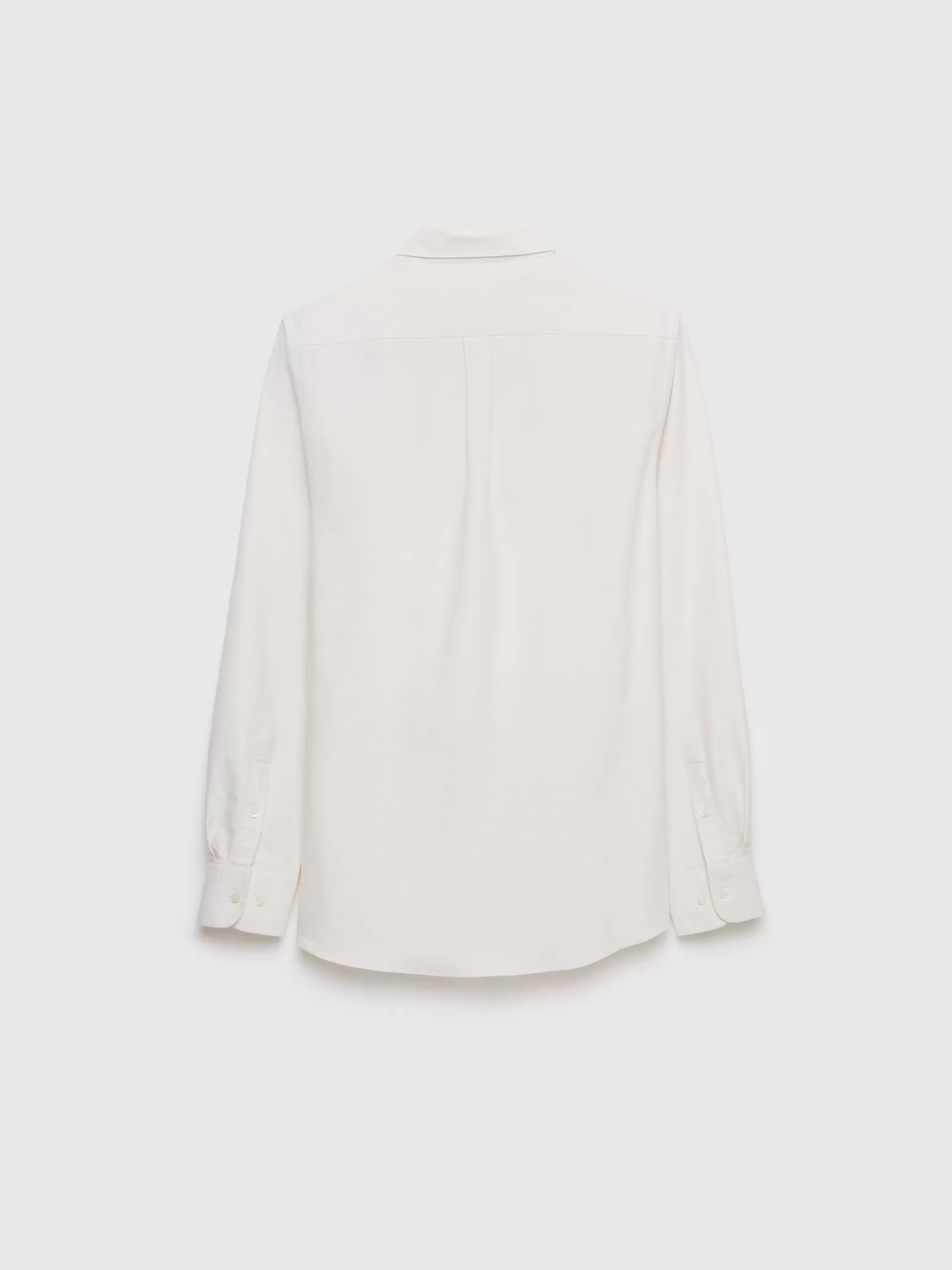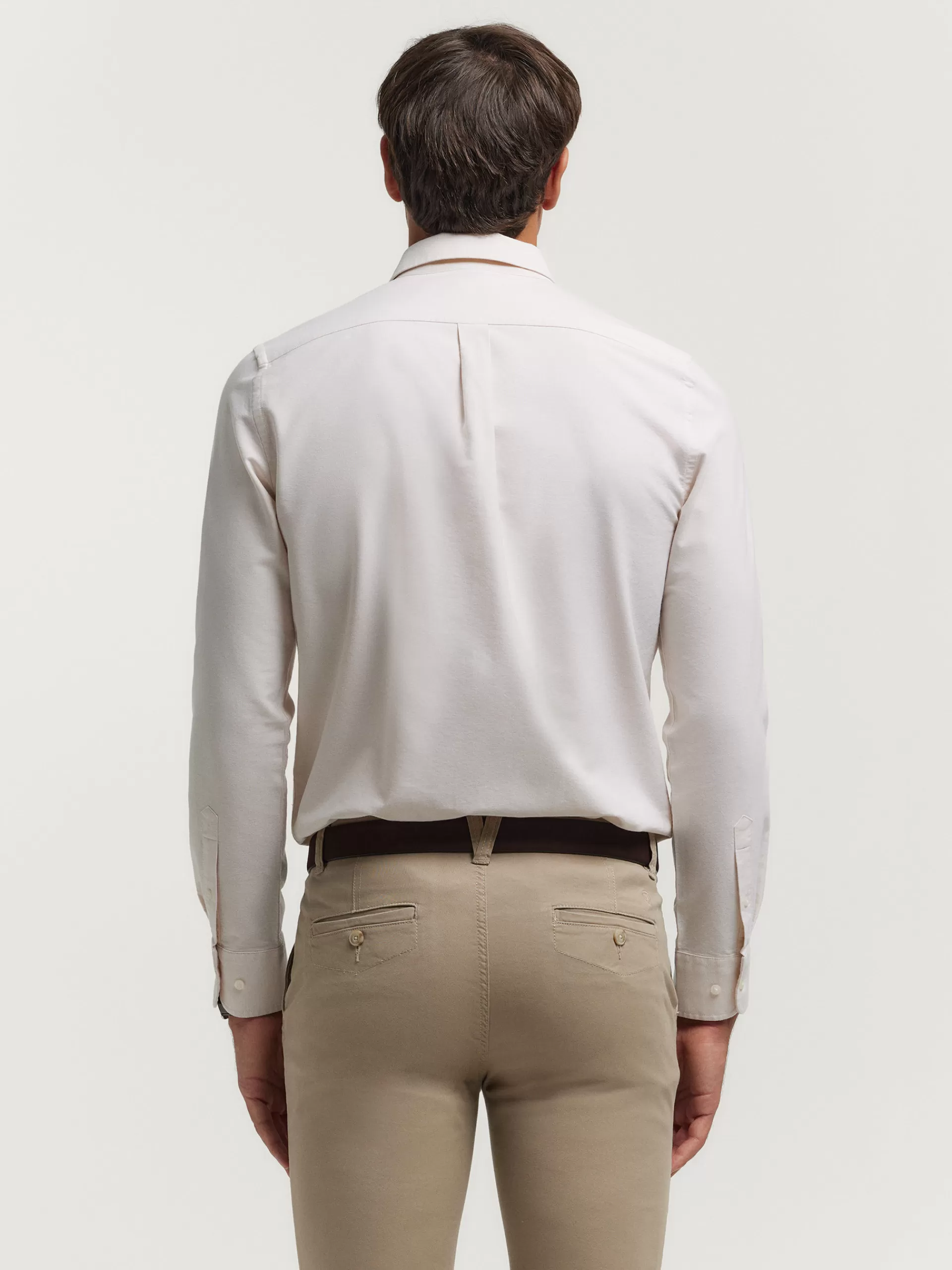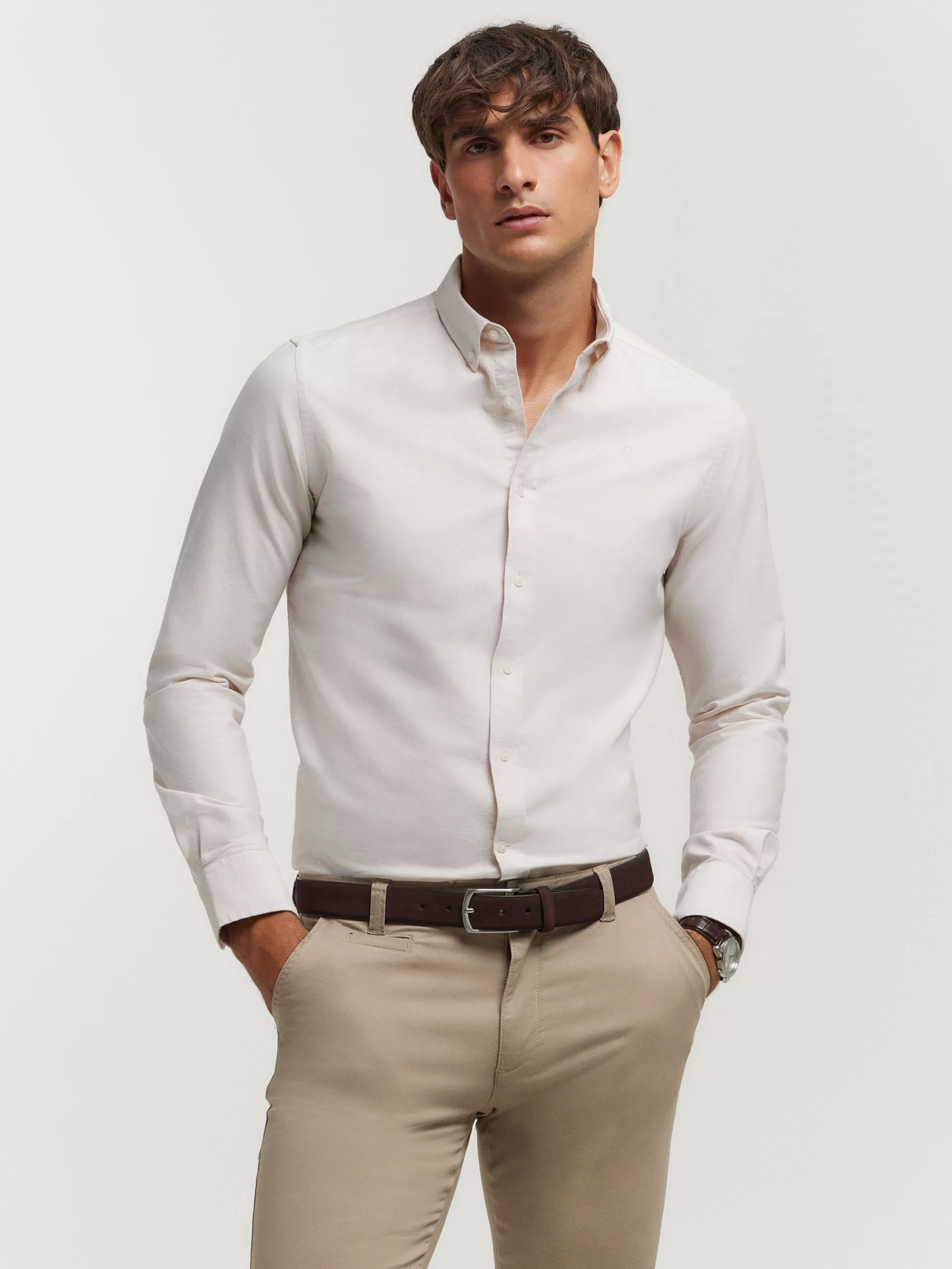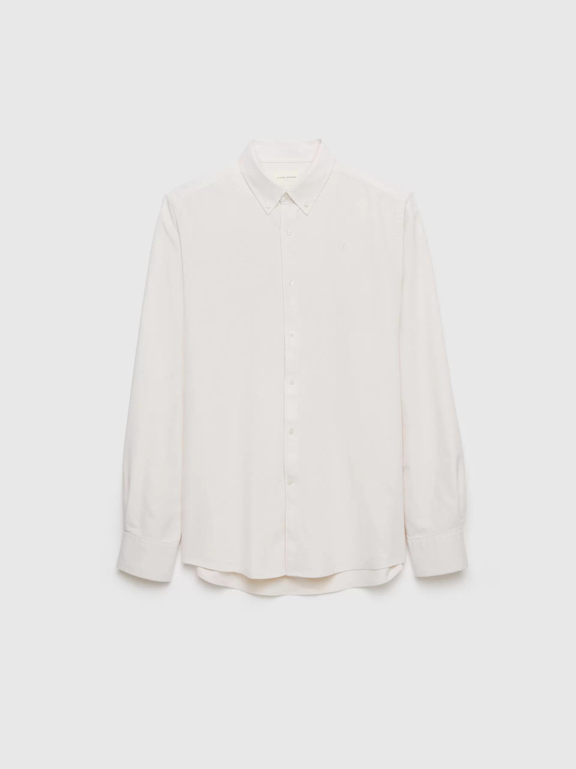 Camisa confeccionada en algodón con cuello clásico de botón, logo grabado en el frontal al tono y manga larga de puños simples. Corte regular fit.
