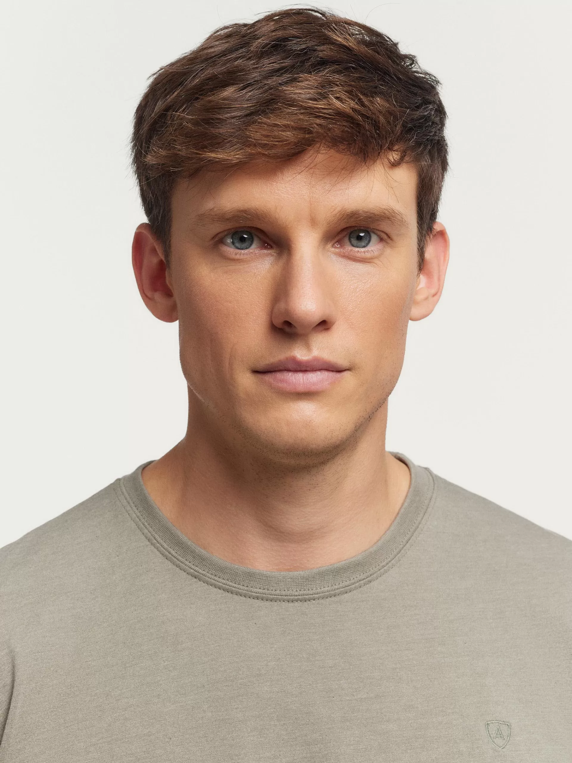Camiseta confeccionada con tejido jaspeado. Cuenta con cuello redondo, manga corta y etiqueta canvas en el lateral. Corte regular fit.
