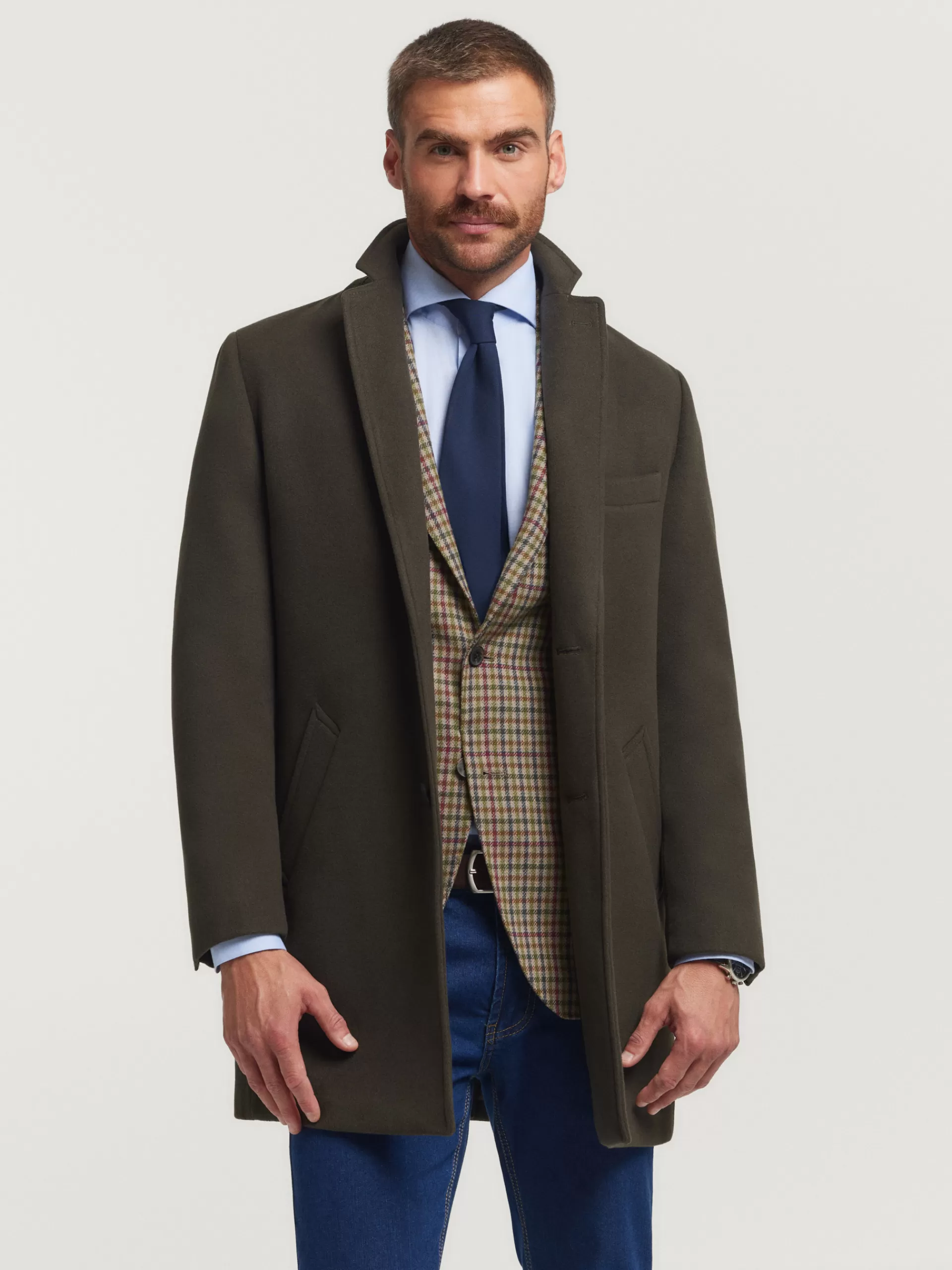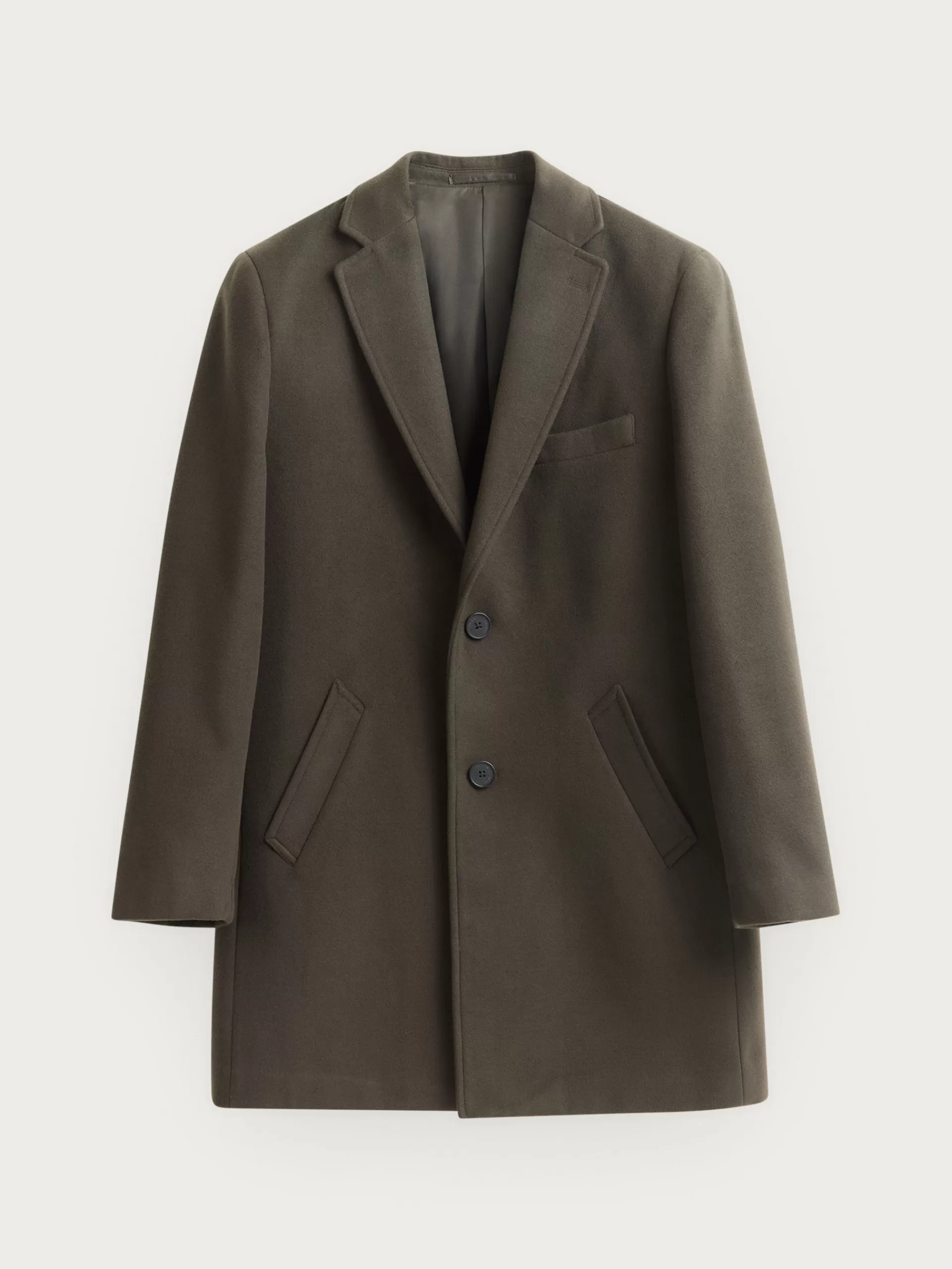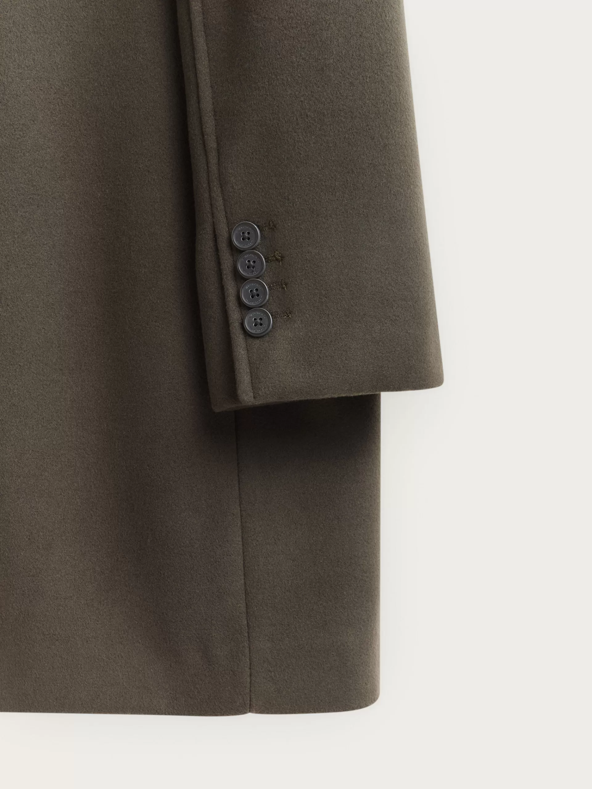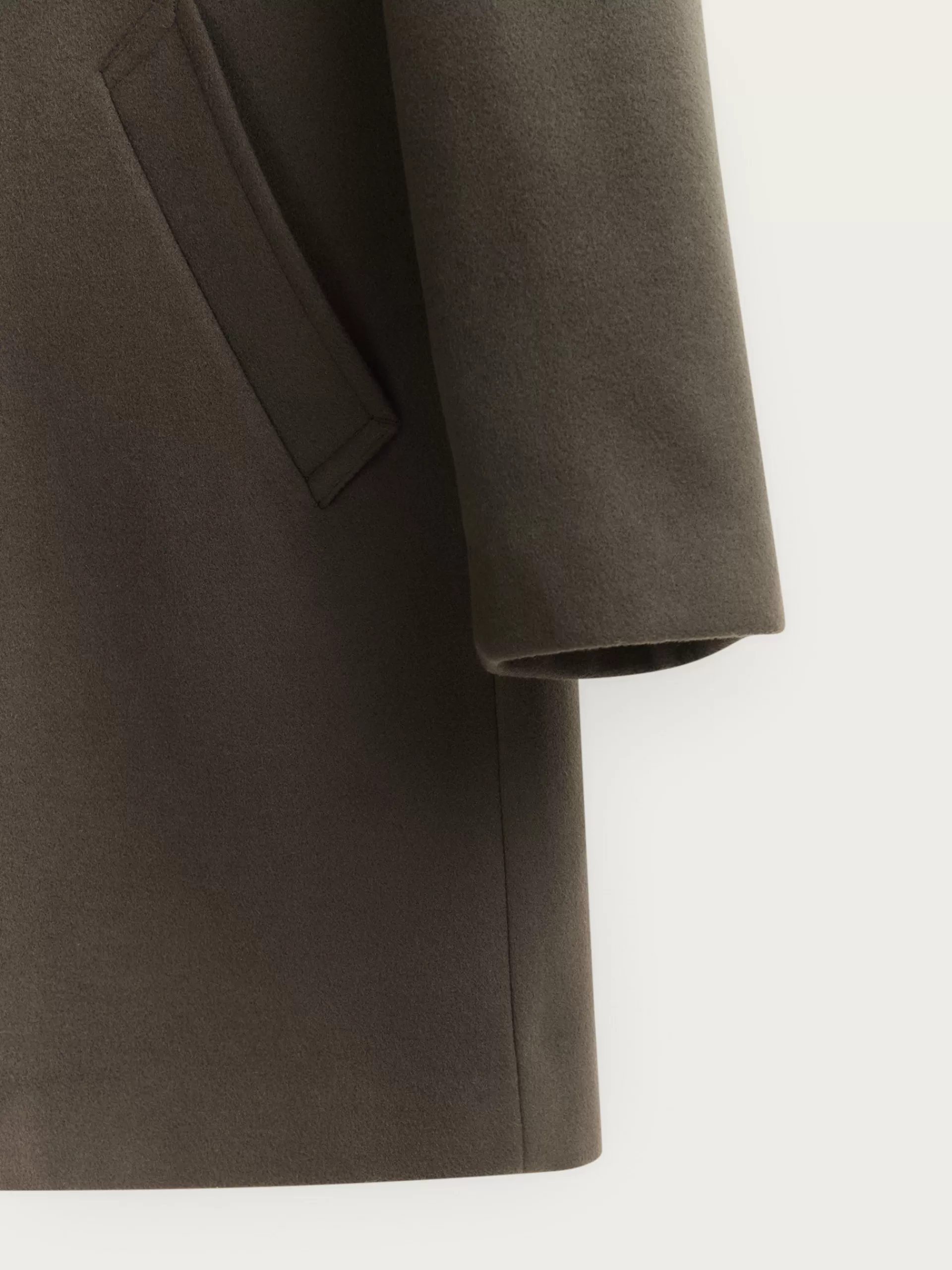 Abrigo de paño liso con cuello y solapa. Cierre central mediante botones, manga larga con botones en su terminación y …