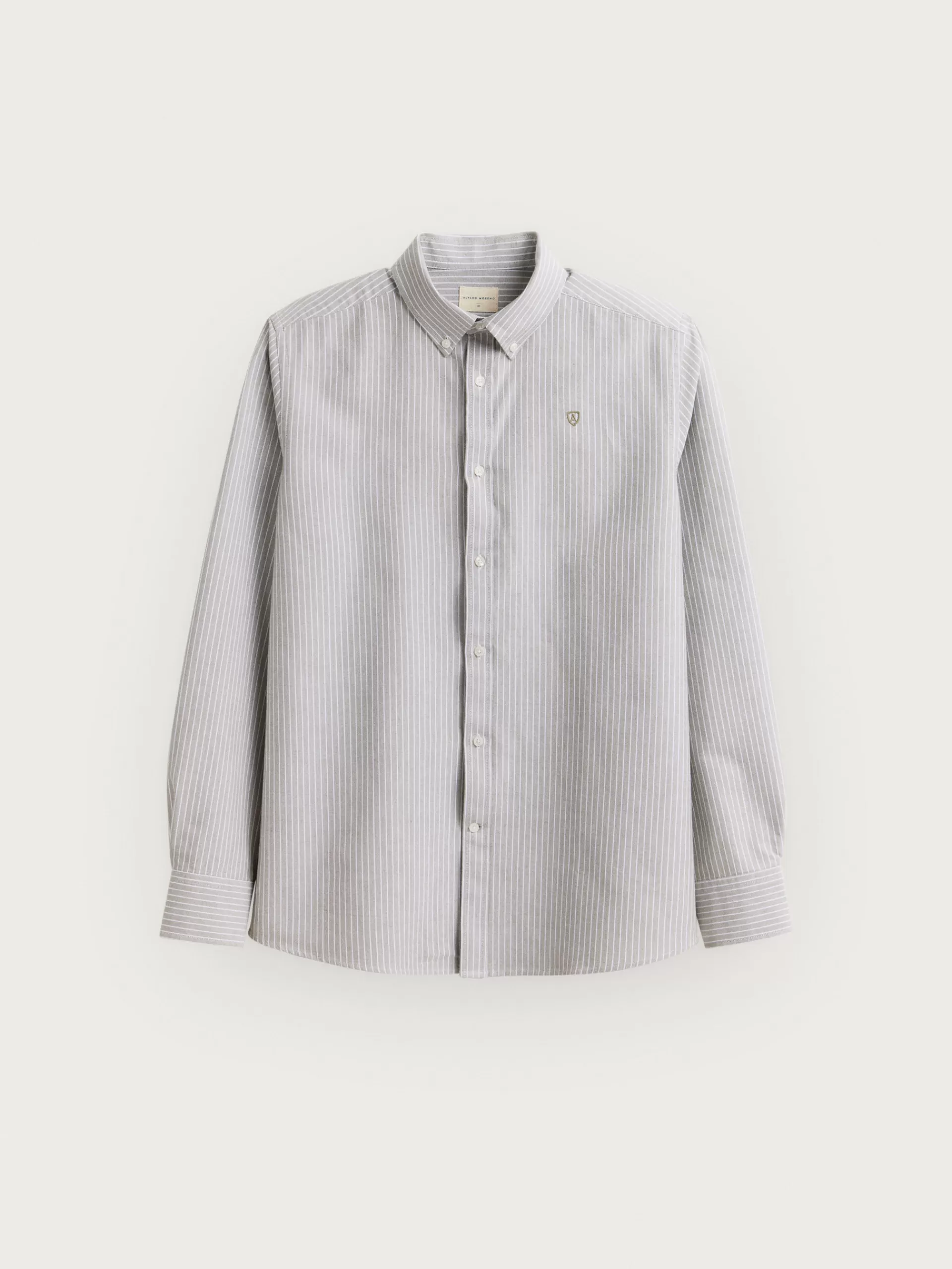 Camisa de estilo a rayas confeccionada en algodón. Cuenta con cuello clásico de botón, manga larga con puños simples y logo de la marca grabado en el frontal. Corte regular fit.