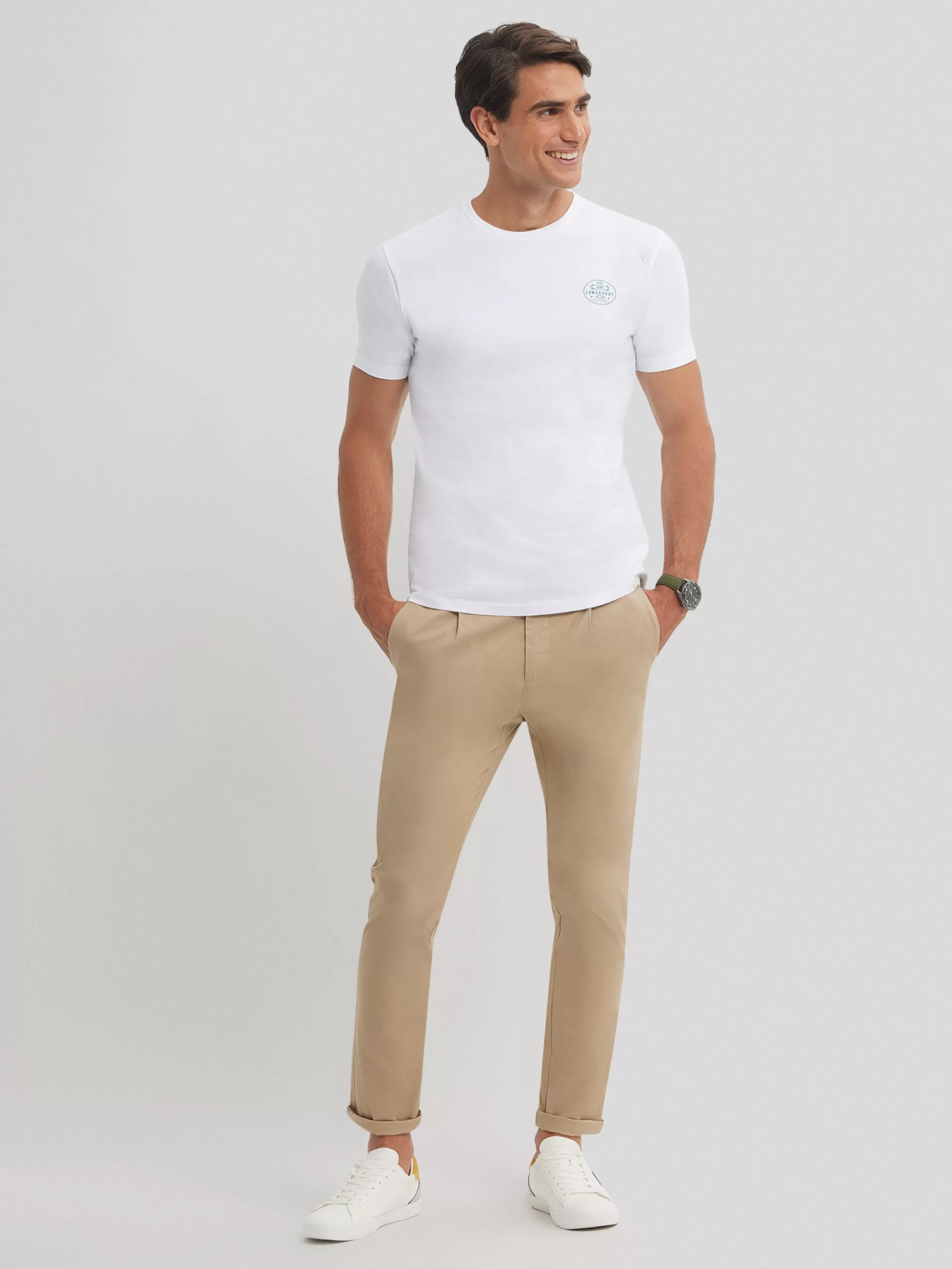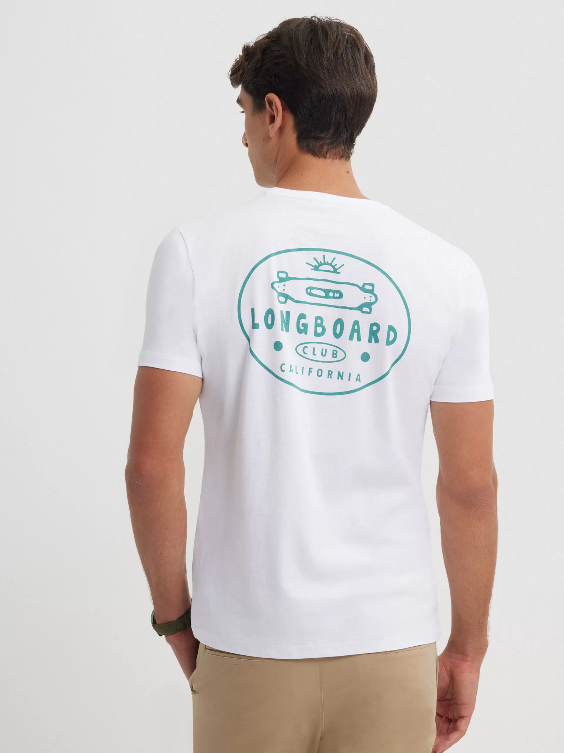Camiseta con estampado personalizado a la altura del pecho y en la espalda. Cuenta con cuello redondo, manga corta y etiqueta canvas en el bajo. Corte regular fit.