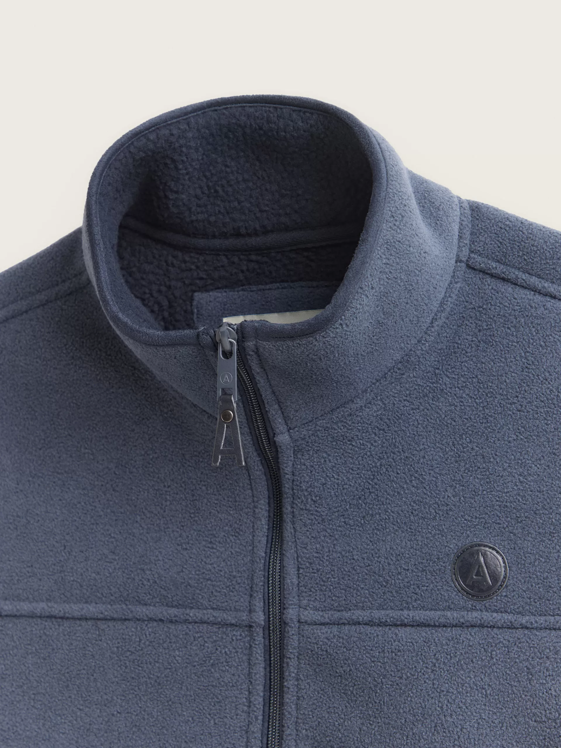 Chaleco confeccionado en tejido avivado en antelina en su exterior y forrado en su interior en borreguillo. Cuenta con cierre central mediante cremallera personalizada, dos bolsillos en su exterior y logo grabado en su frontal. Corte regular fit.