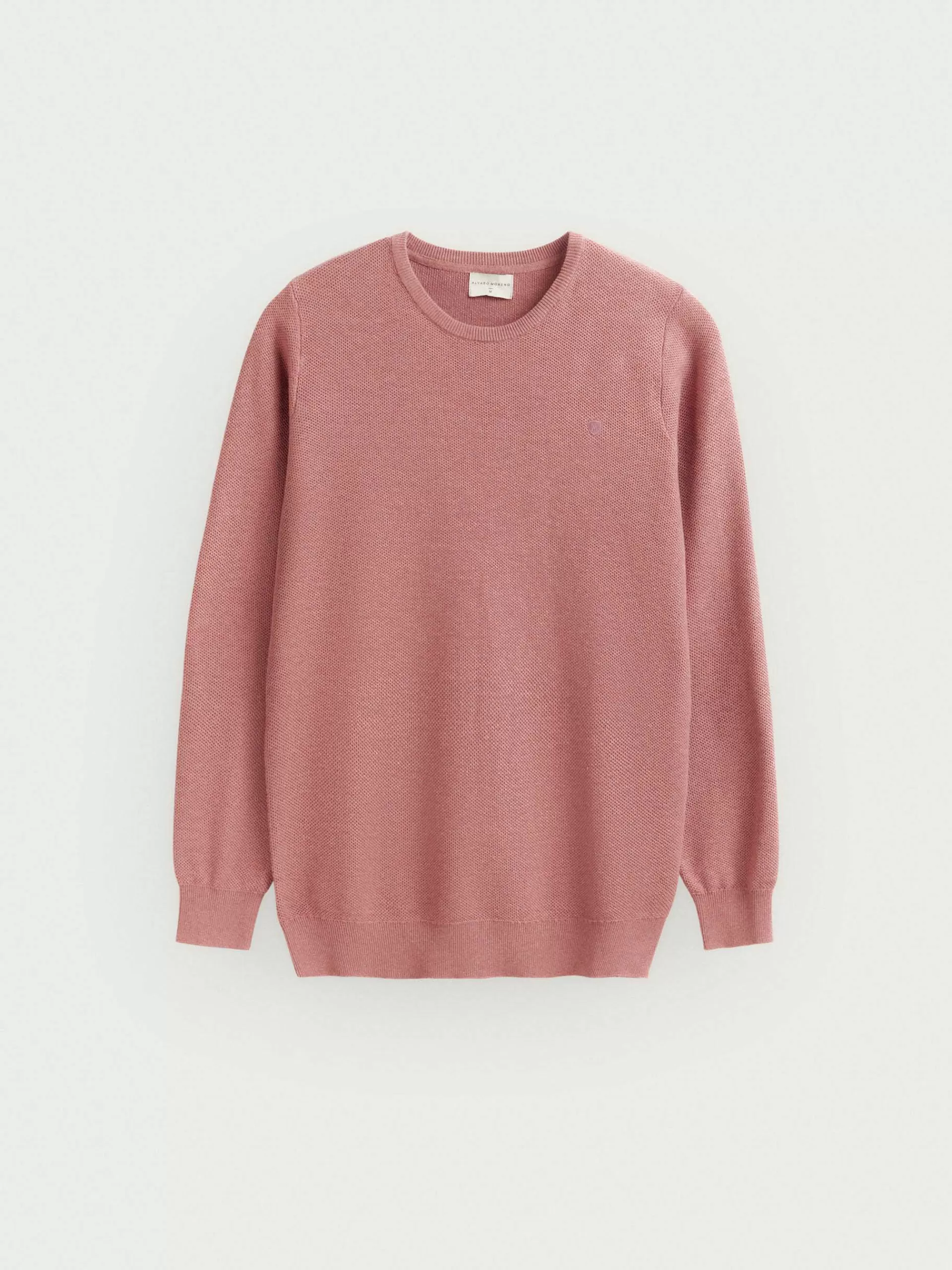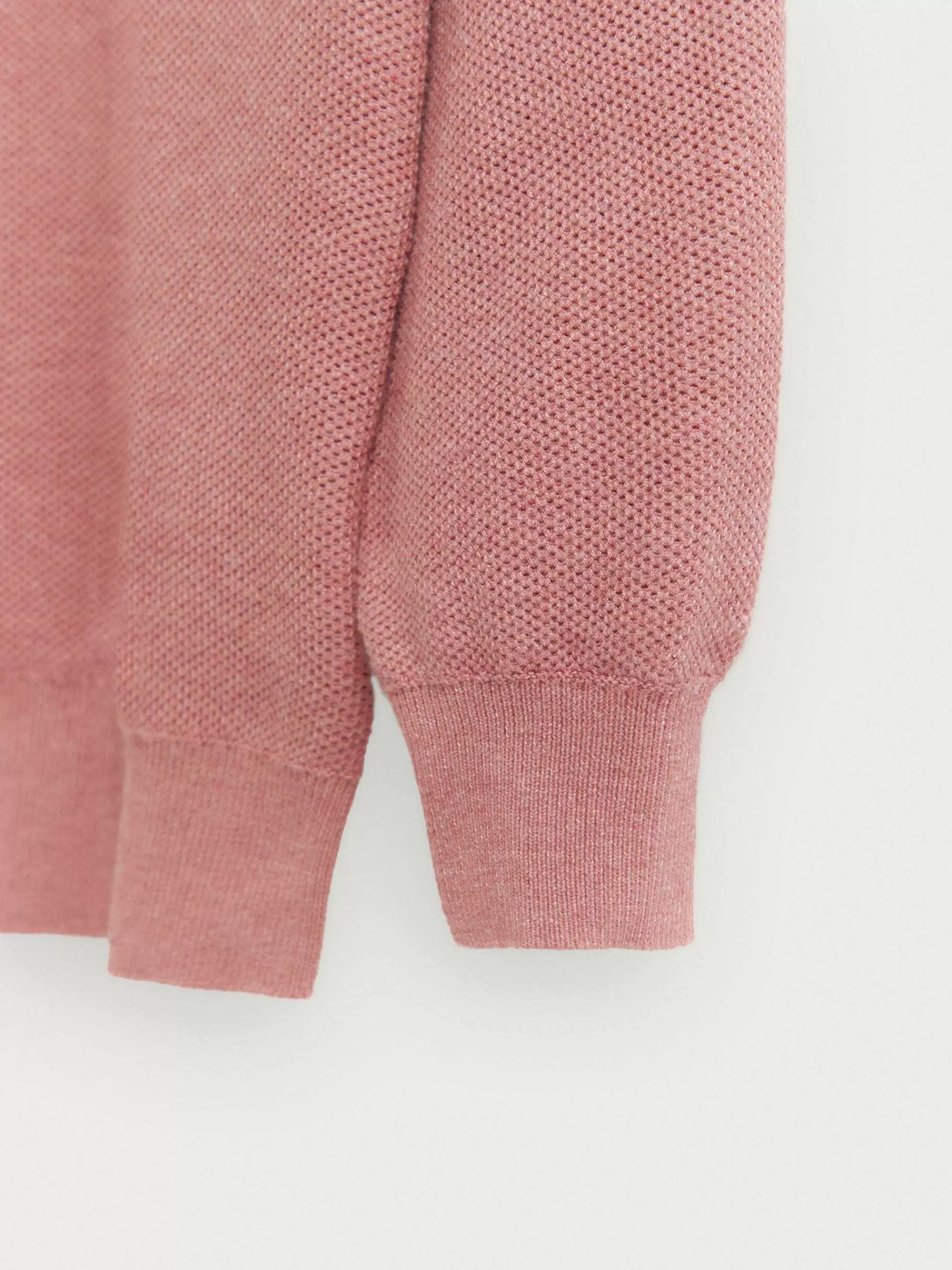 Jersey con tejido de estructura, cuello a la caja y logo de la marca bordado en el frontal al tono. Bajo, puños y cuello en acabado ribeteado de punto elástico para mayor comodidad. Corte regular fit.