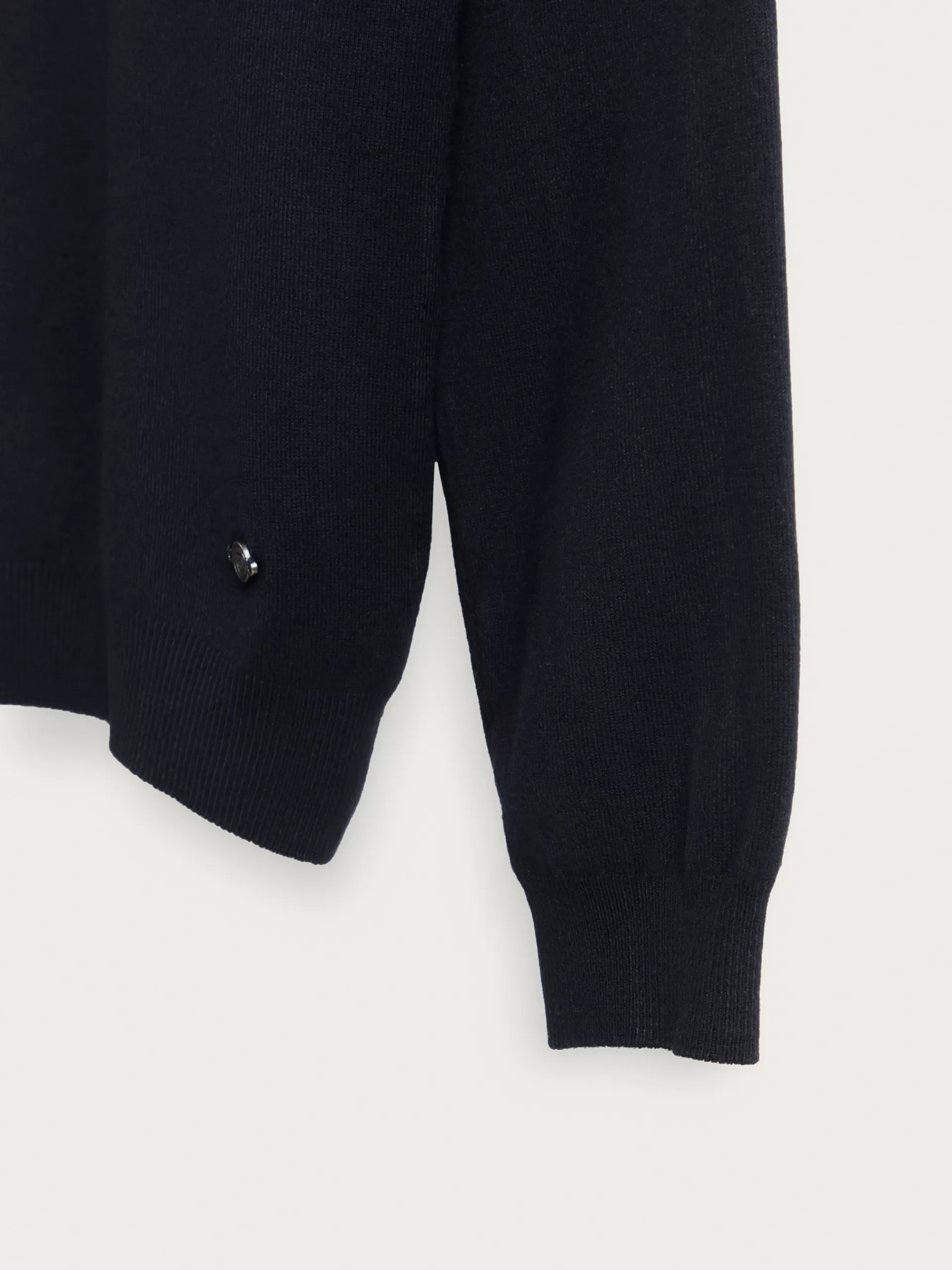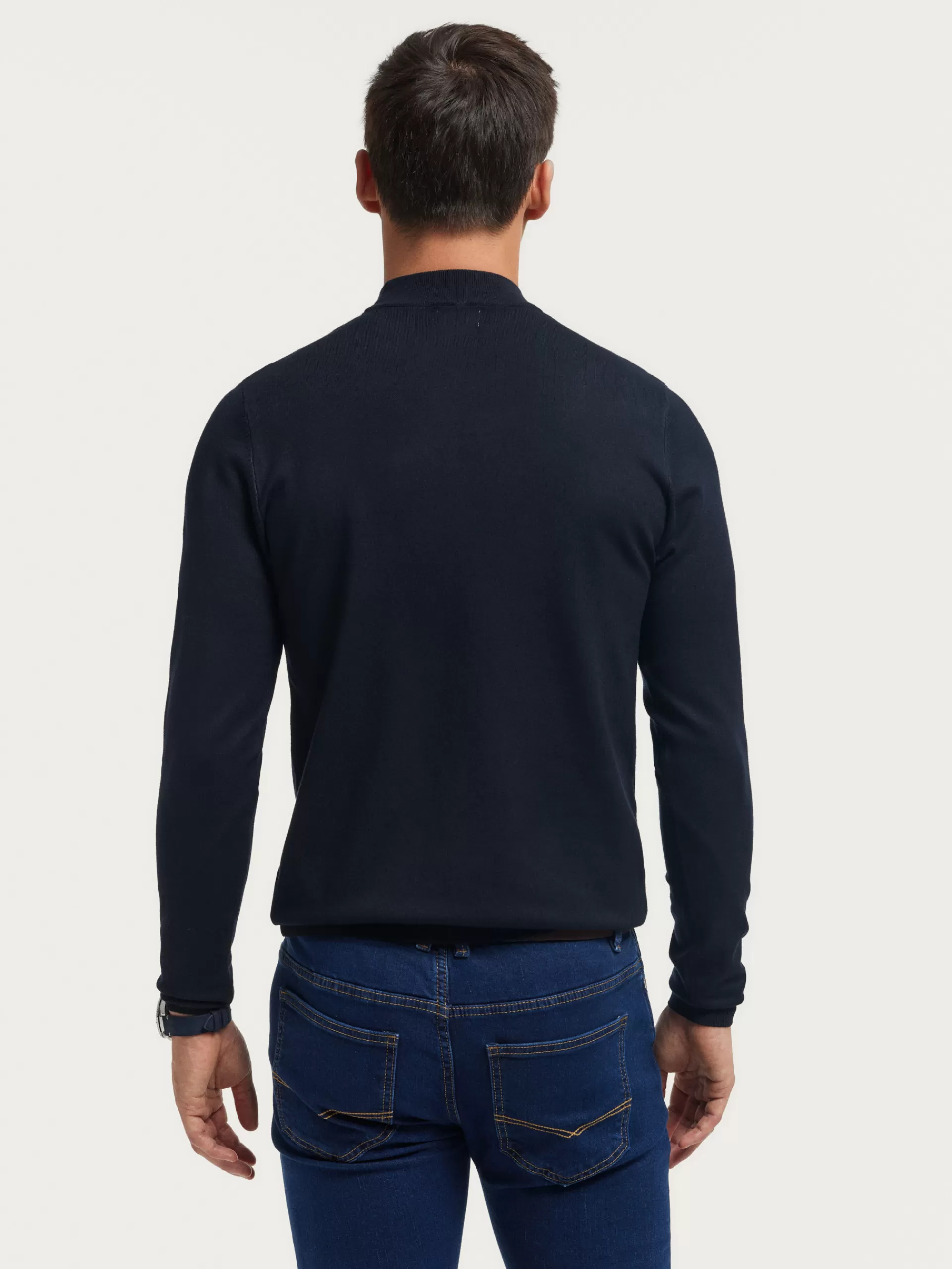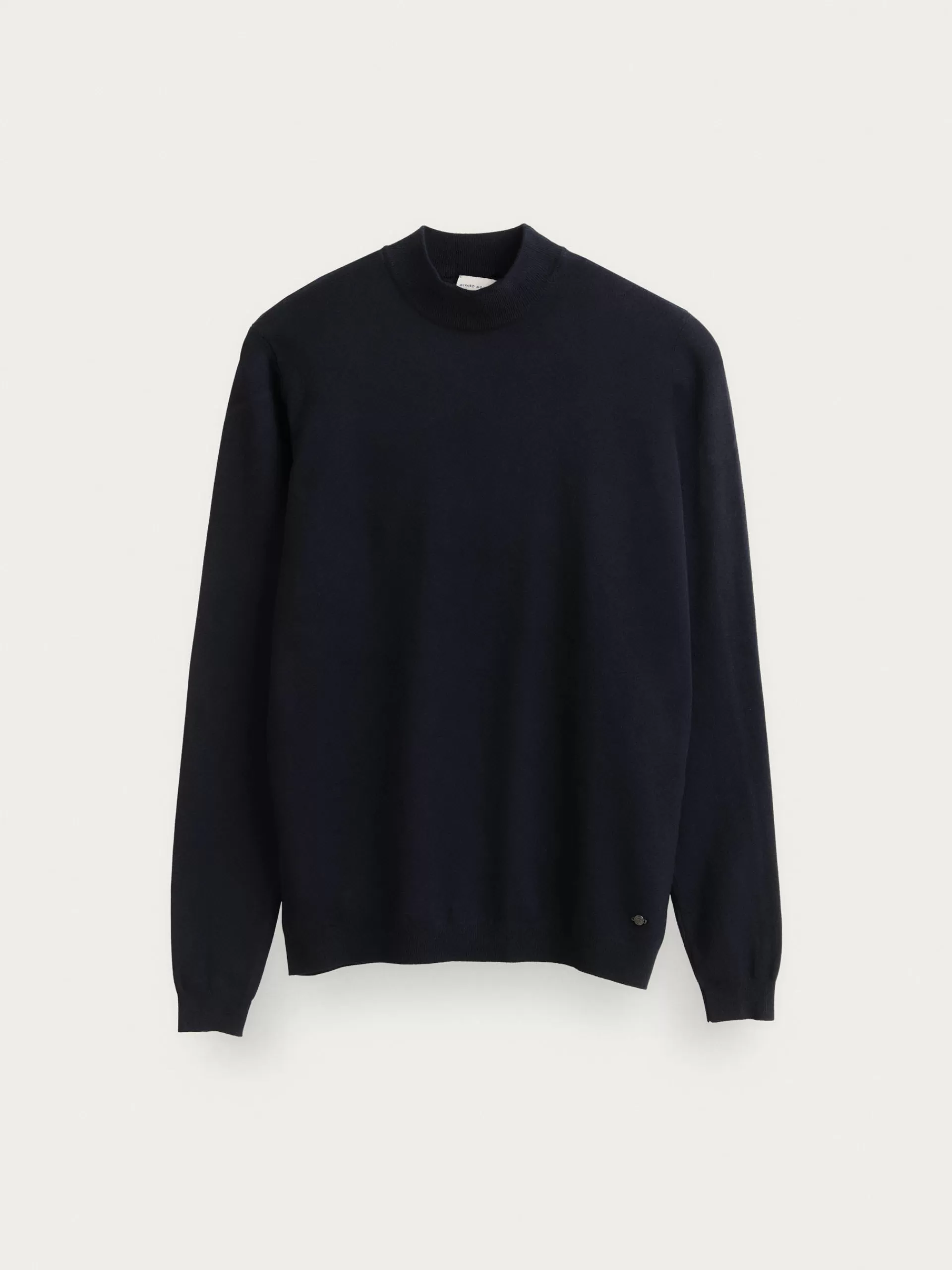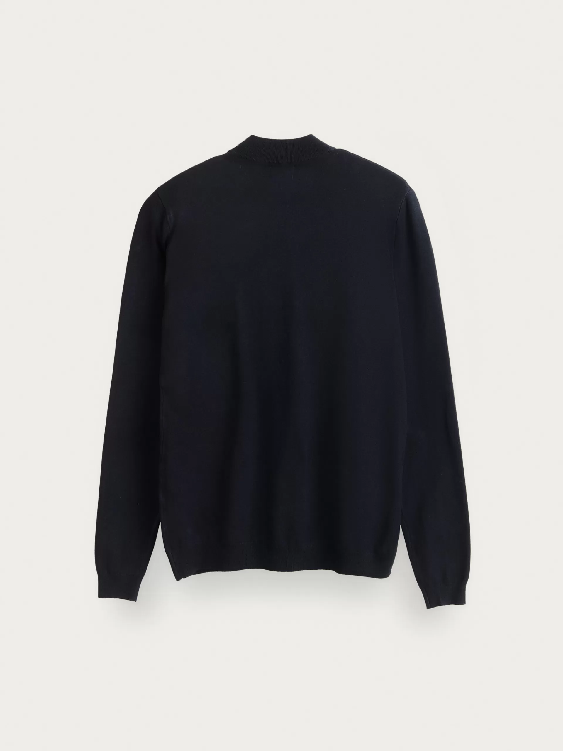 Jersey con cuello perkins y manga larga. Esta prenda de fina estructura, cuenta con detalle personalizado con el logo de la marca en el bajo y con sus puños, cintura y cuello ribeteados.