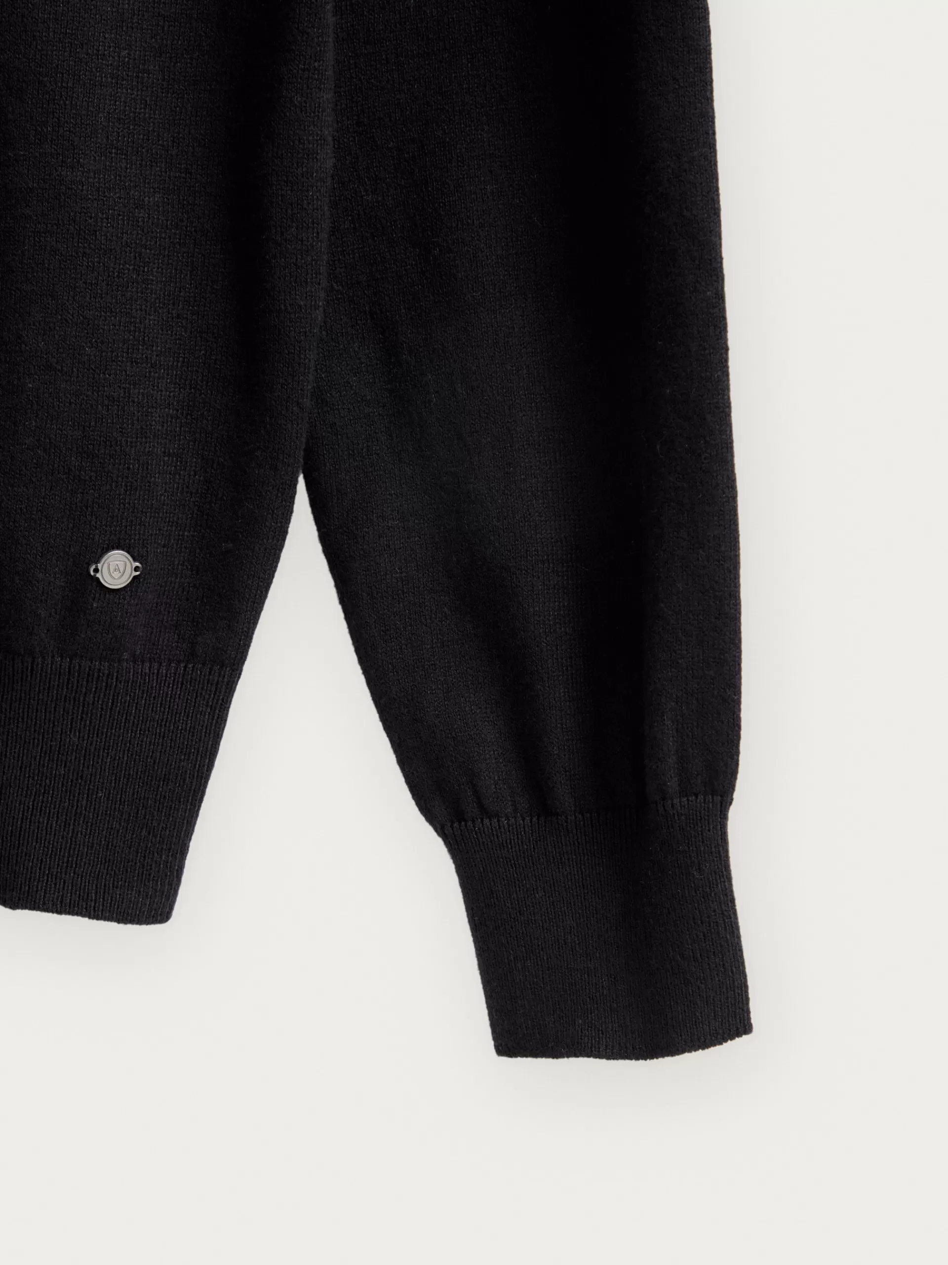 Jersey con cuello estilo cisne confeccionado en algodón y cachemira. Cuenta con manga larga, detalle metálico personal…