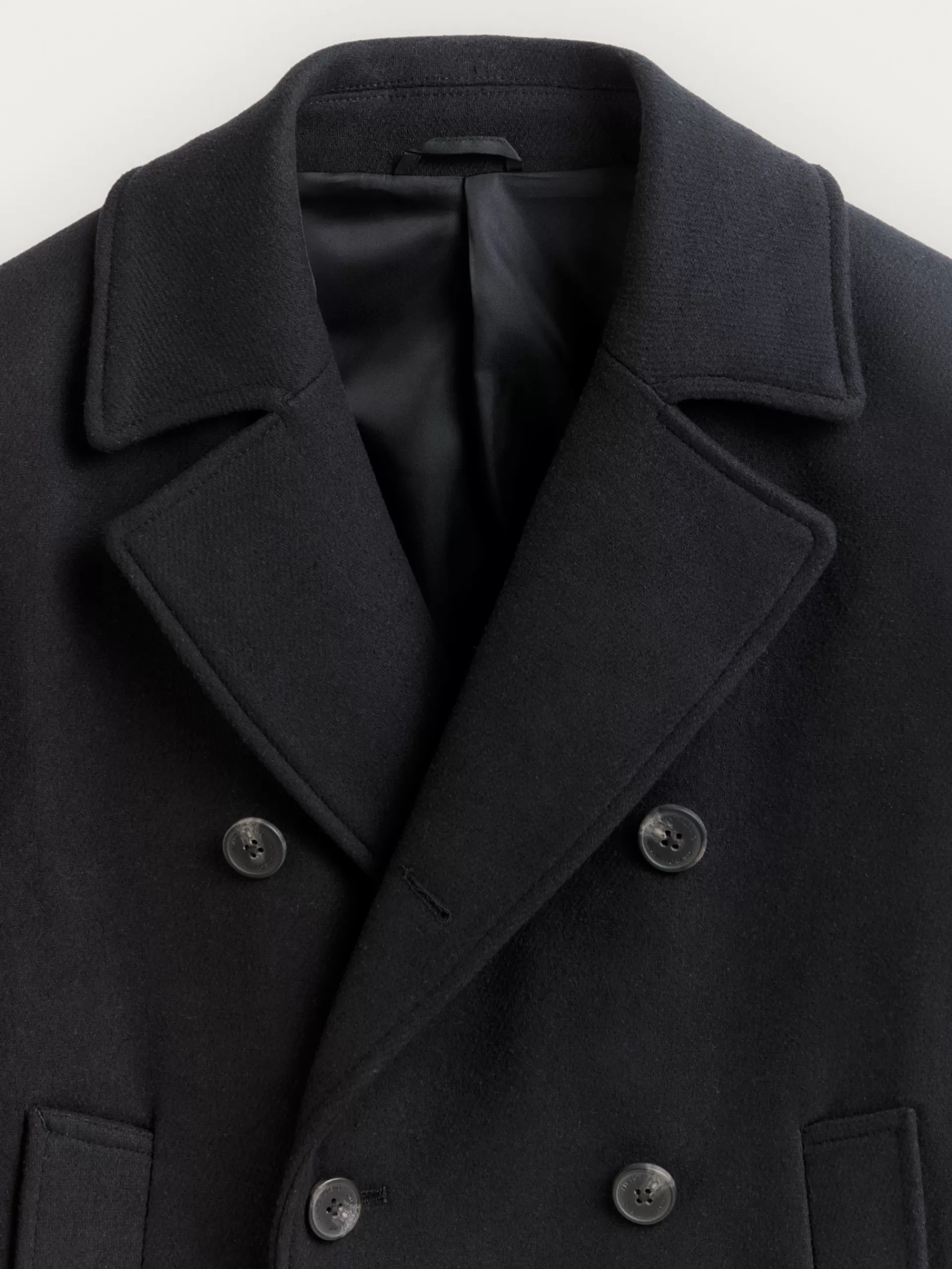 Abrigo de corte regular fit confeccionado en diferentes materiales de los cuales destaca la lana. Cuenta con cuello y so…