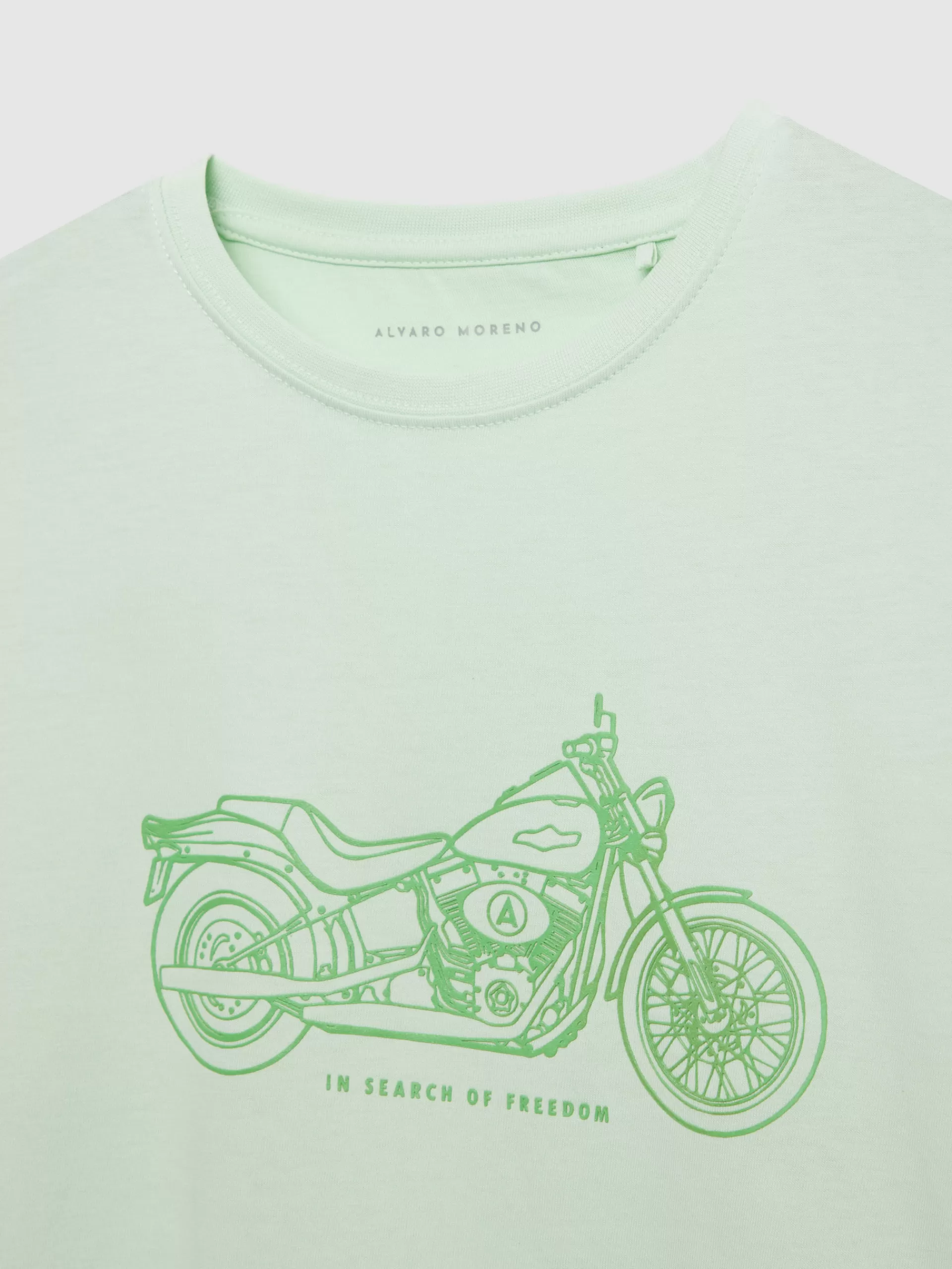 Camiseta con estampado personalizado en el frontal. Cuenta con cuello redondo, manga corta y corte regular fit.