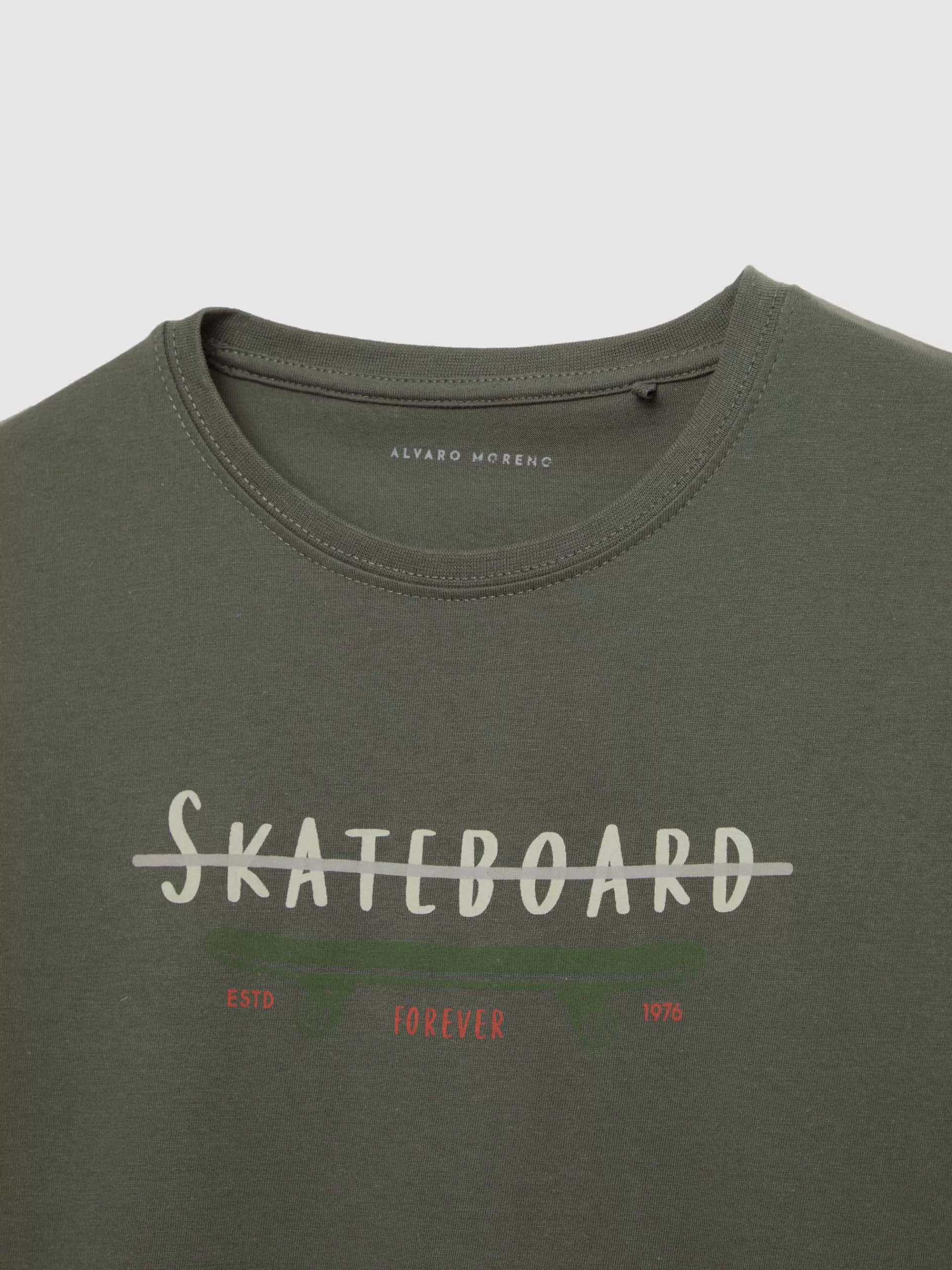 Camiseta con estampación personalizada en el frontal confeccionada en algodón. Cuenta con cuello redondo, manga corta y etiqueta canvas en el bajo. Corte regular fit.