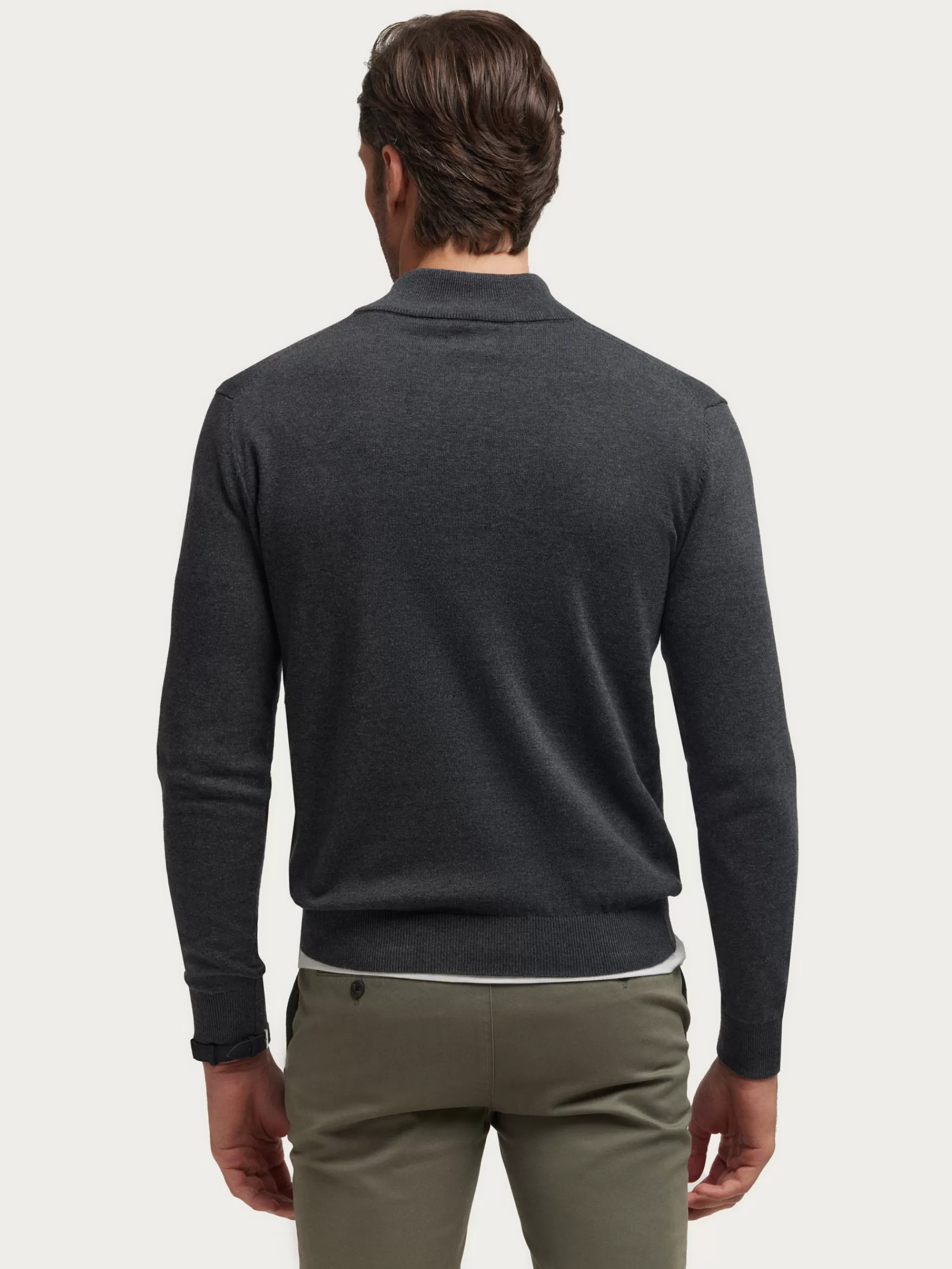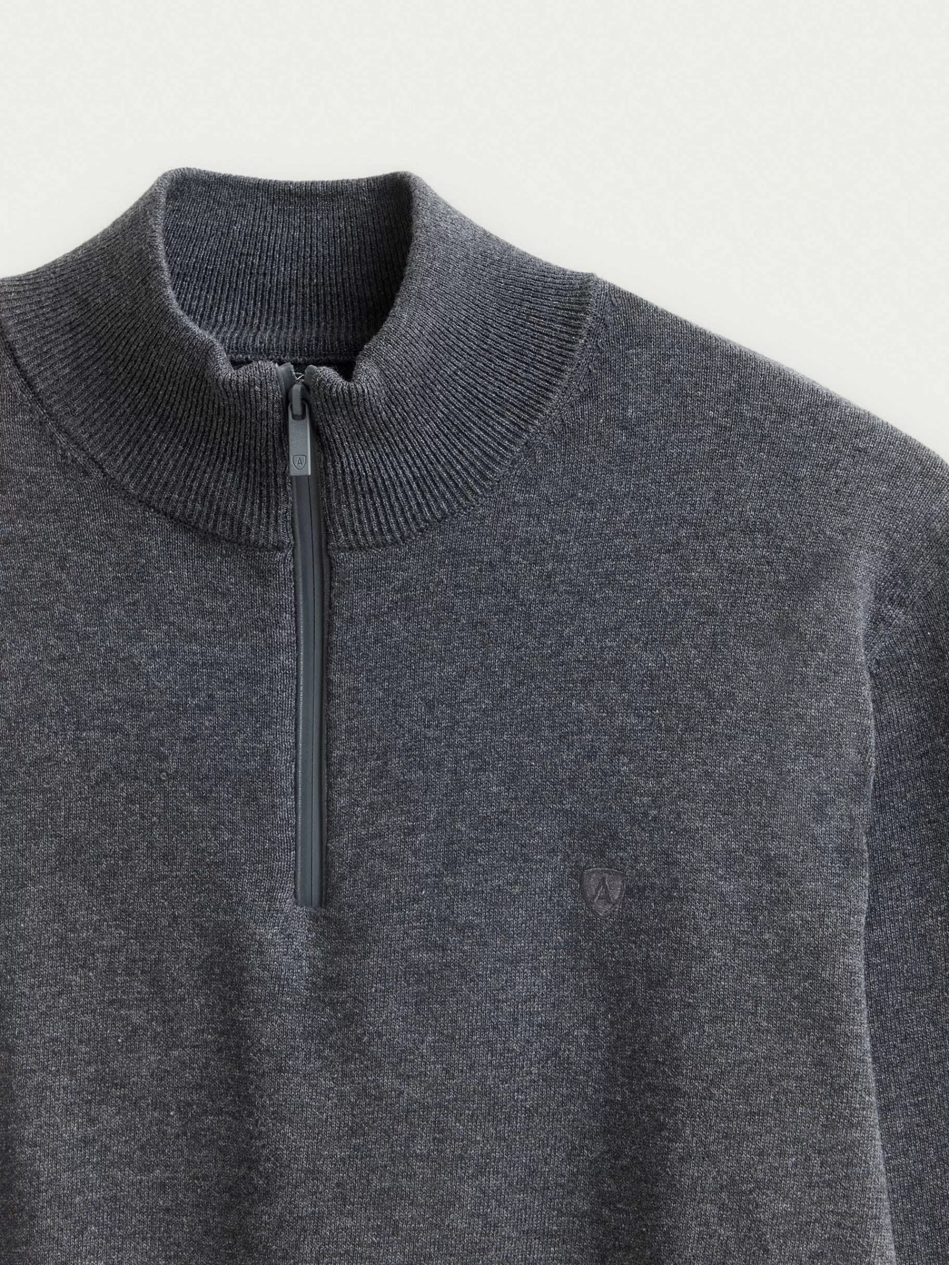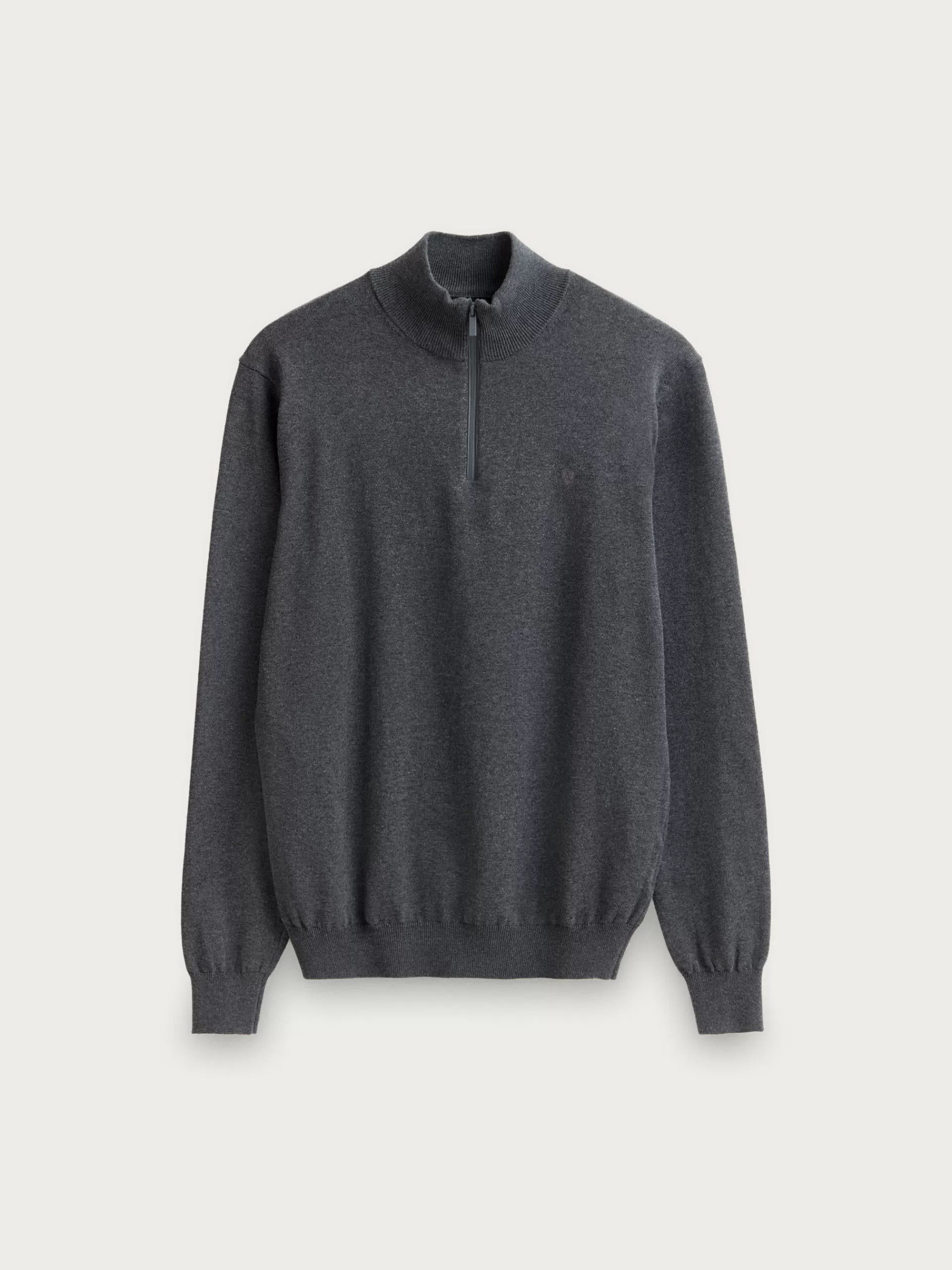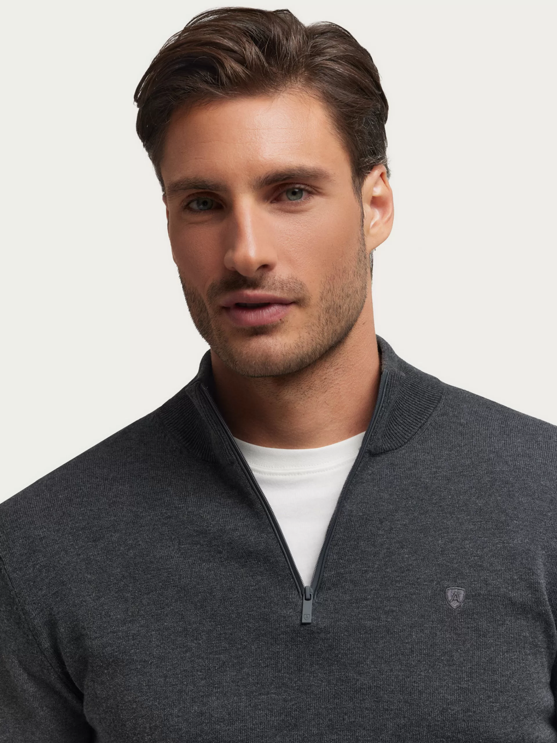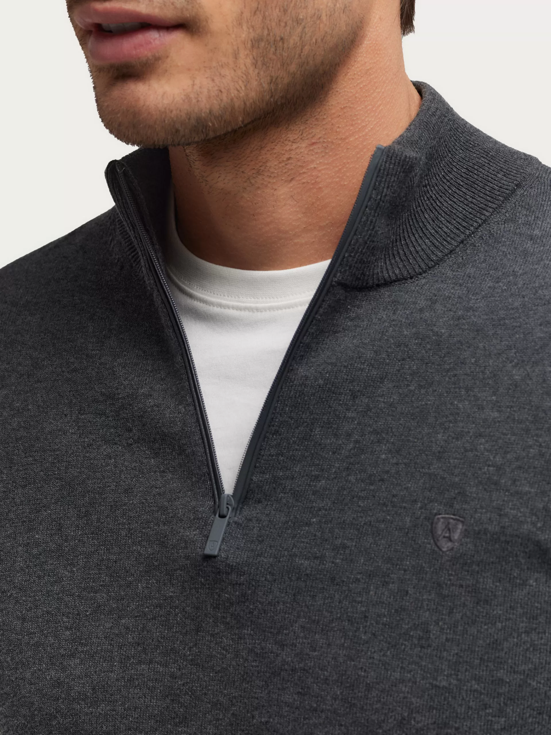 Jersey de corte regular confeccionado en algodón. Cuello alto con medio cierre de cremallera. Logo bordado en el frontal al tono. Cuello, puños y bajo en acabado elástico.