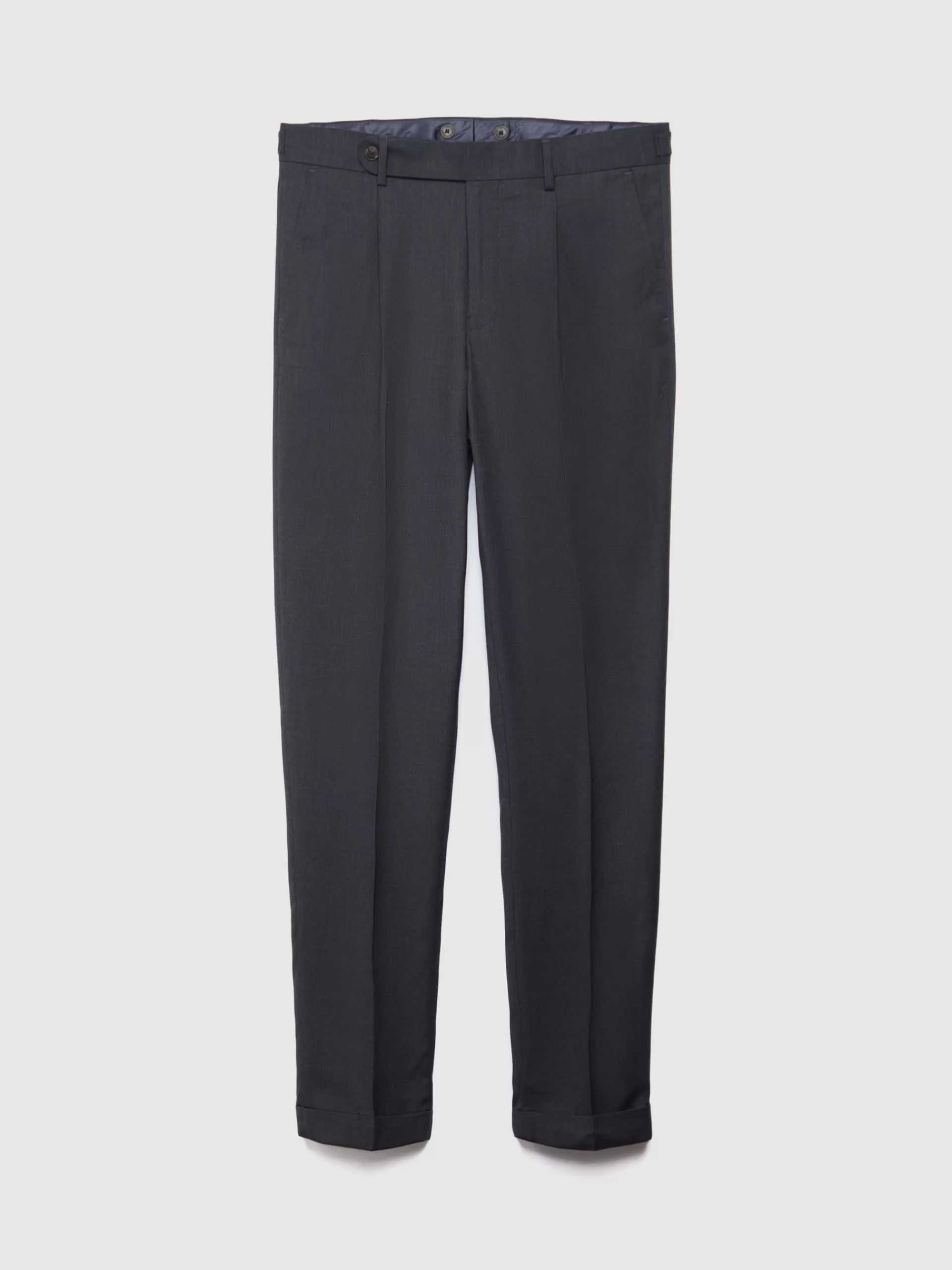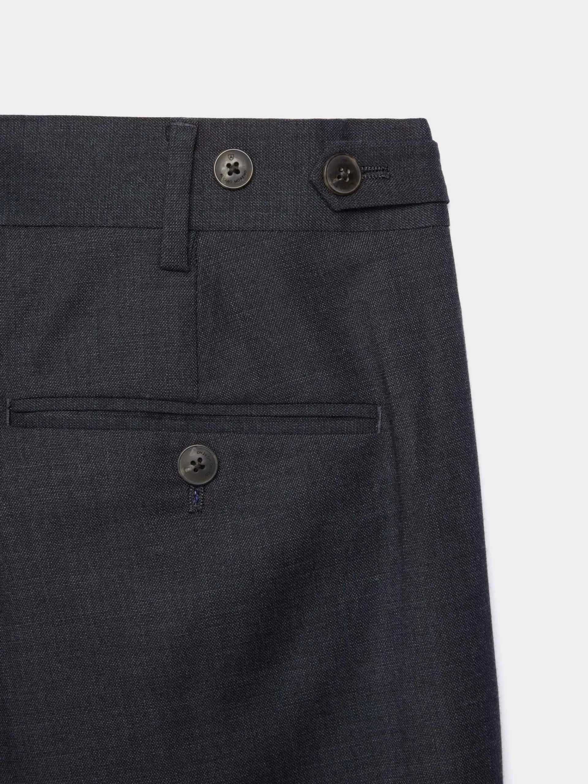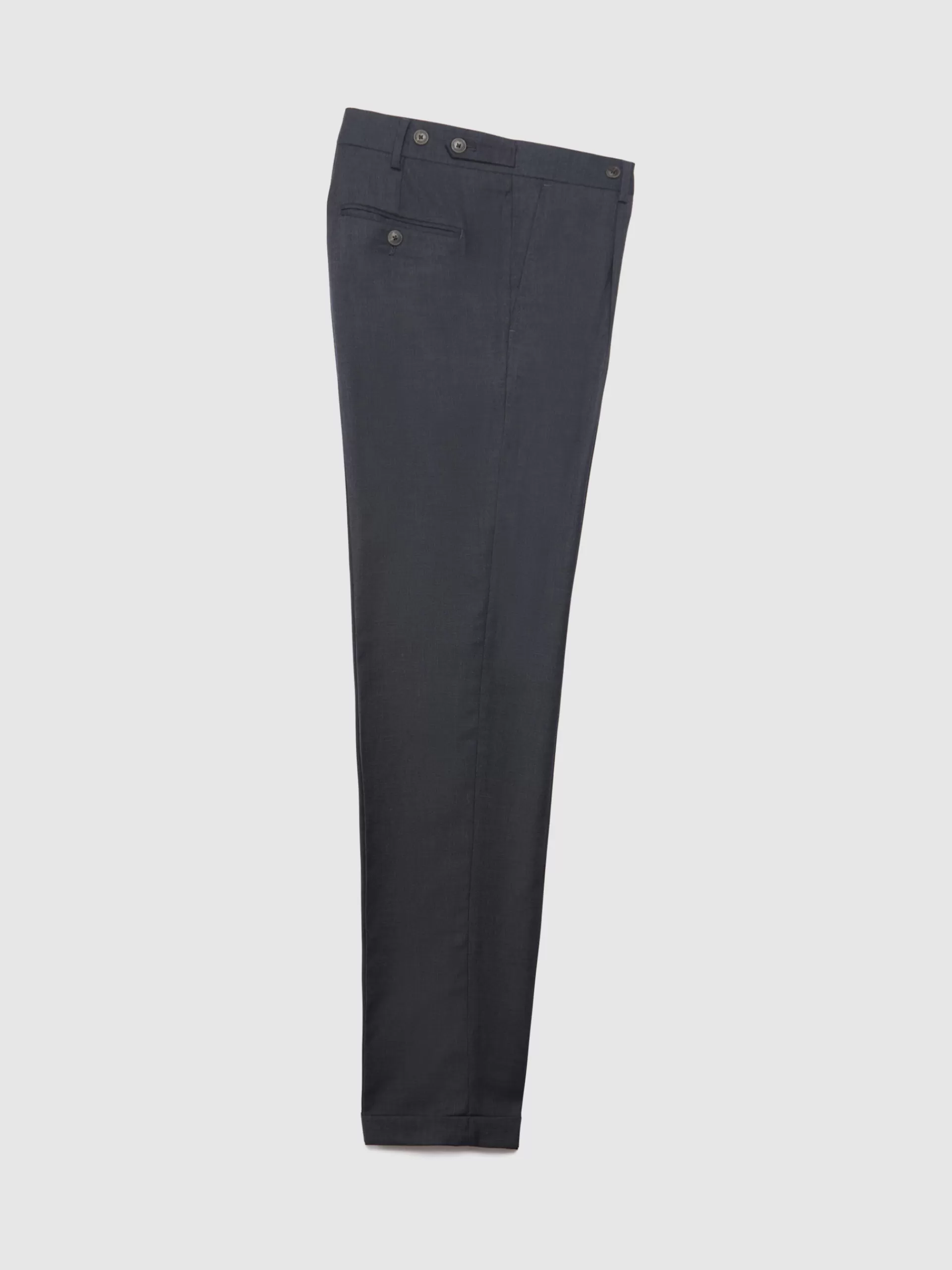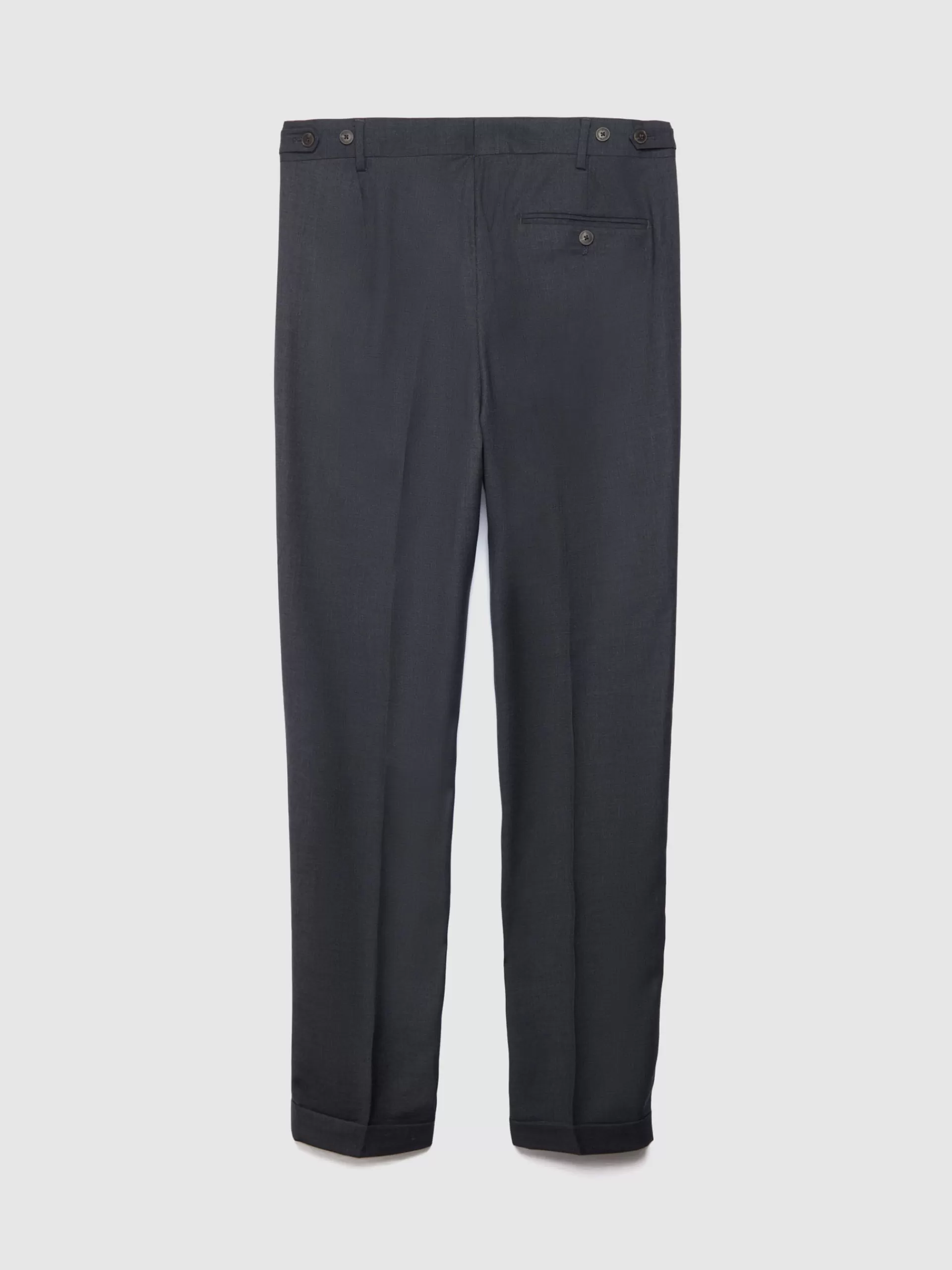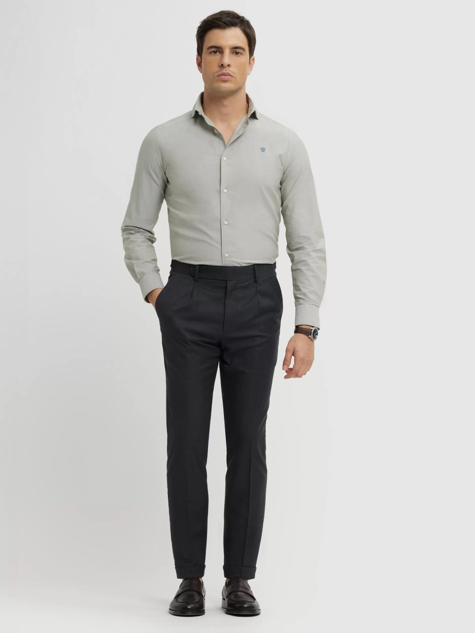 Pantalón de vestir confeccionado en tejido fil a fil. Presenta bajo con dobladillo cosido, ajustador en la cintura y cierre mediante botón y cremallera, dos pinzas en su parte delantera y dos bolsillos traseros. Forrado interiormente.