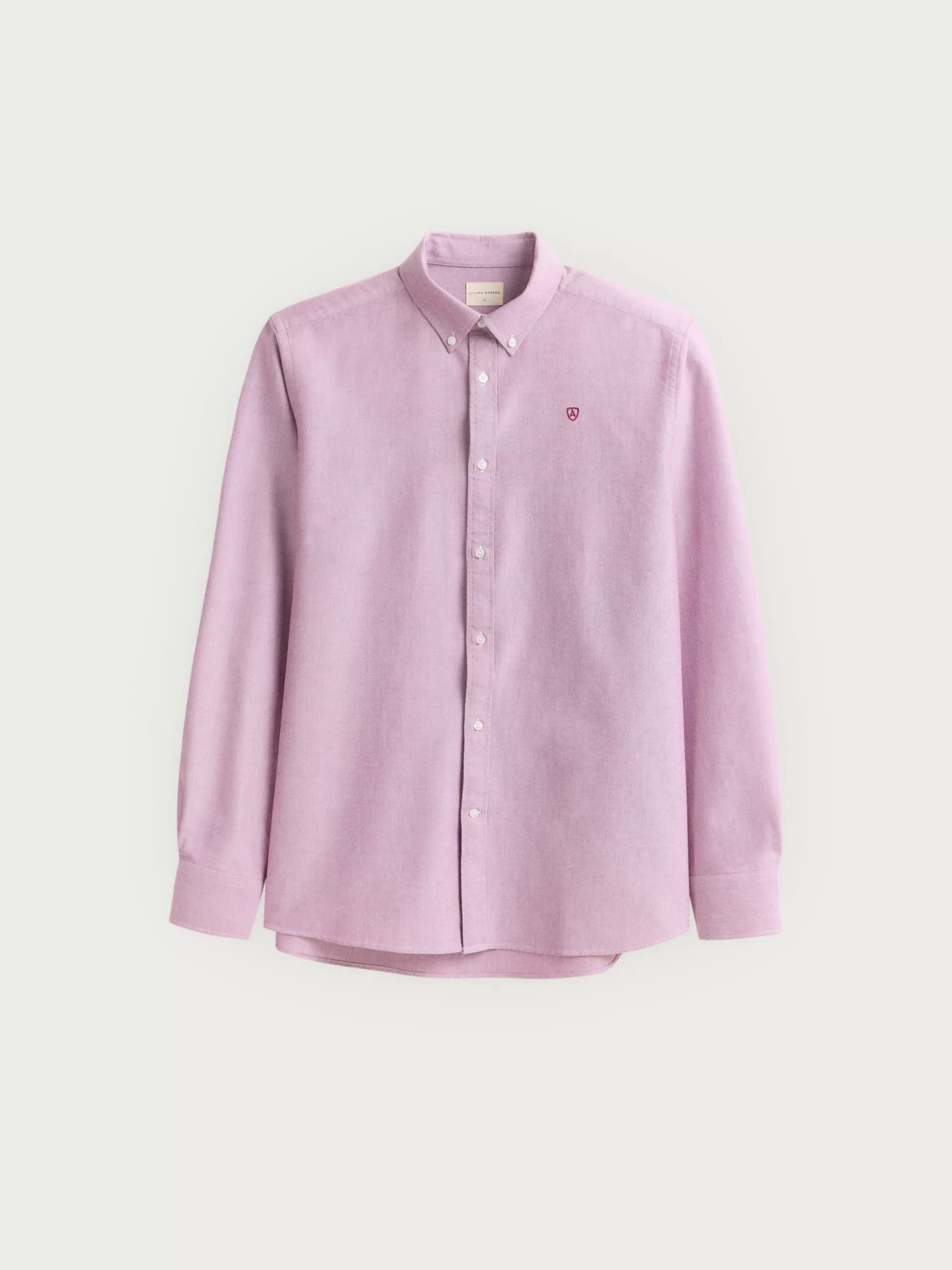 Camisa de corte regular fit con cuello clásico de botón, manga larga con puños simples y logo de la marca grabado en el frontal al tono.