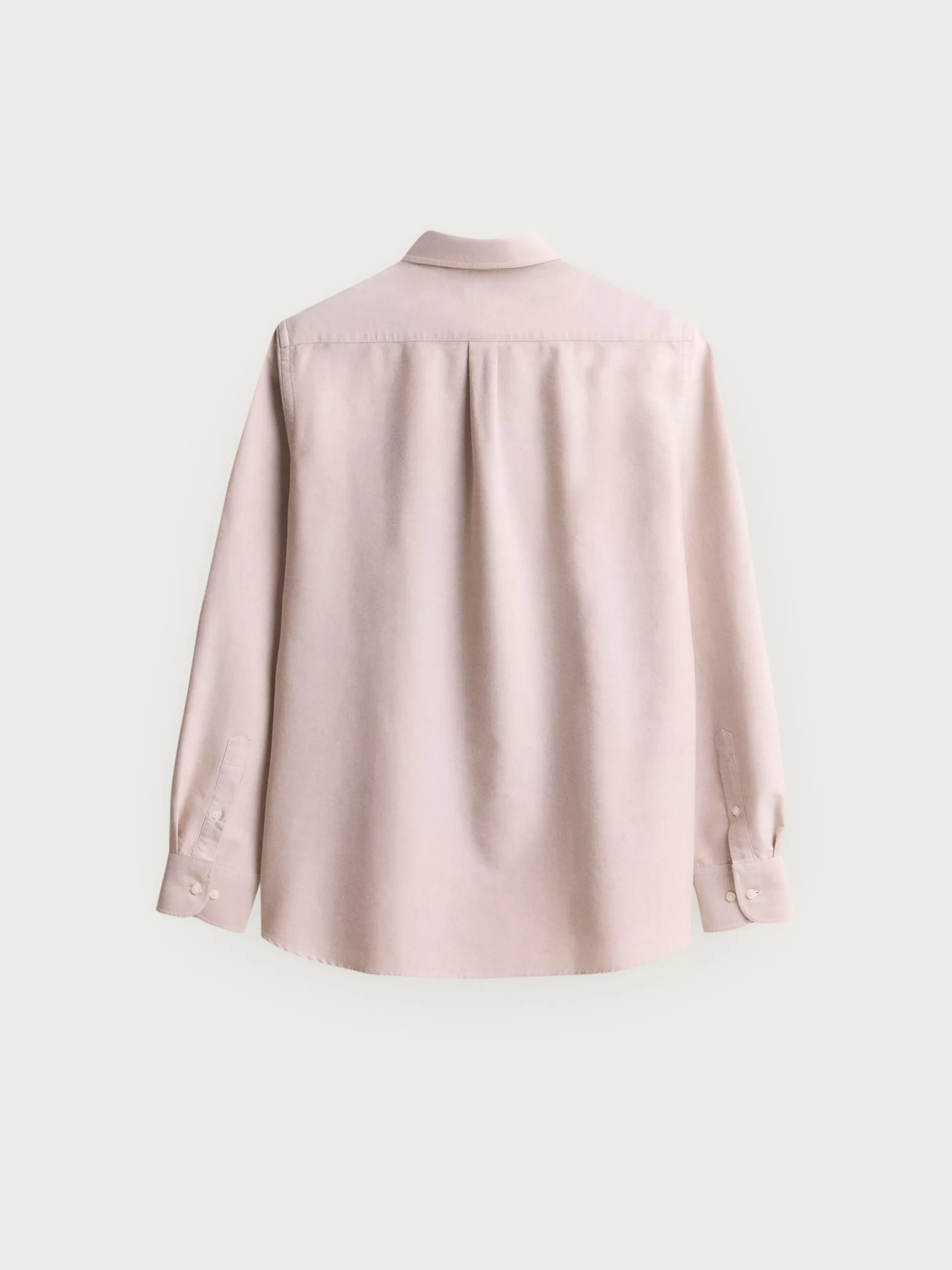 Camisa de corte regular fit con cuello clásico de botón, manga larga con puños simples y logo de la marca grabado en el frontal al tono.