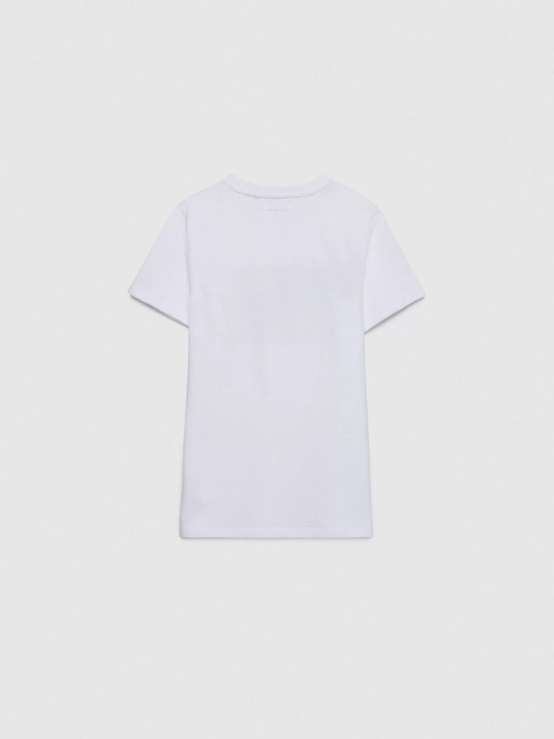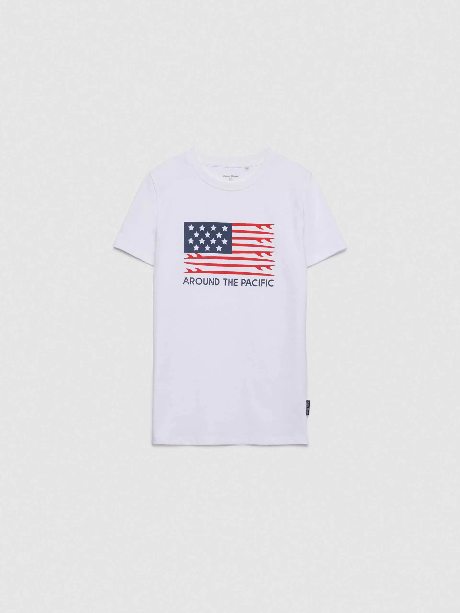 Camiseta con estampado personalizado grabado en el frontal. Cuenta con cuello redondo, manga corta y etiqueta personalizada en el lateral. Corte regular fit.