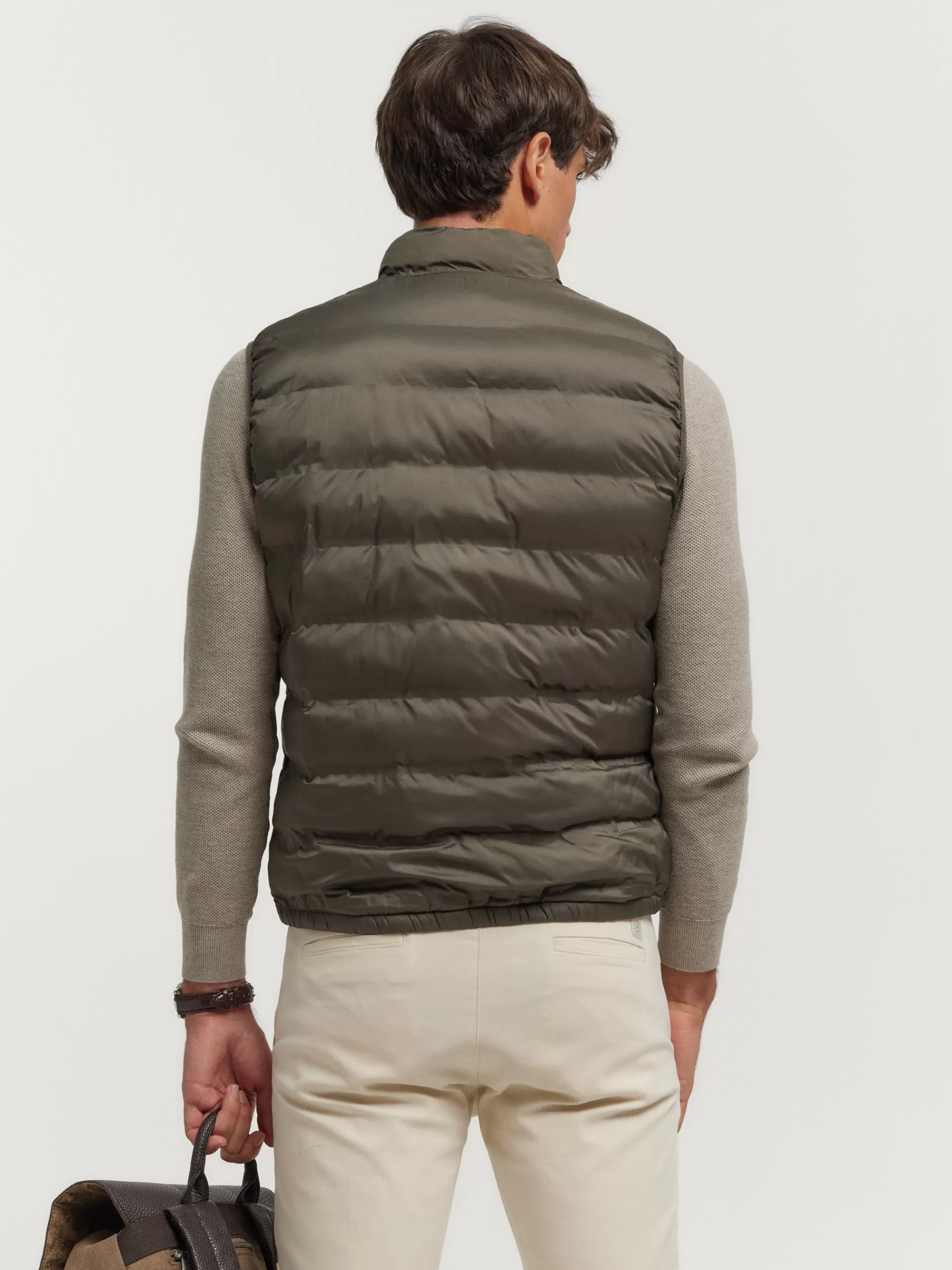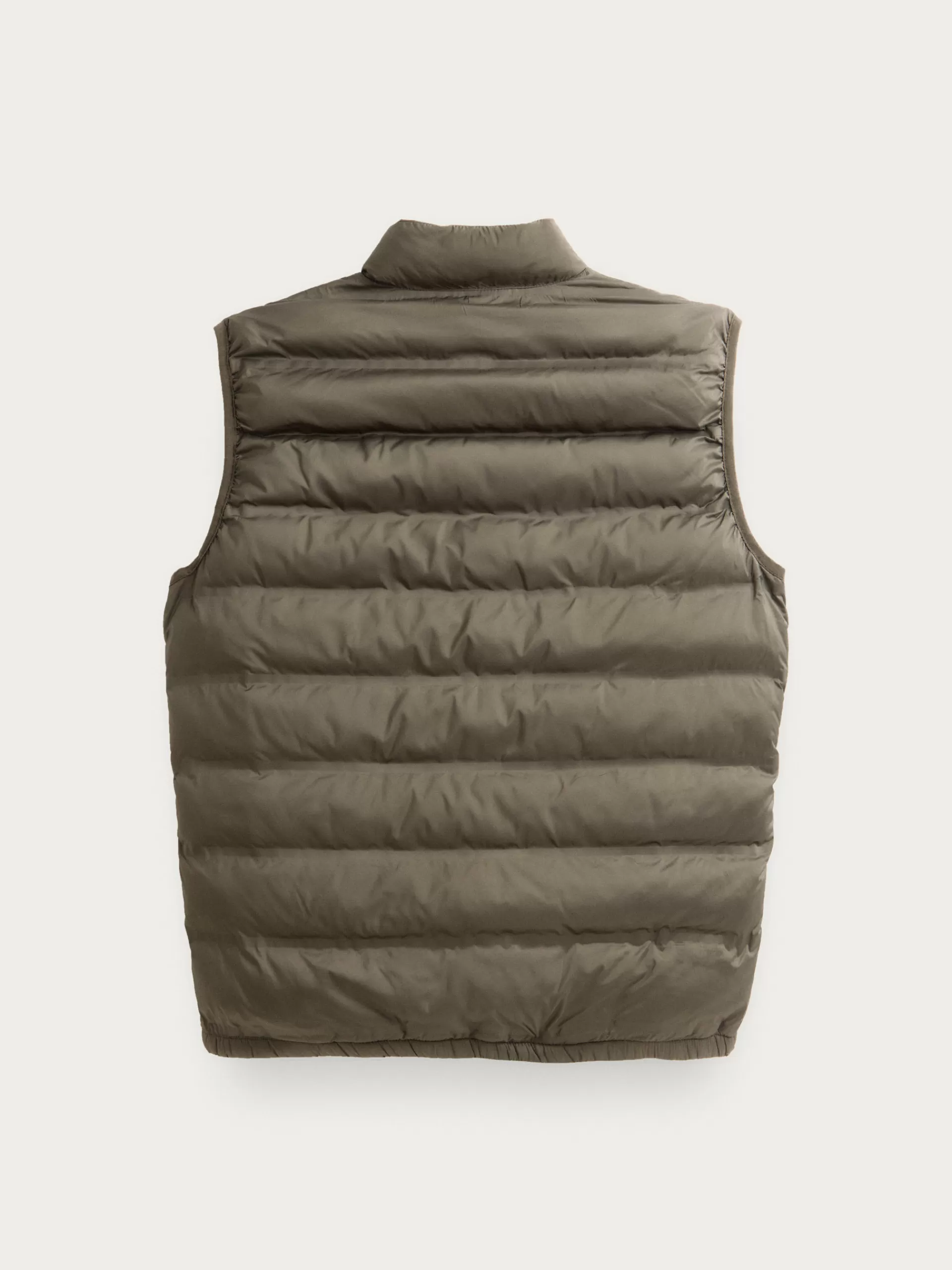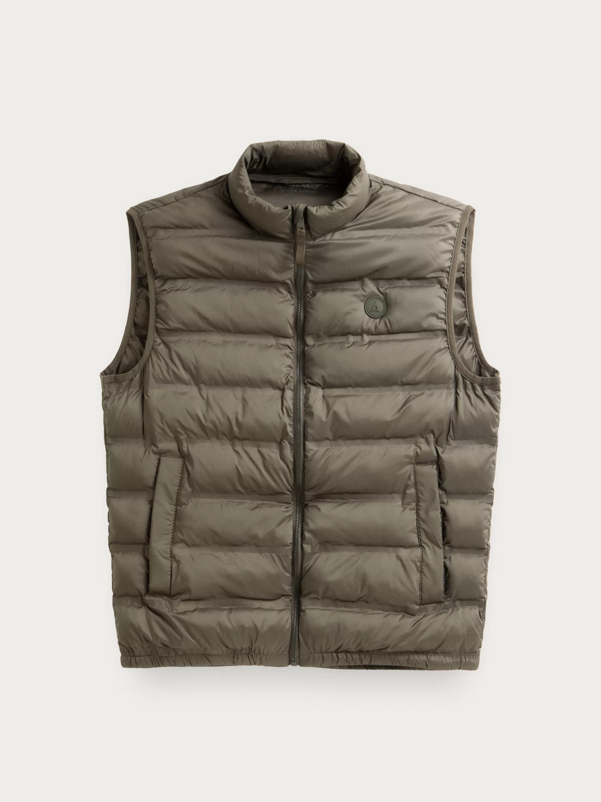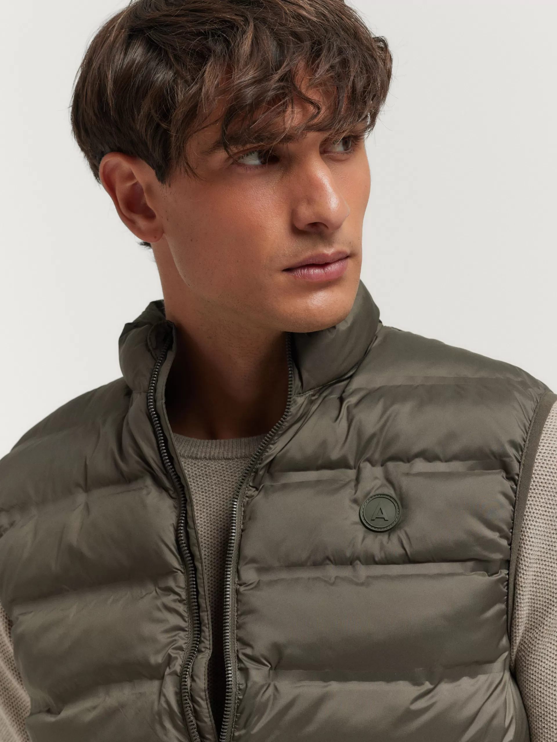Chaleco acolchado con cuello subido y cierre central mediante cremallera, dos bolsillos a la altura de la cintura y logo…