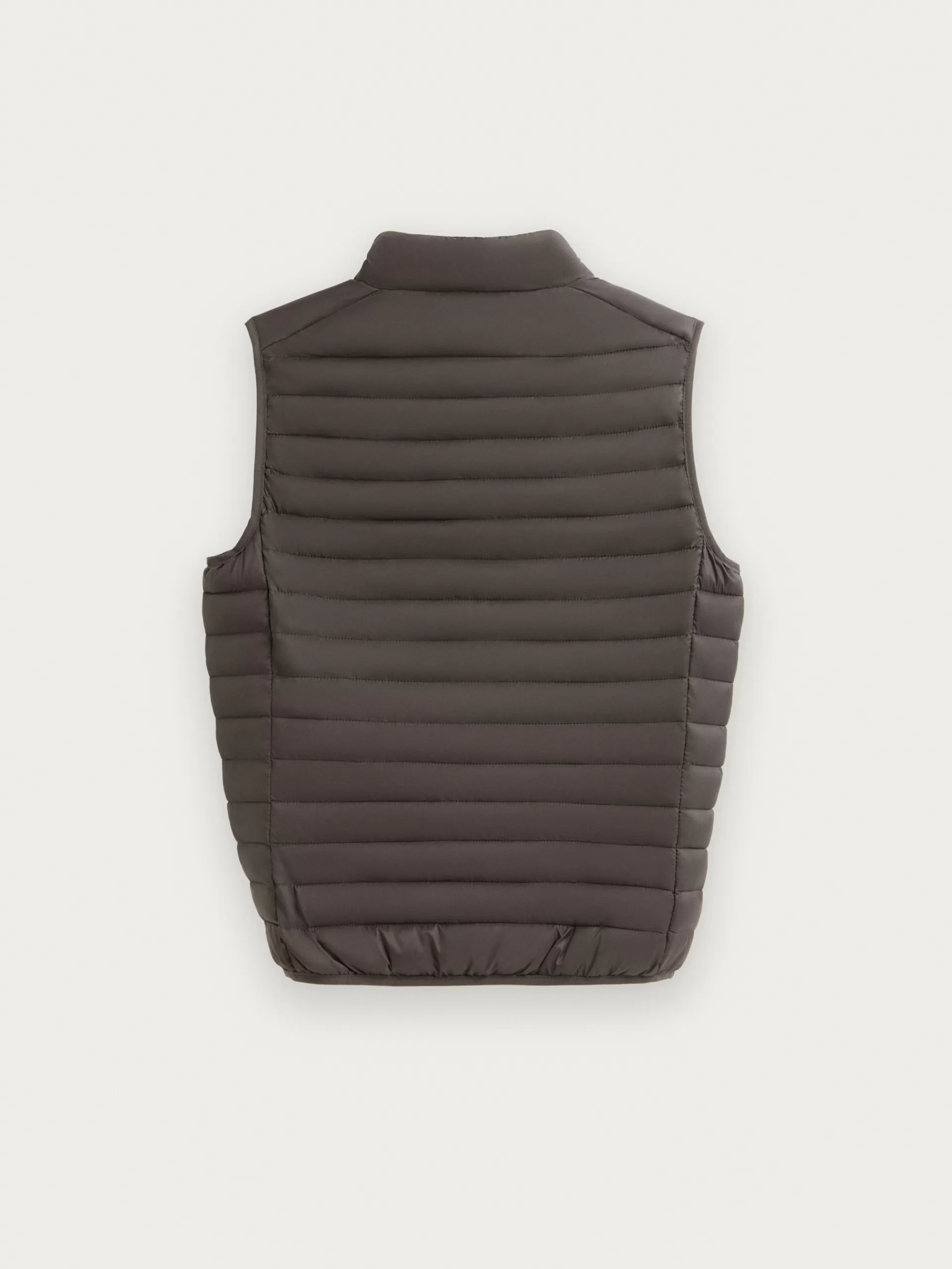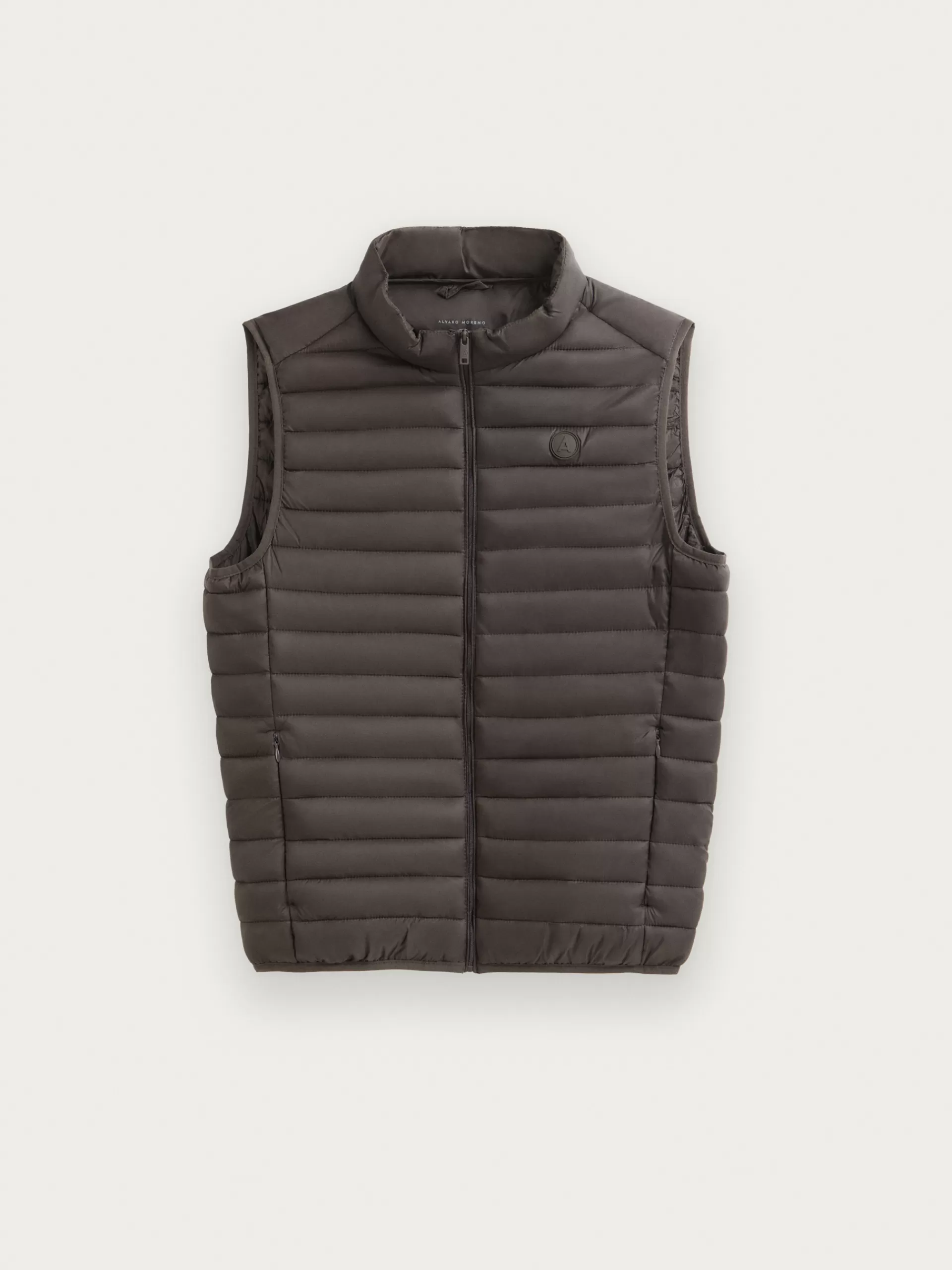 Chaleco acolchado con cuello subido y cierre central mediante cremallera, dos bolsillos a la altura de la cintura y logo…