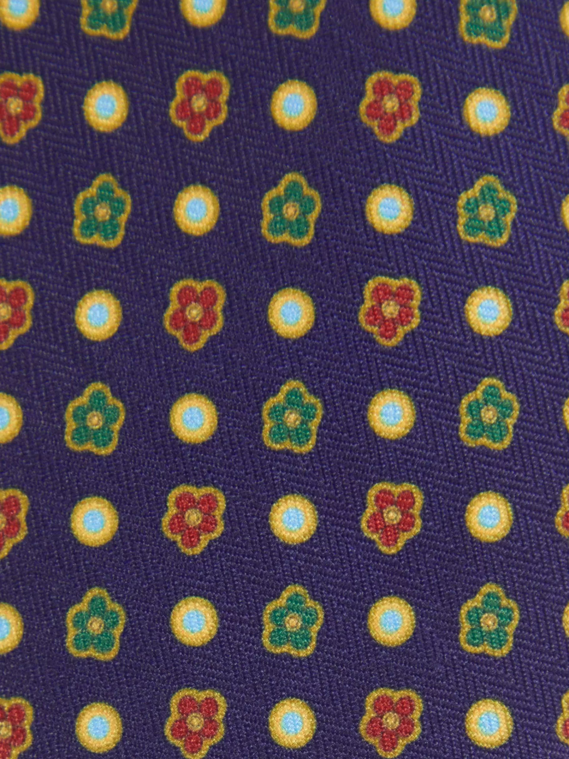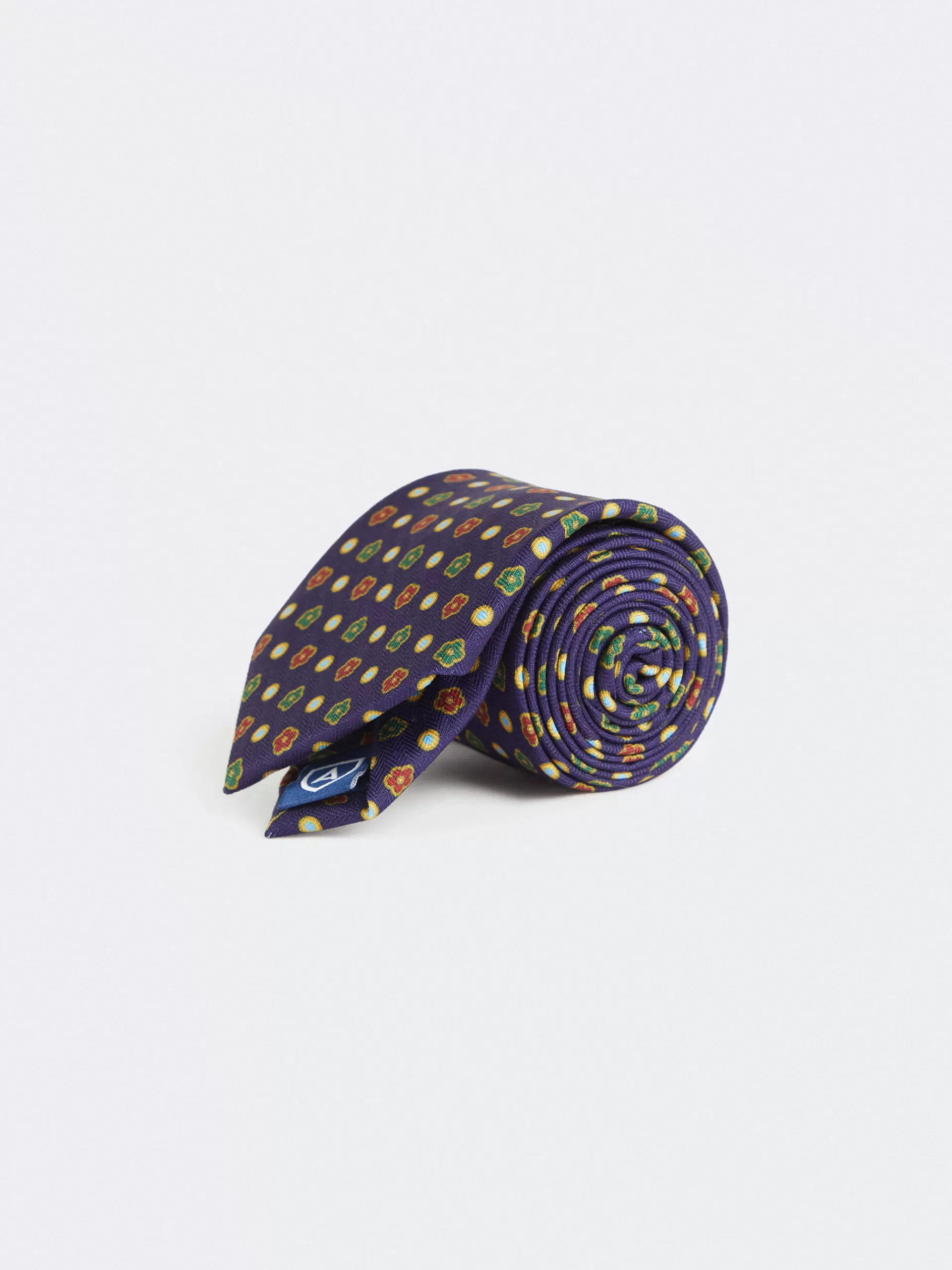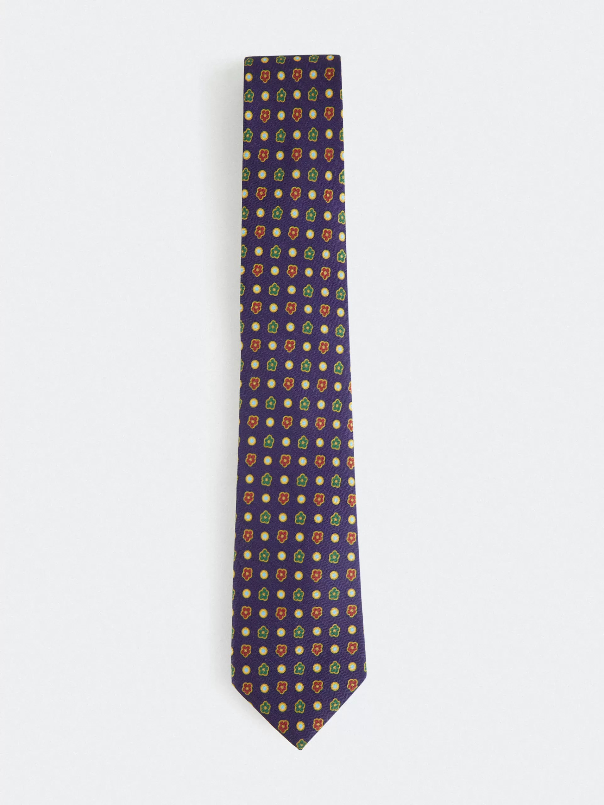Corbata con diseño estampado personalizado confeccionada en 100% poliéster. Cuenta con el logo de la marca grabado en el interior.