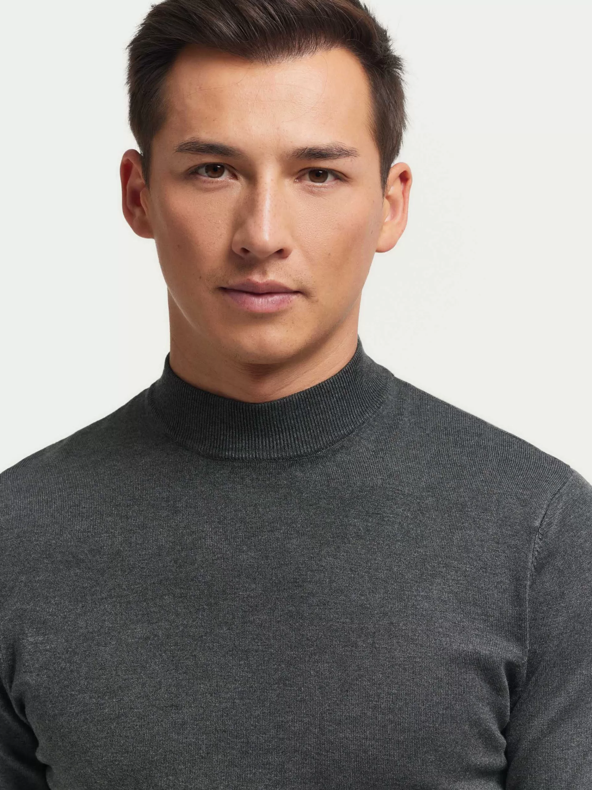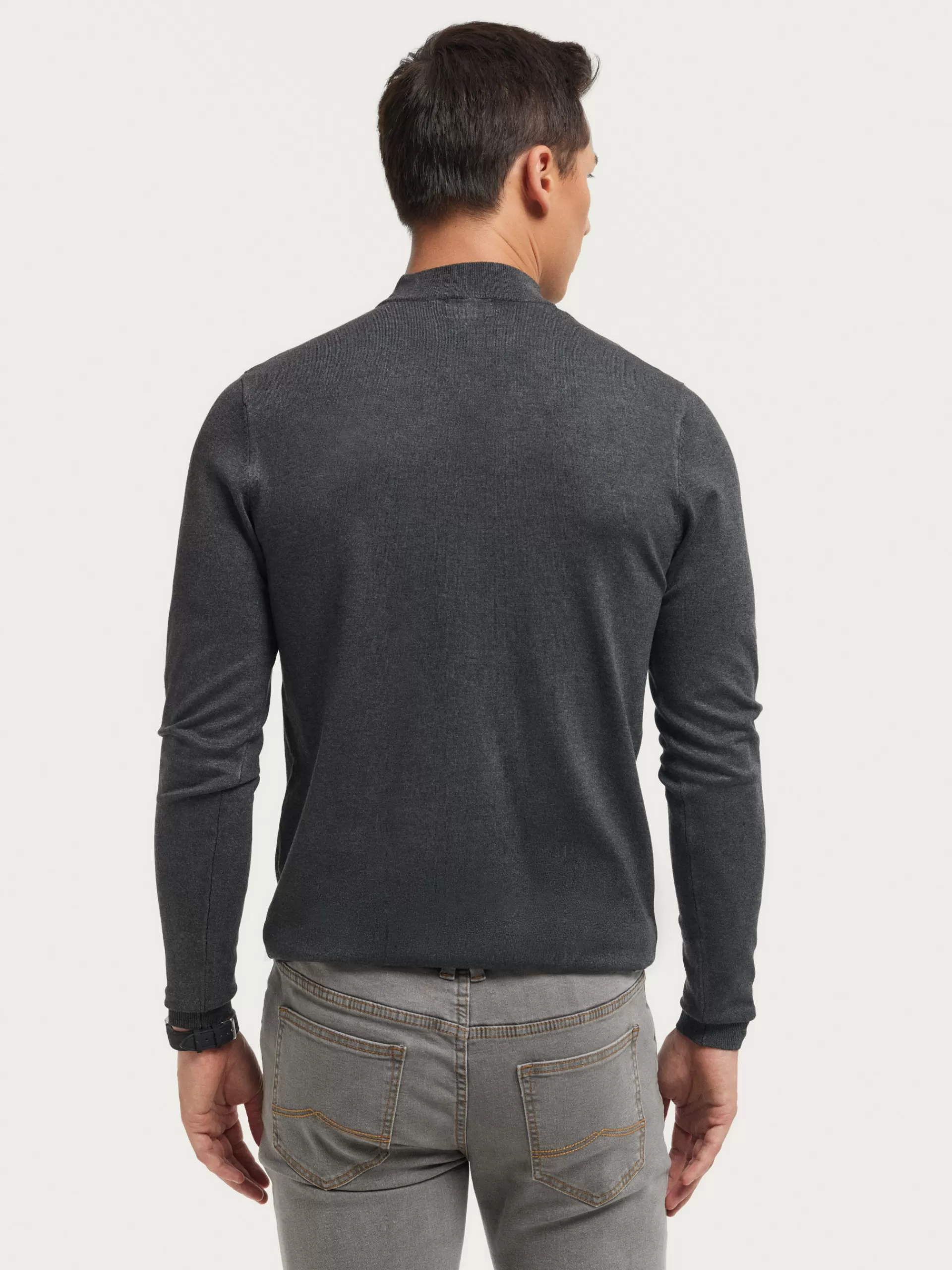 Jersey con cuello perkins y manga larga. Esta prenda de fina estructura, cuenta con detalle personalizado con el logo de la marca en el bajo y con sus puños, cintura y cuello ribeteados.