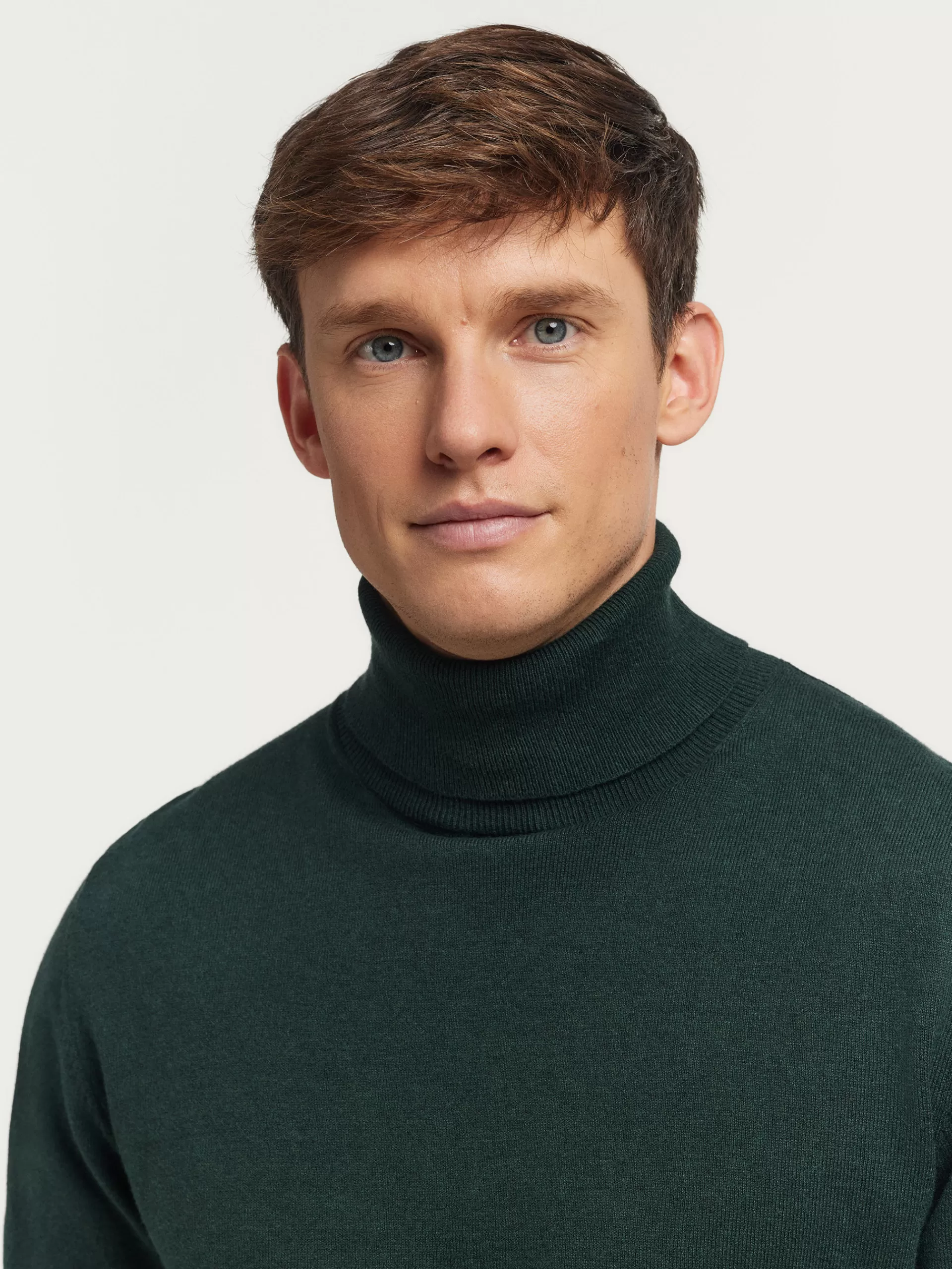 Jersey con cuello estilo cisne confeccionado en algodón y cachemira. Cuenta con manga larga, detalle metálico personalizado en el bajo, cuello, puños y cintura en punto elástico. Corte ceñido.