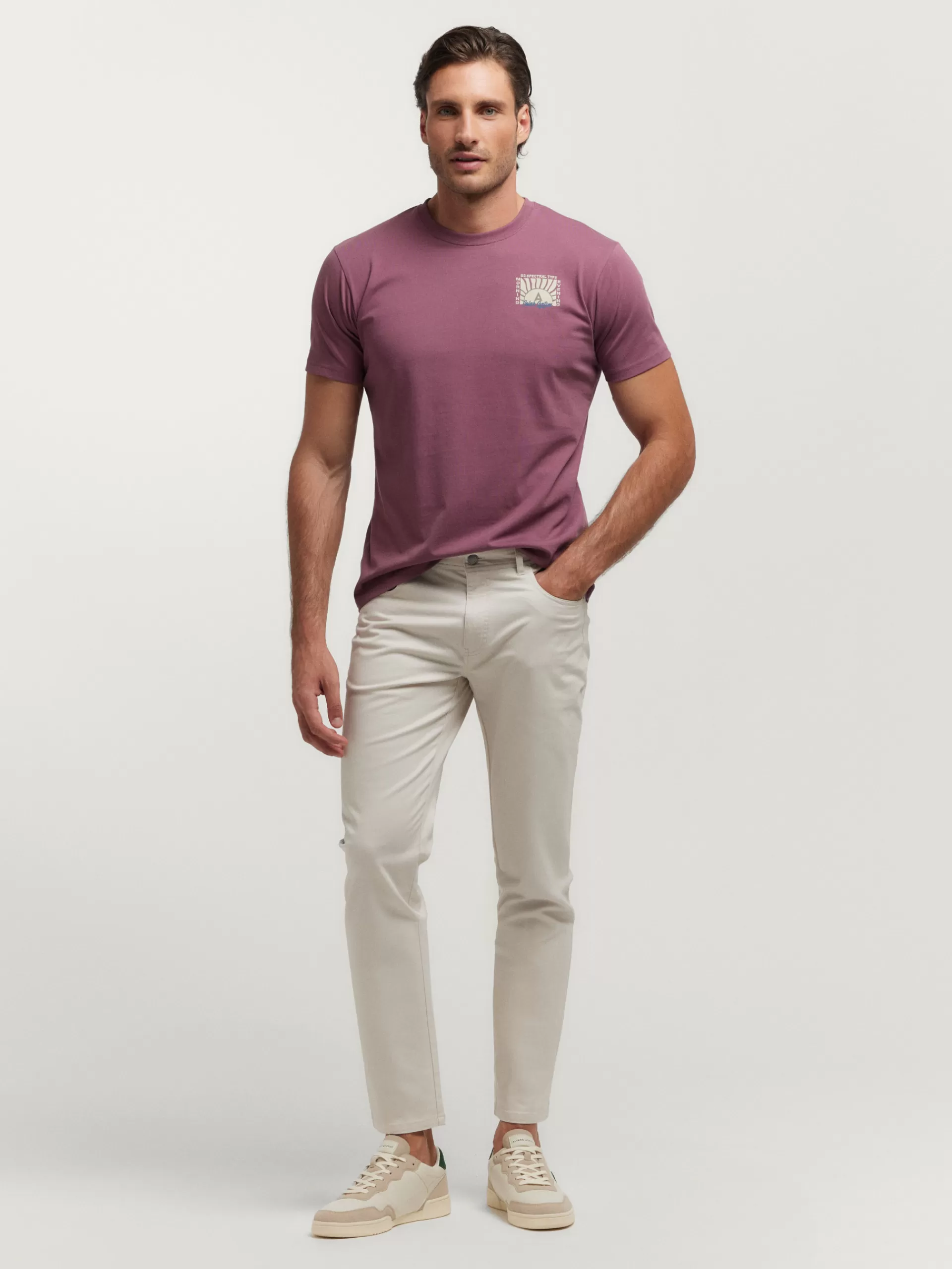 Pantalón de corte slim fit con 5 bolsillos. Cierre central mediante botón y cremallera, bolsillo cerillero y dos bolsi…