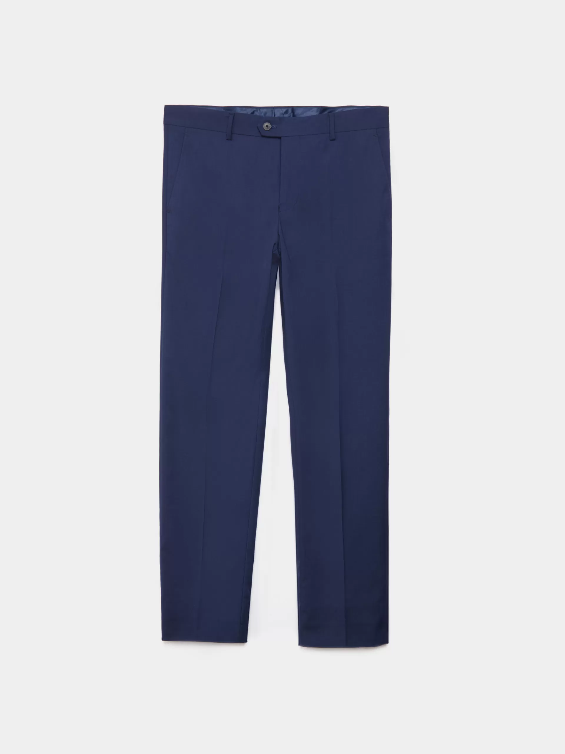Pantalón de traje que cuenta con cierre frontal de cremallera y botones, dos bolsillos abiertos en la parte delantera y dos bolsillos traseros con cierre mediante botón. Forrado en su interior.
