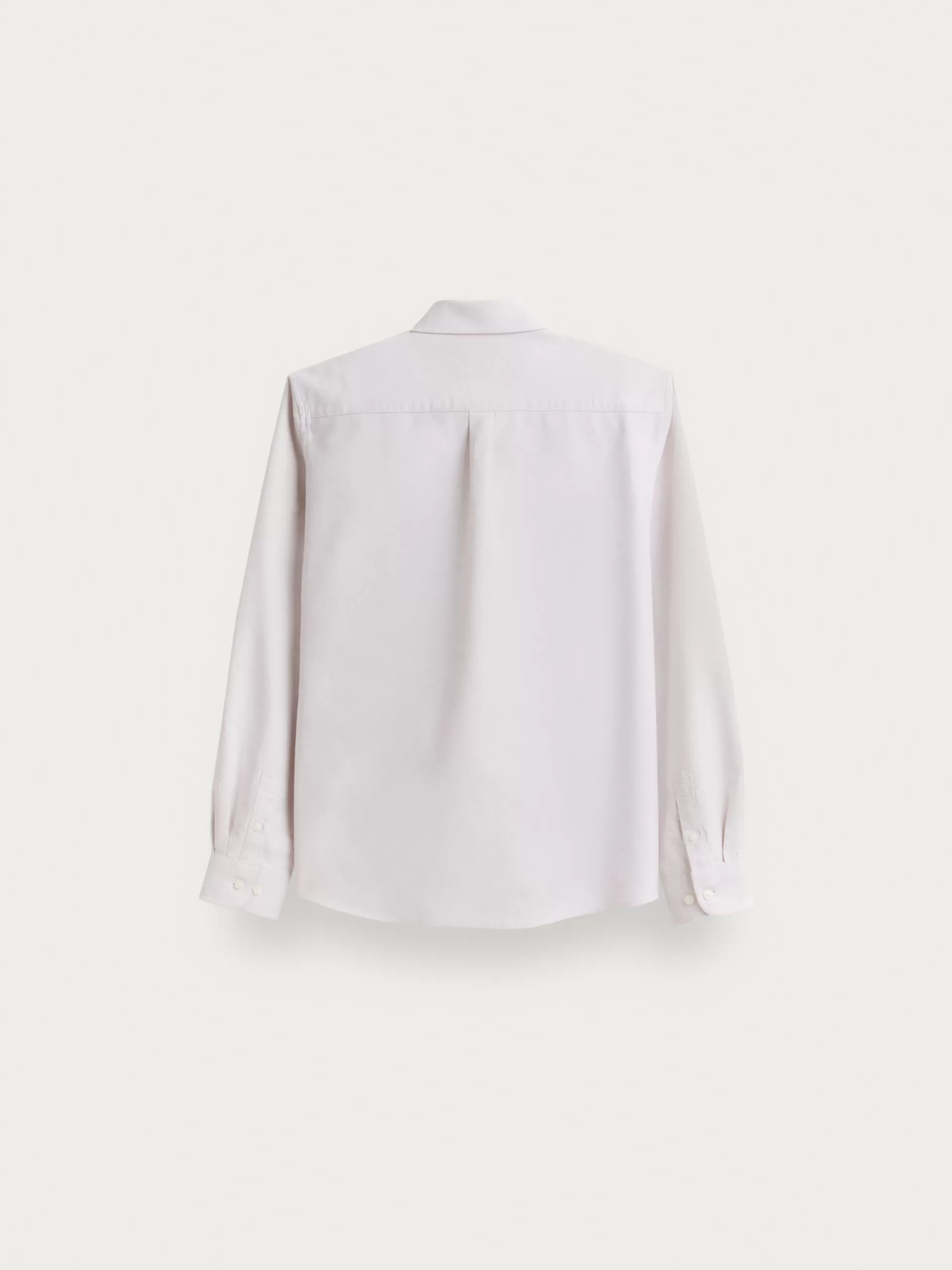 Camisa de corte regular fit con cuello clásico de botón, manga larga con puños simples y logo de la marca grabado en el frontal al tono.