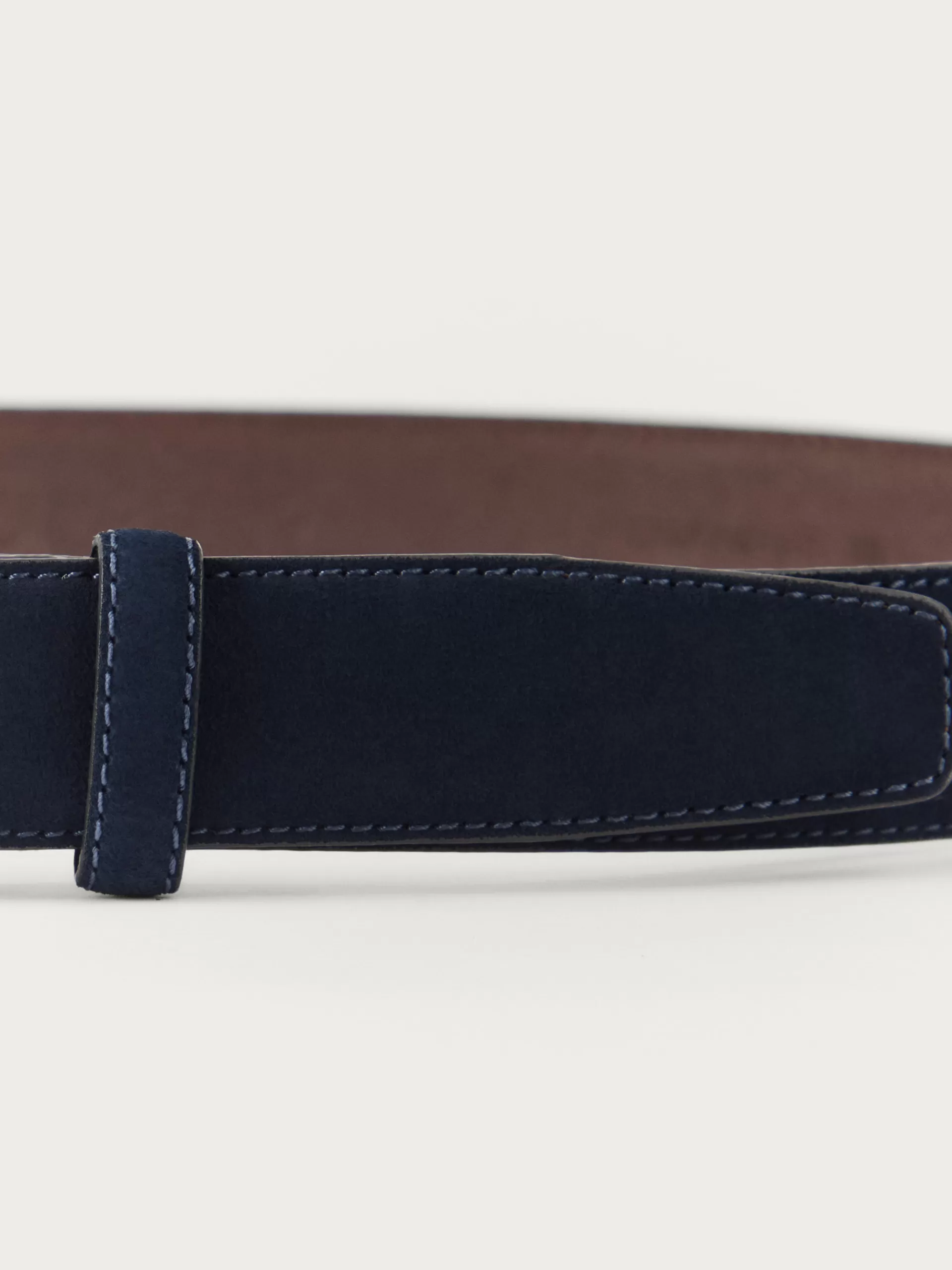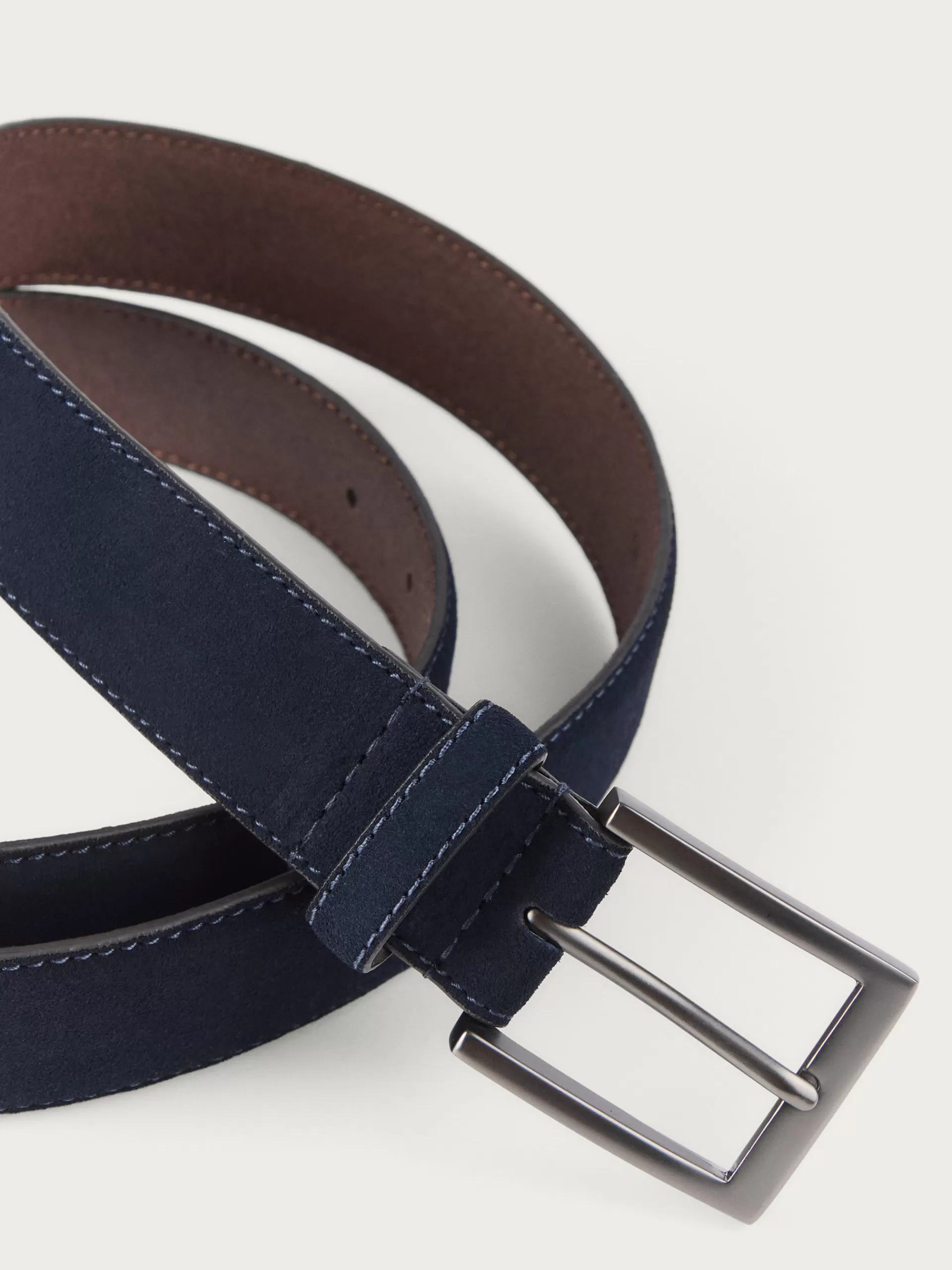 Cinturón confeccionado en piel con cierre central mediante hebilla metálica y pasador al tono.