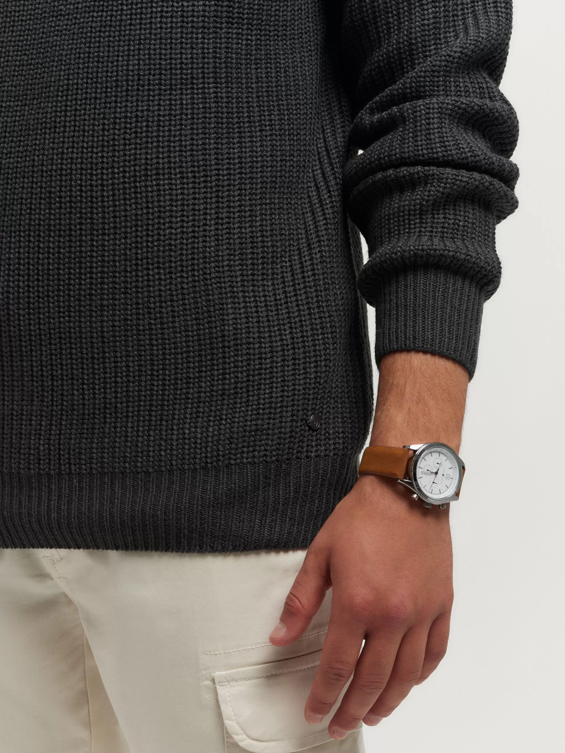 Jersey con cuello perkins confeccionado en tejido de rejillas. Cuenta con manga estilo ranglan, detalle metálico personalizado en el frontal y acabado ribeteado en el cuello, puños y cintura. Corte regular fit.
