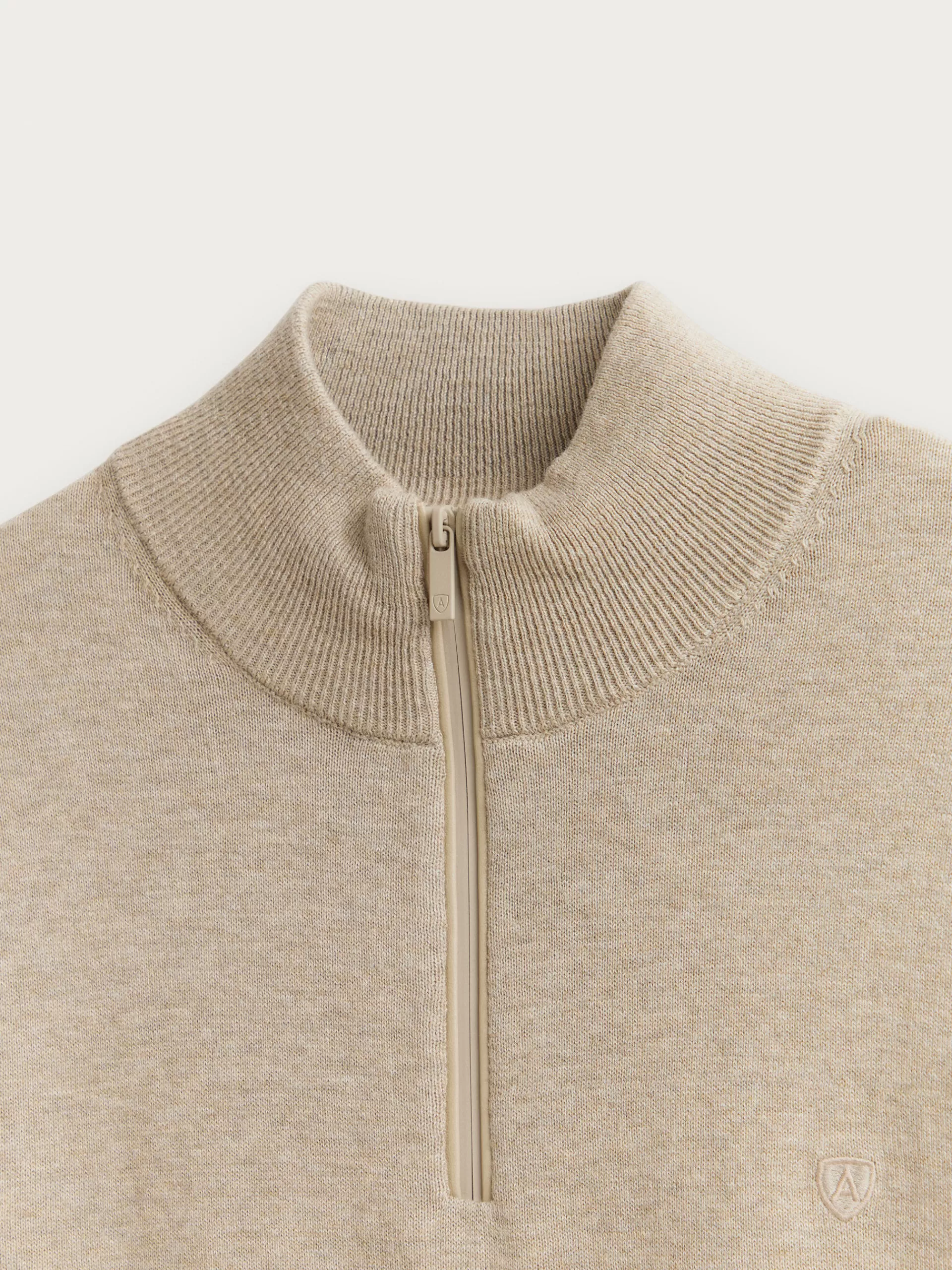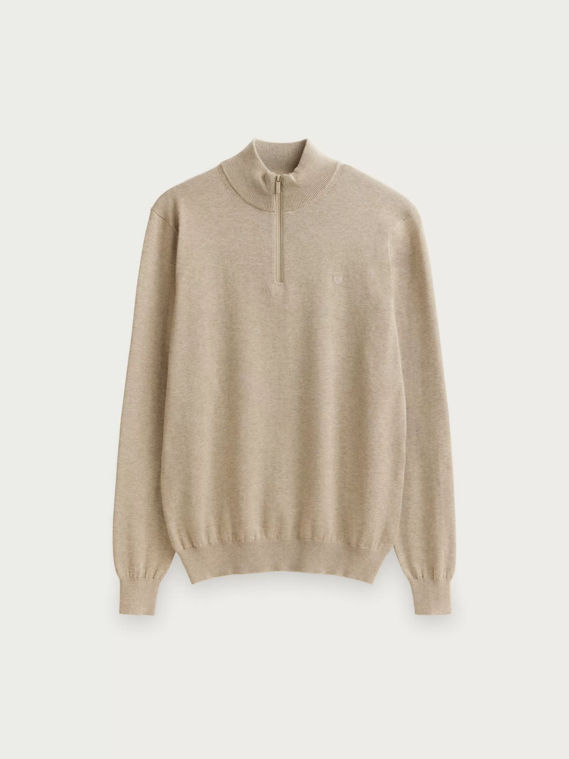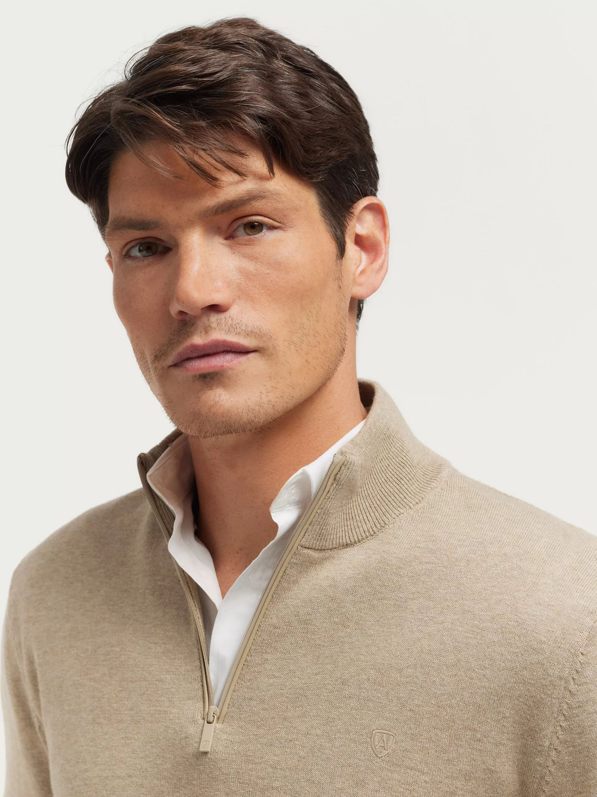 Jersey de corte regular confeccionado en algodón. Cuello alto con medio cierre de cremallera. Logo bordado en el frontal al tono. Cuello, puños y bajo en acabado elástico.