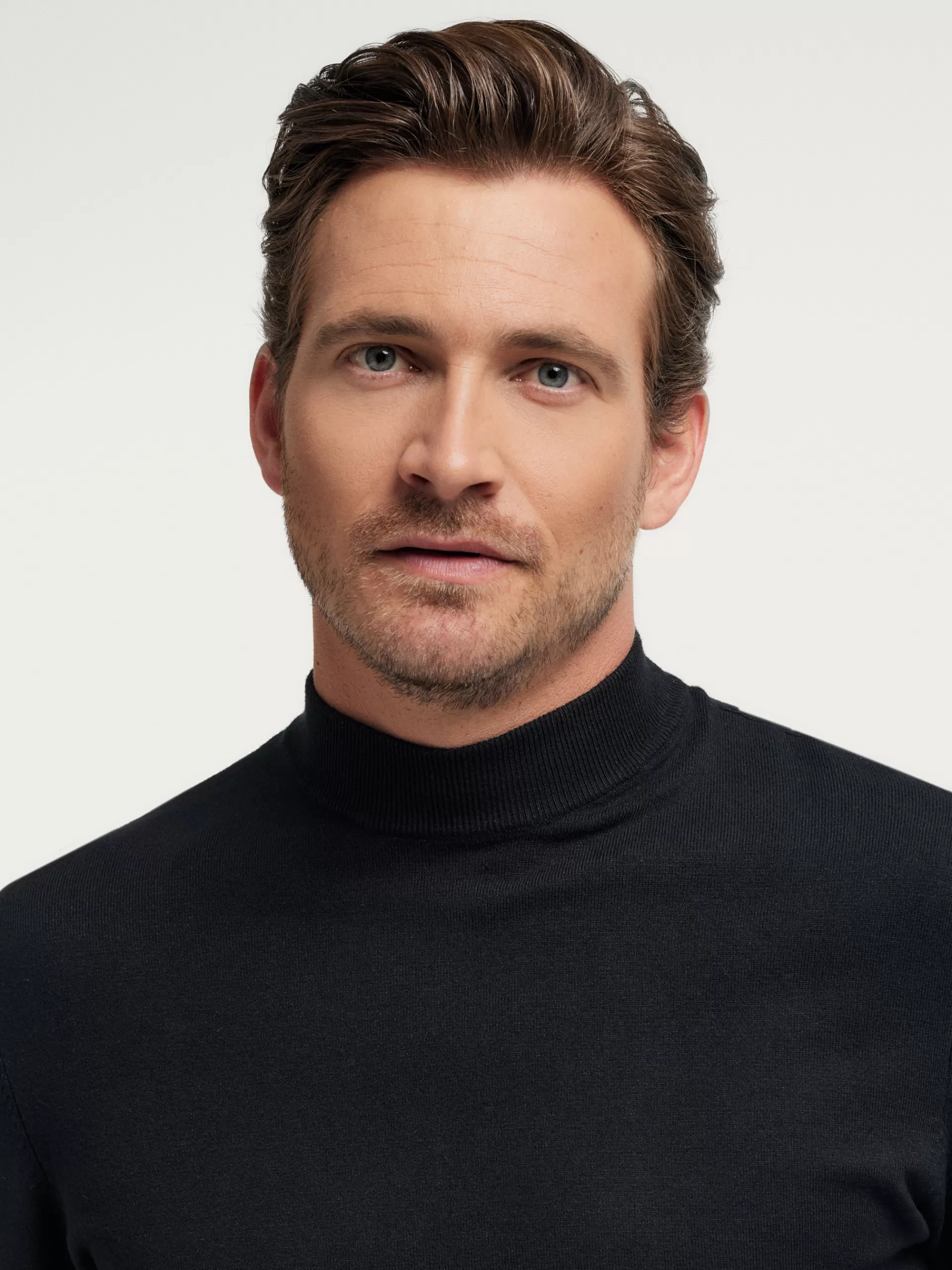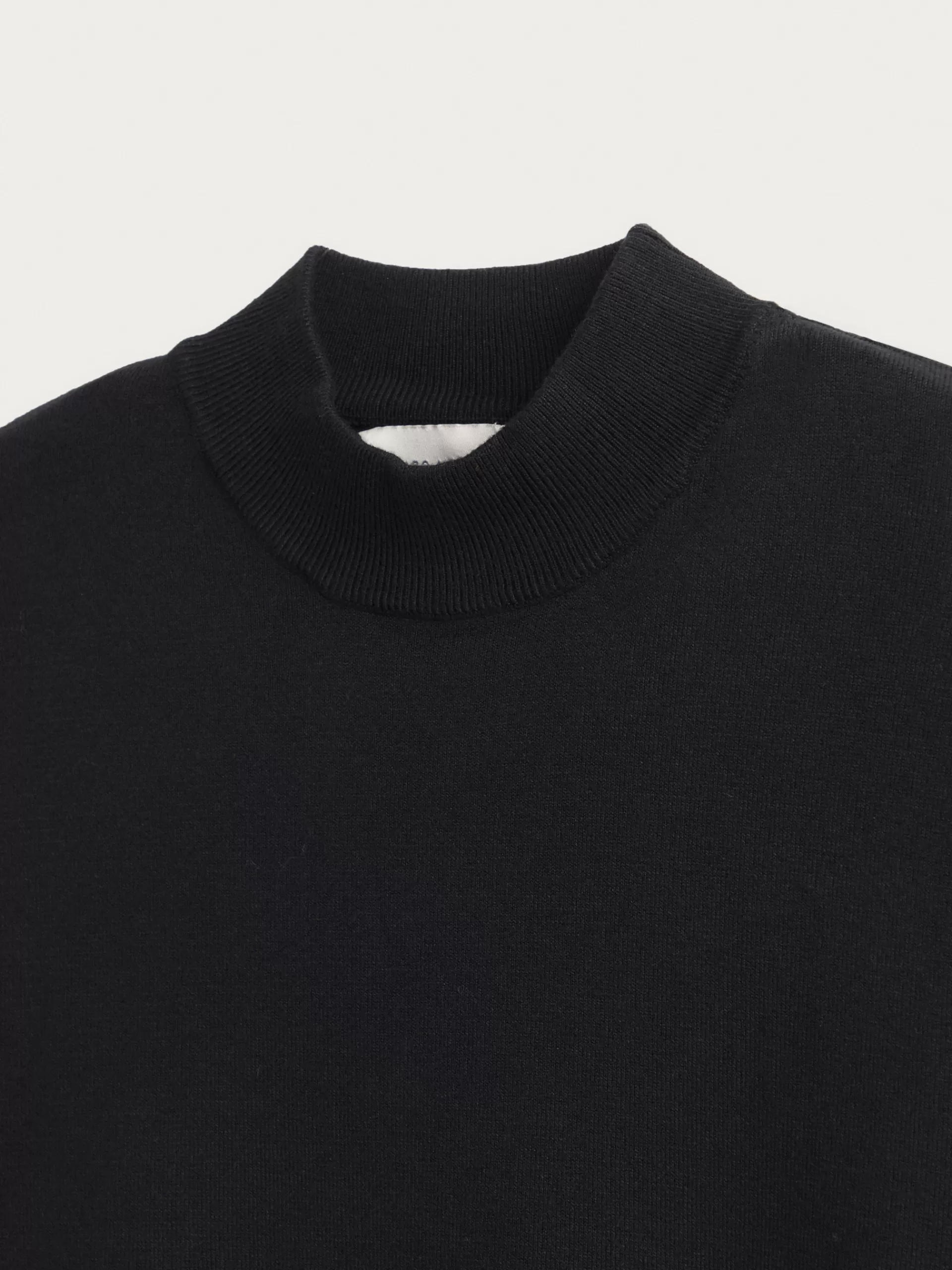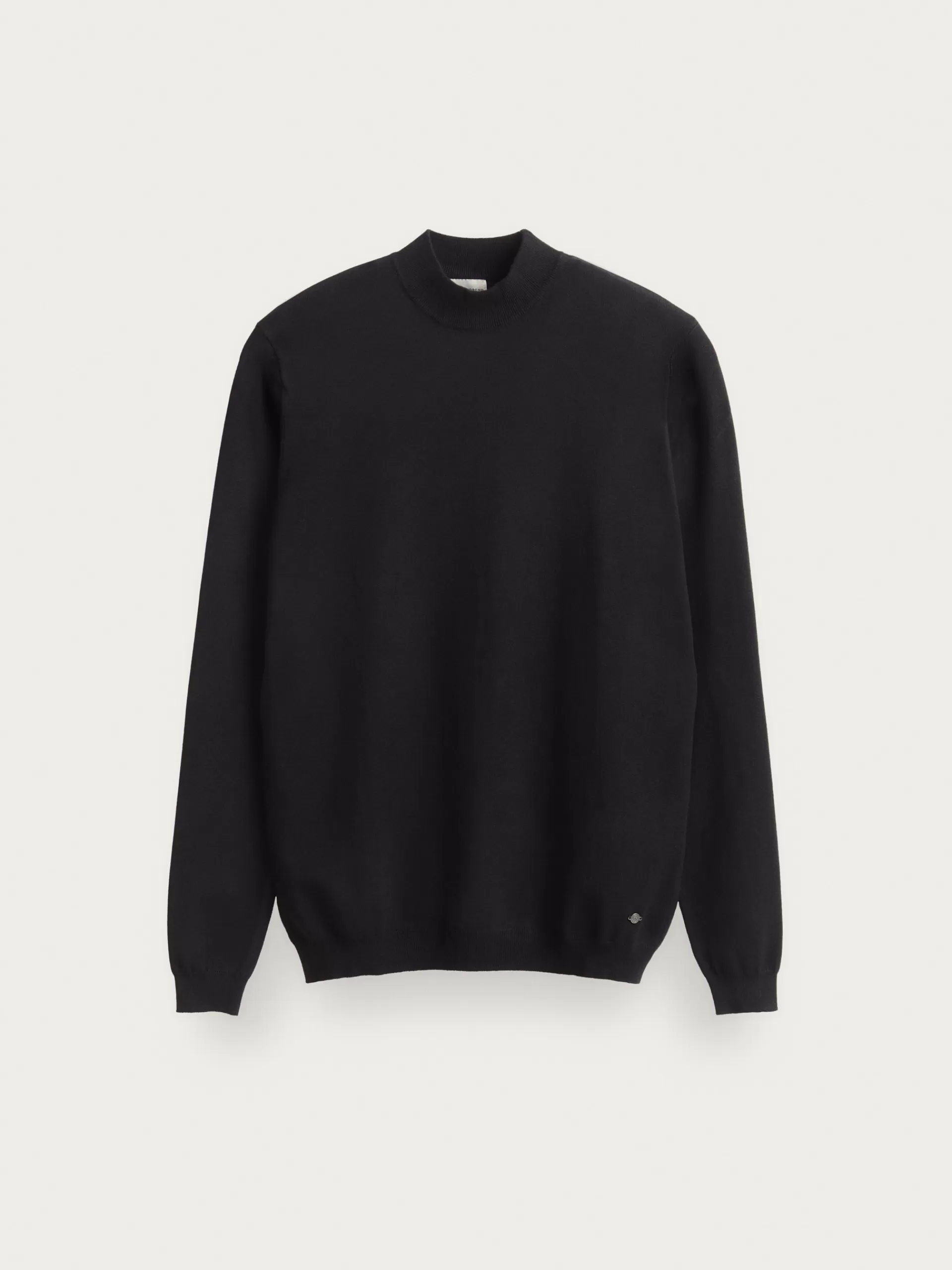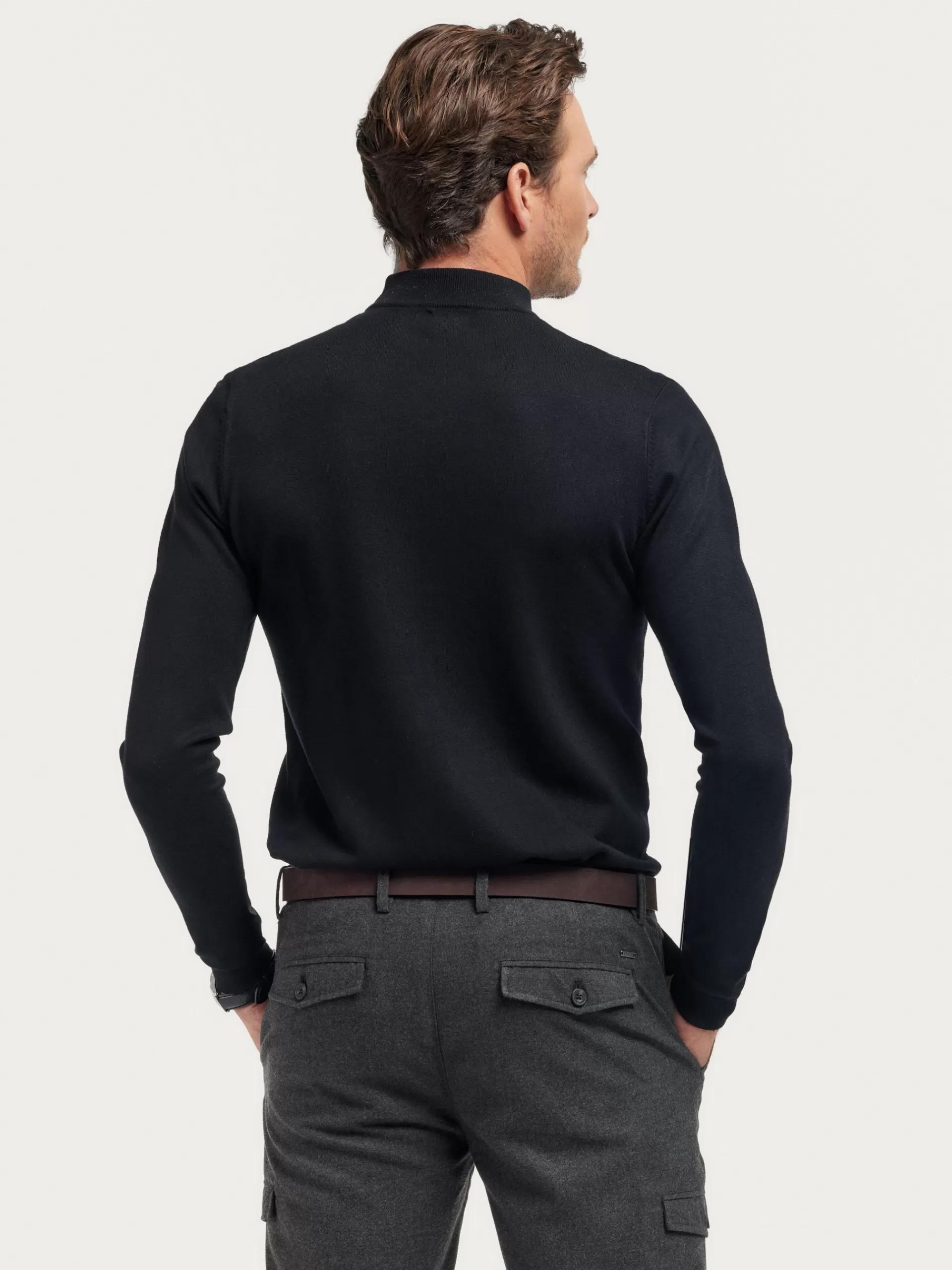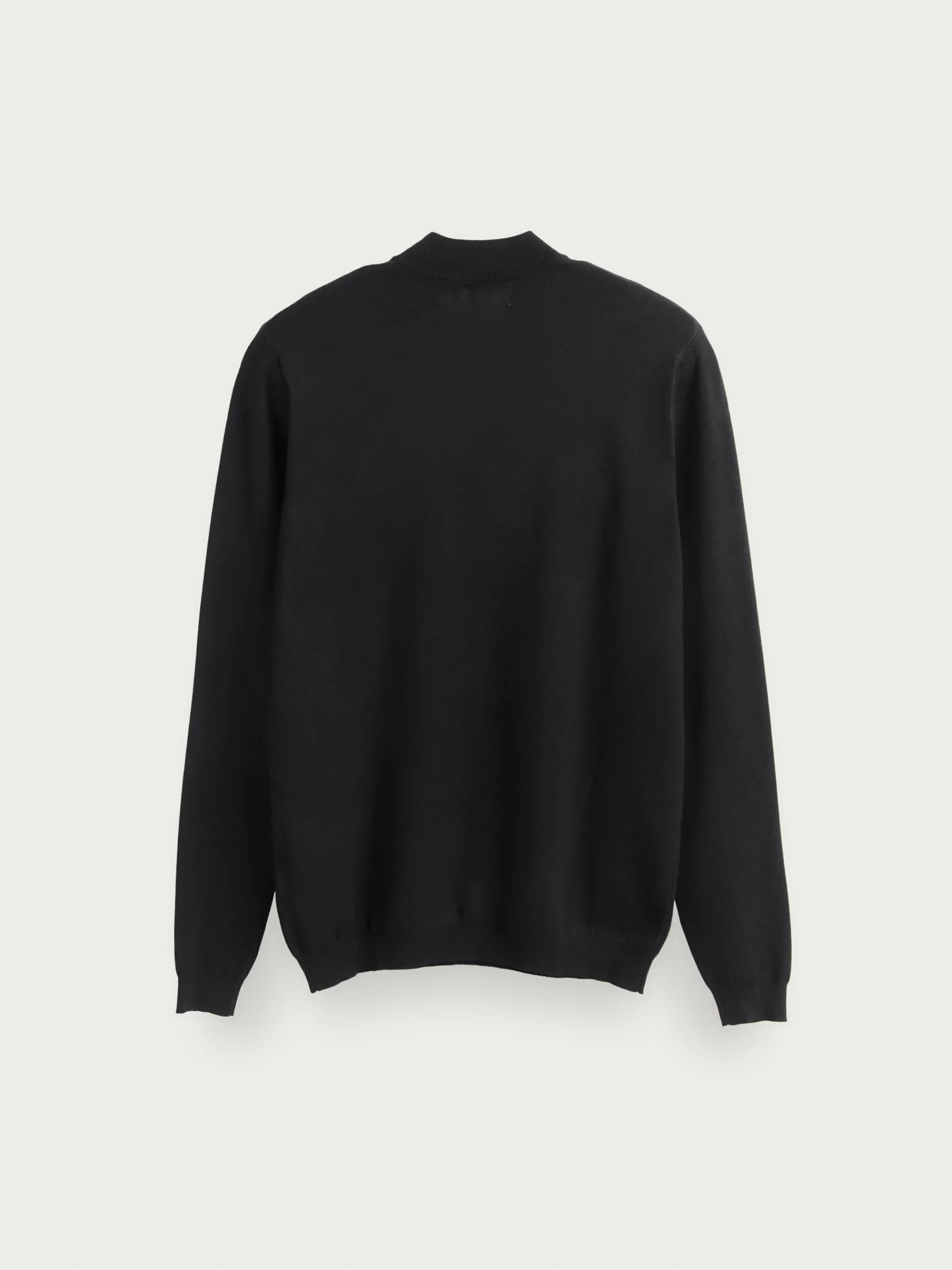 Jersey con cuello perkins y manga larga. Esta prenda de fina estructura, cuenta con detalle personalizado con el logo de la marca en el bajo y con sus puños, cintura y cuello ribeteados.
