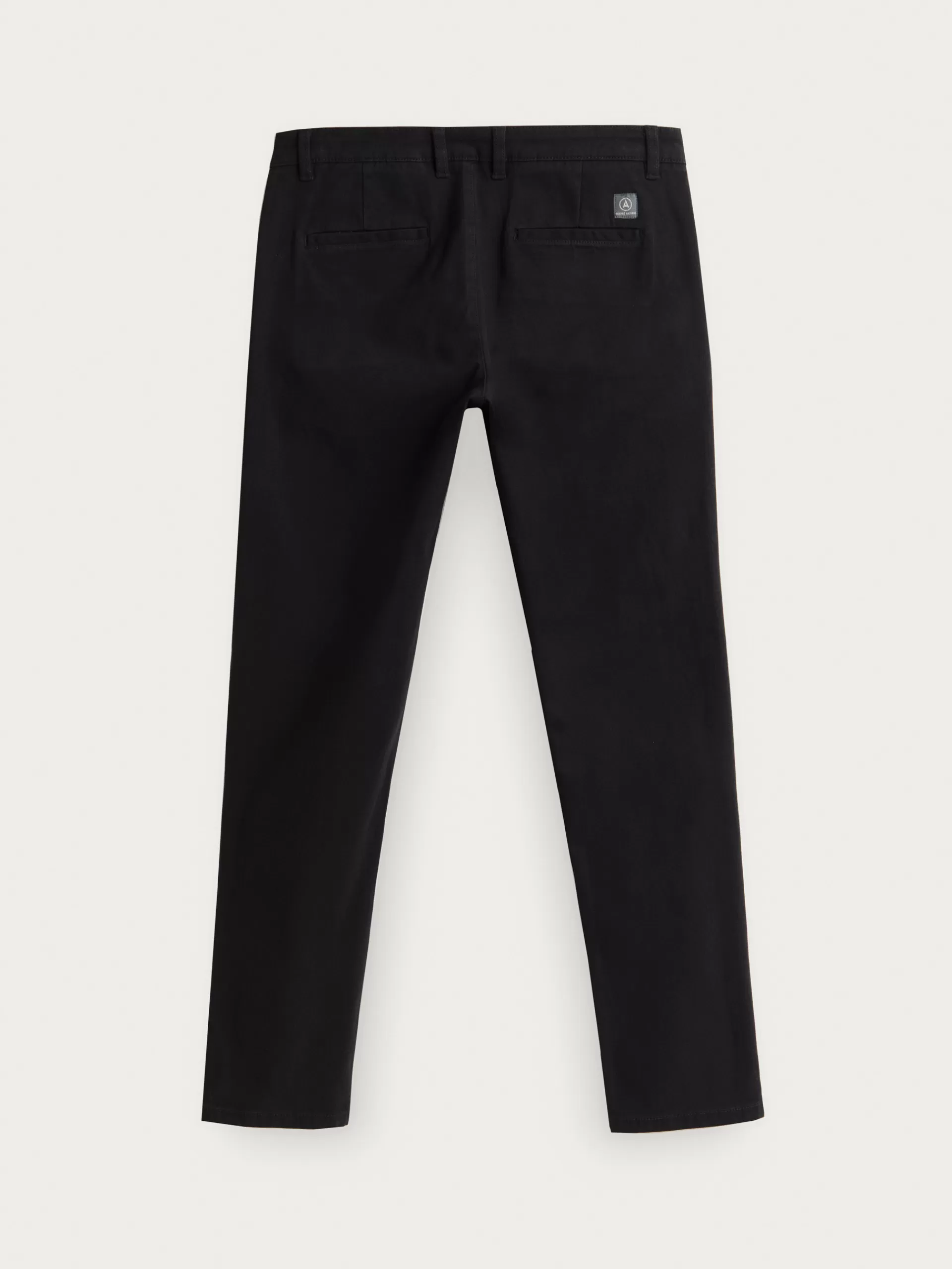 Pantalón chino con cierre central mediante botón y cremallera, dos bolsillos en el frontal y dos en la parte trasera. Detalle personalizado a contraste sobre uno de ellos. Corte slim fit.