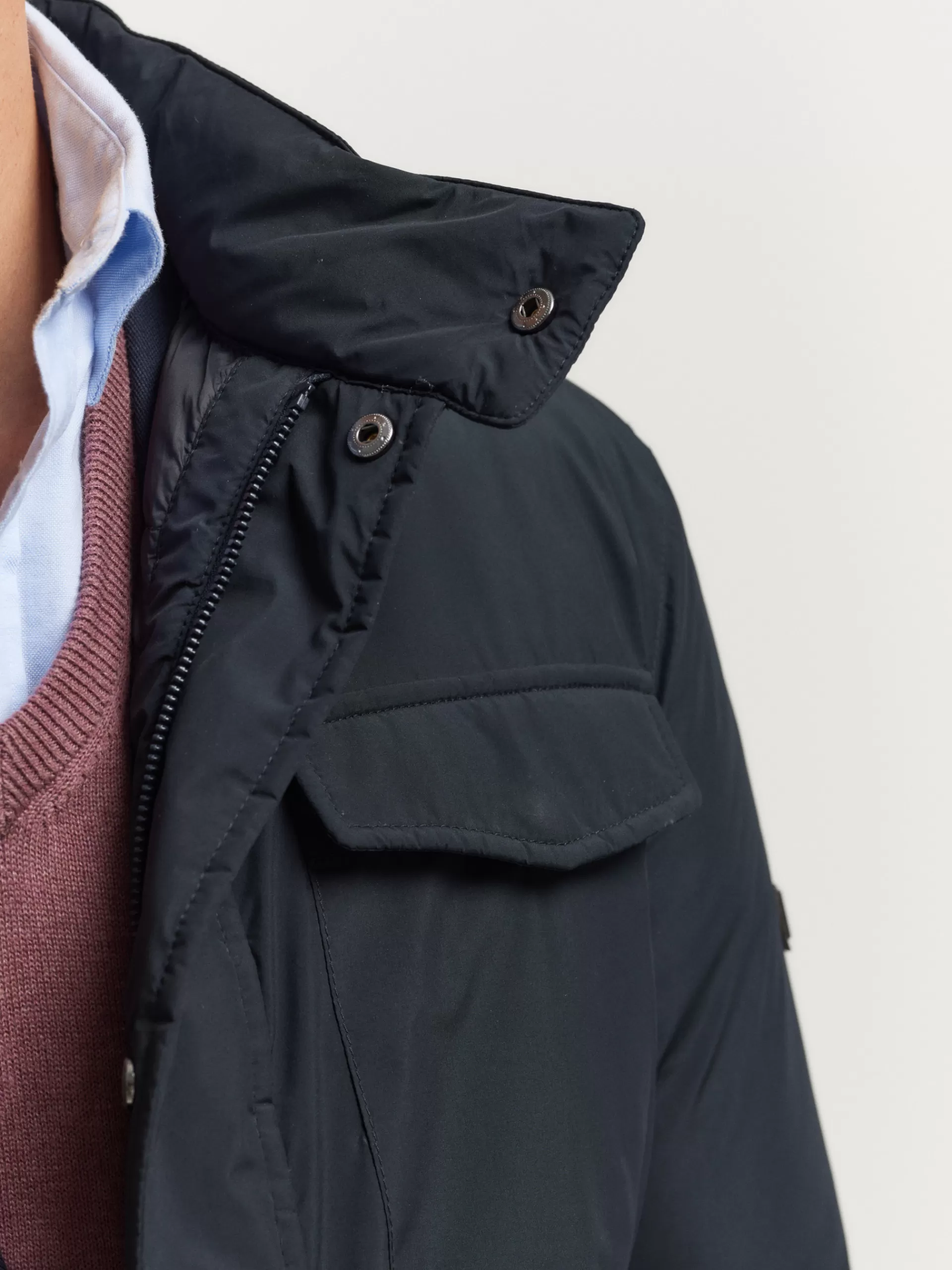 Parka acolchada con cuello subido de corte regular fit. Cierre central mediante cremallera oculta por tapeta de botones …