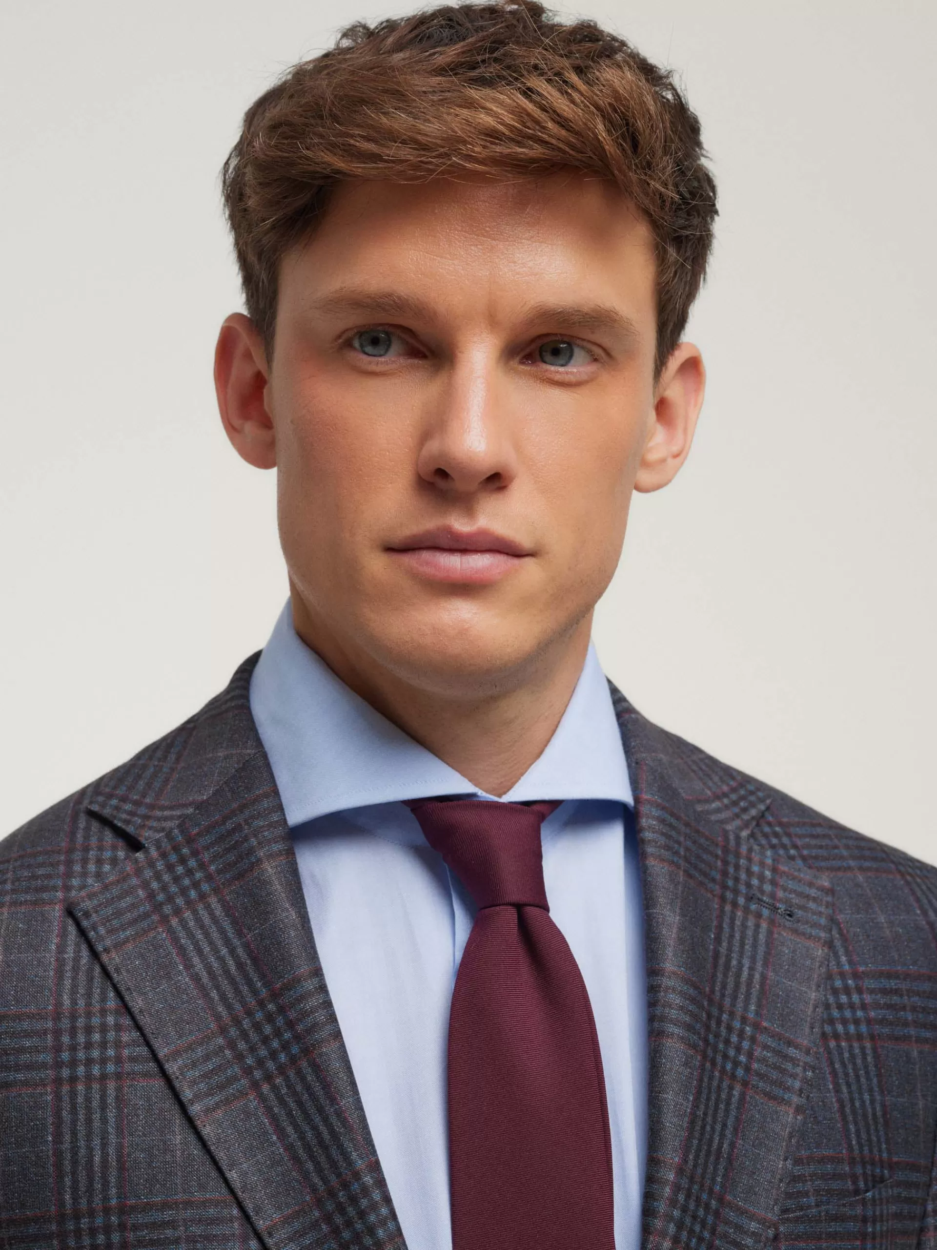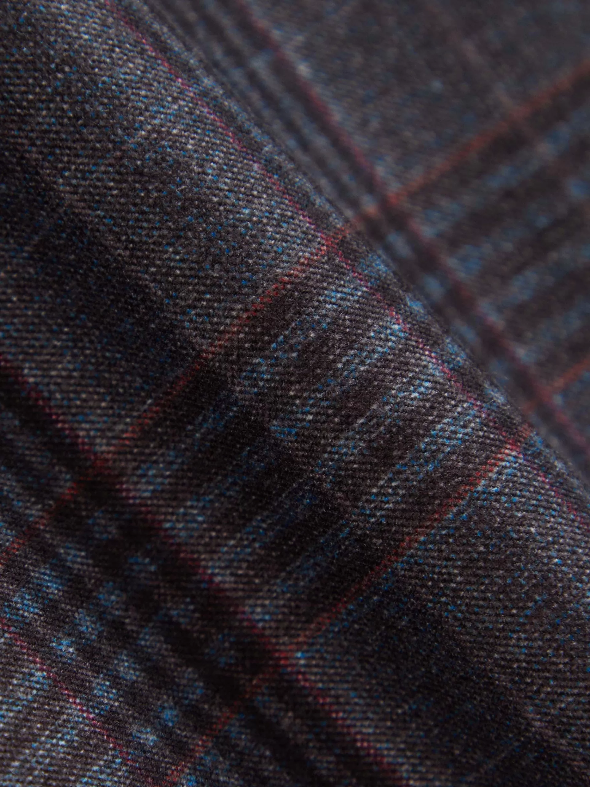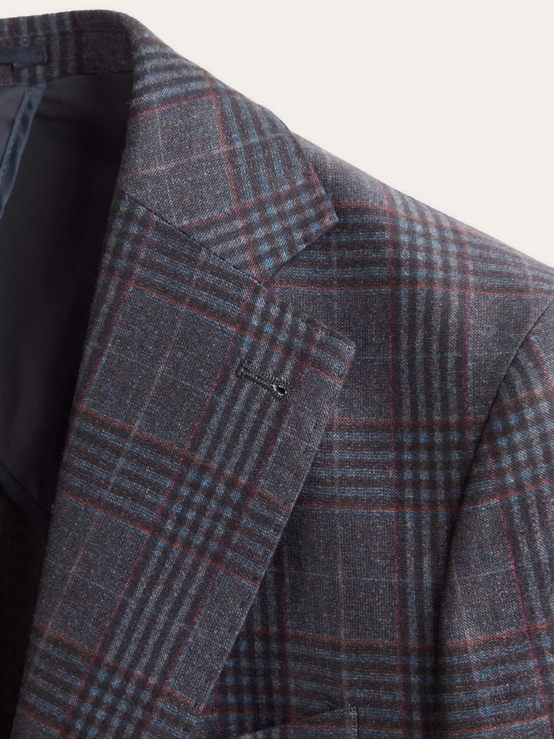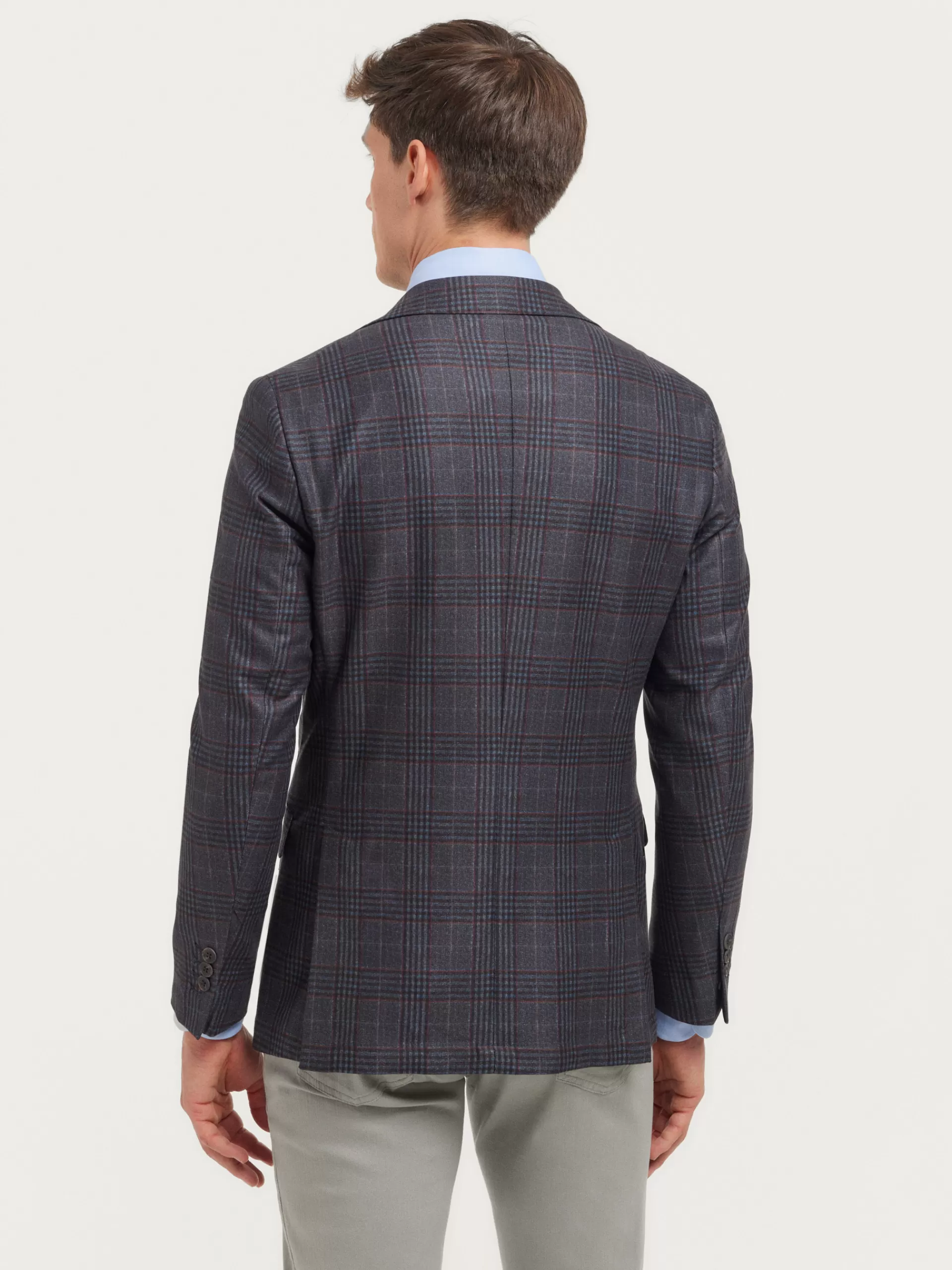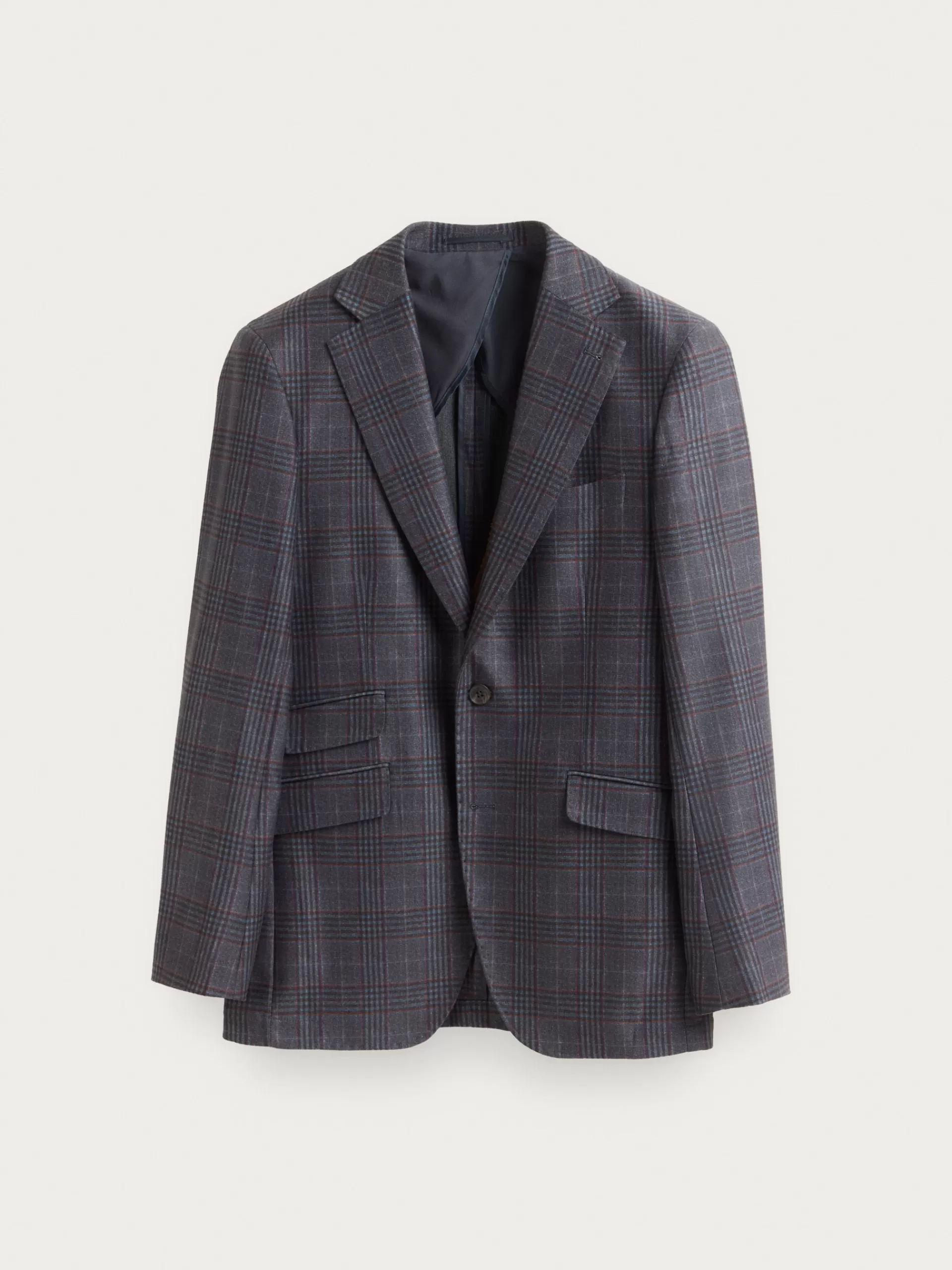 Americana confeccionada en tejido a cuadros de corte slim fit. Cuenta con cuello y solapa, cierre central simple mediant…