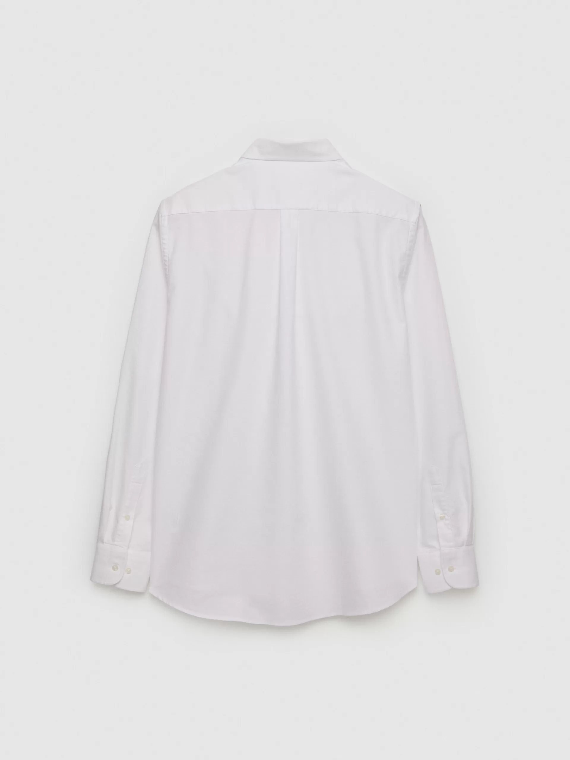 Camisa de estilo lisa y corte regular fit confeccionada en 100% algodón. Cuenta con cuello botón, manga larga con puños simples y logo de la marca grabado en el frontal a contraste.