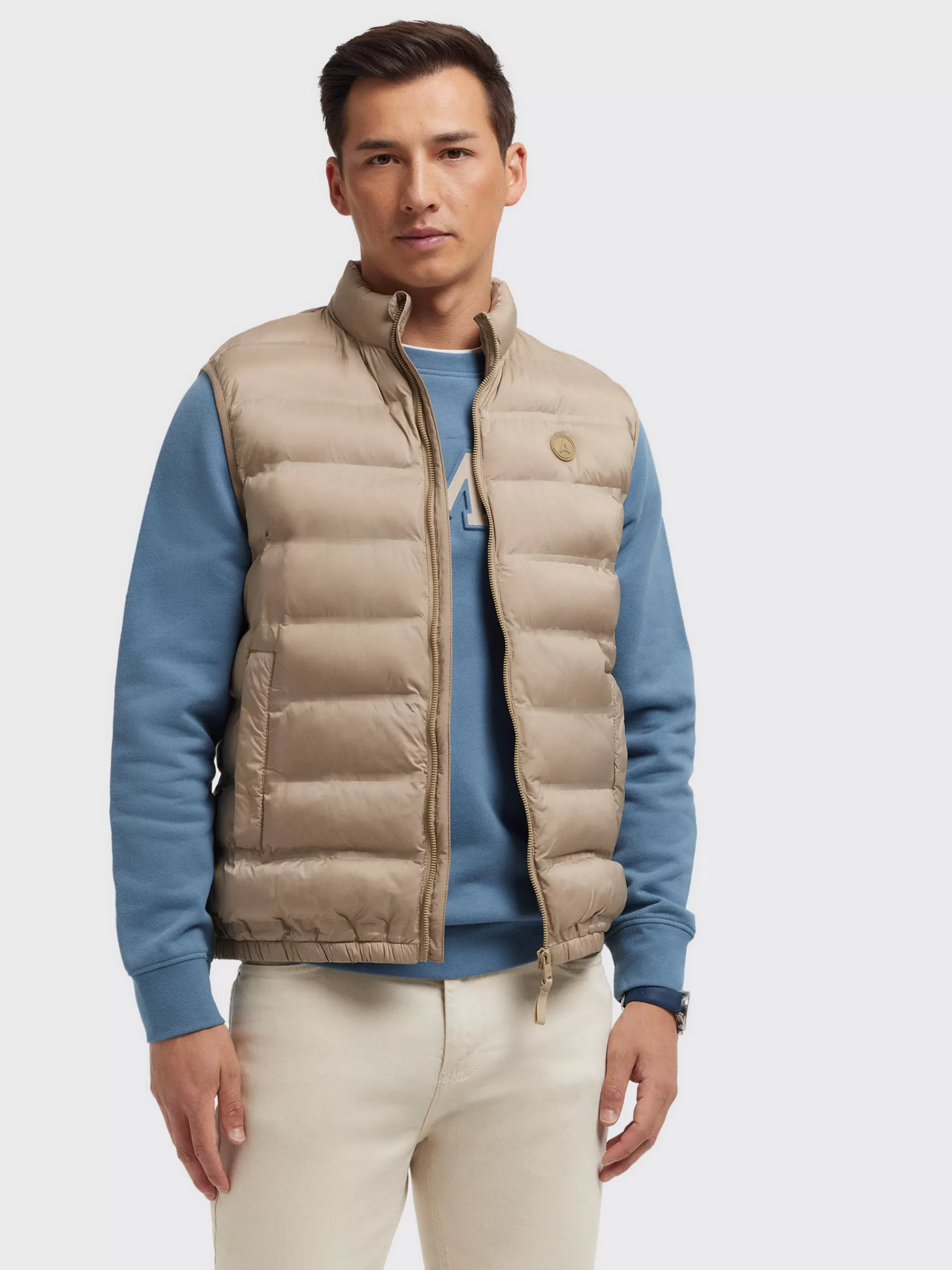 Chaleco acolchado con cuello subido y cierre central mediante cremallera, dos bolsillos a la altura de la cintura y logo…