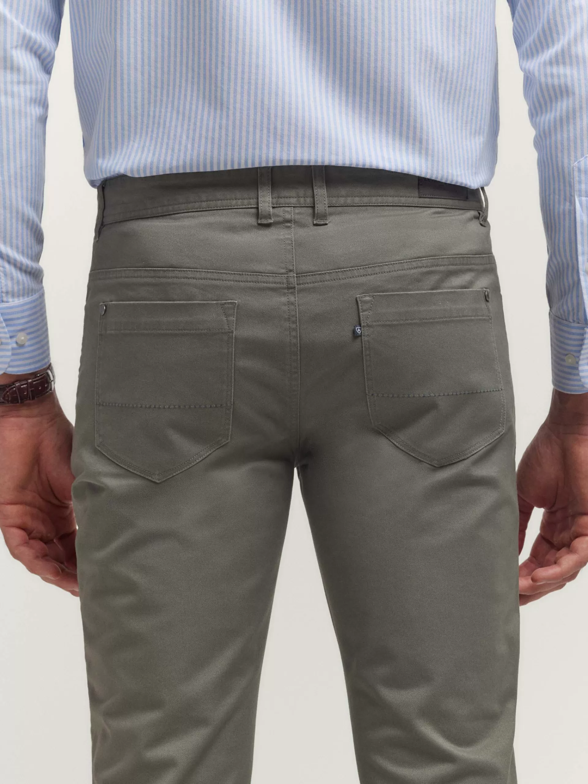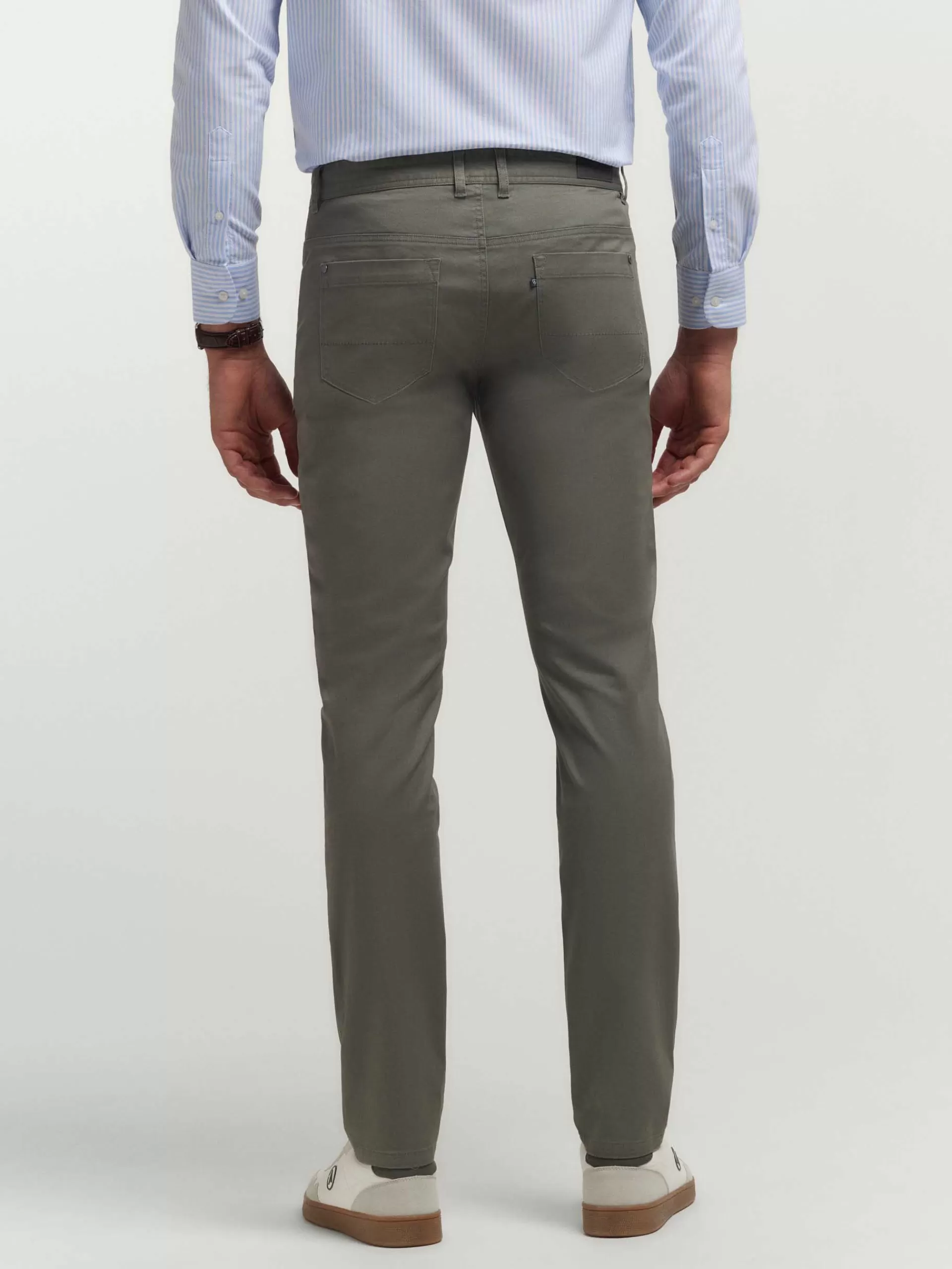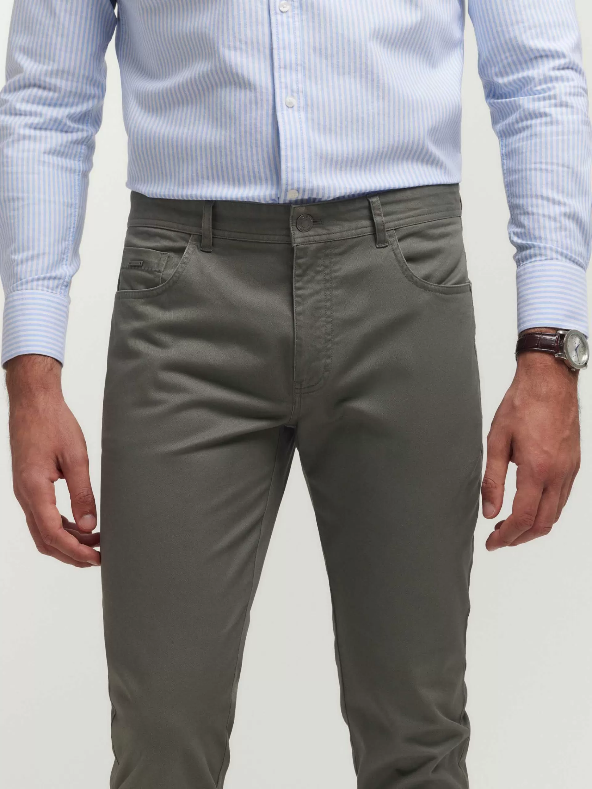 Pantalón de corte slim fit con 5 bolsillos. Cierre central mediante botón y cremallera, bolsillo cerillero y dos bolsi…