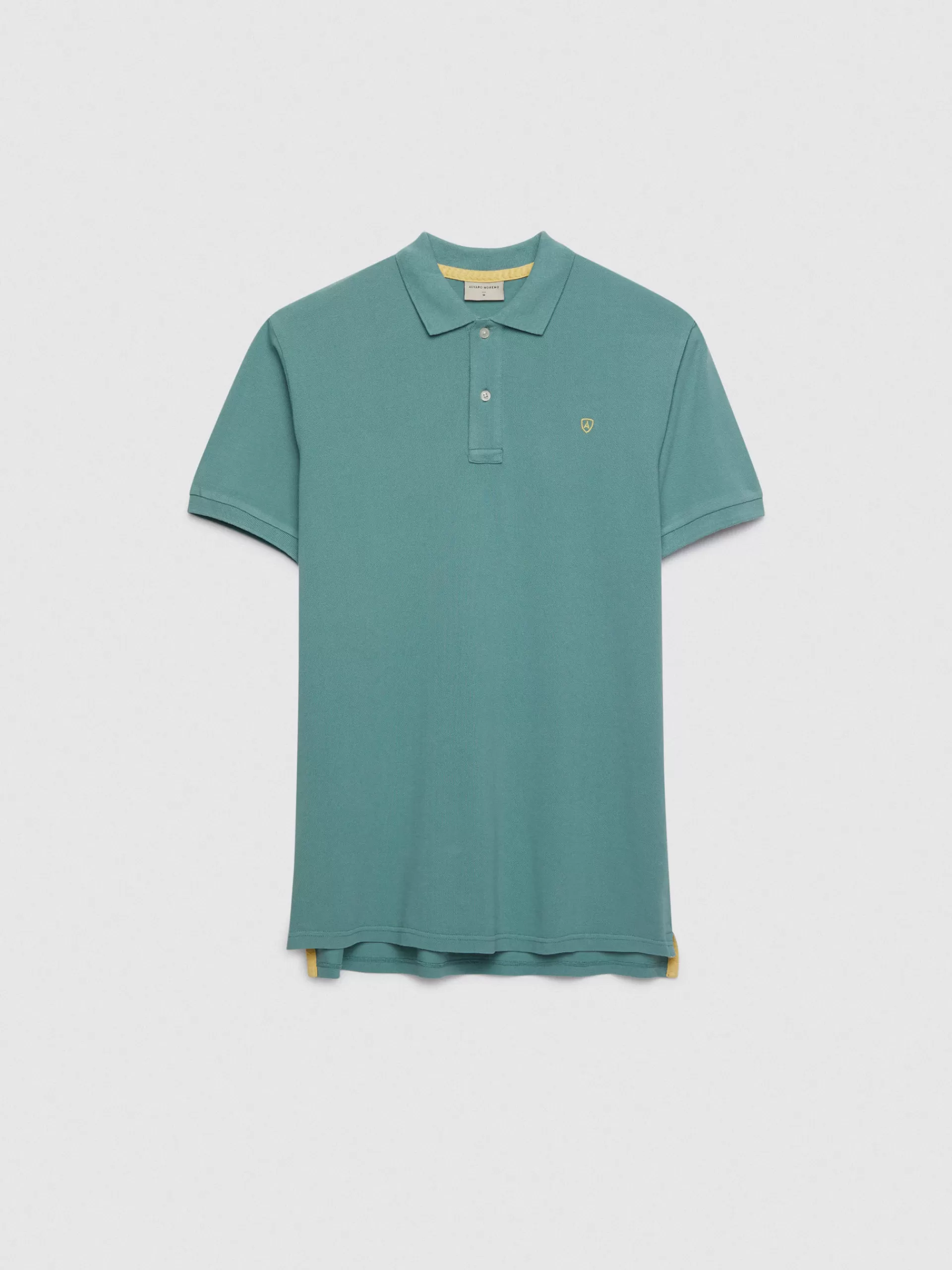 Polo básico de manga corta confeccionado en algodón. Cuello clásico de cierre mediante tapeta de dos botones, logo grabado en el frontal a contraste, aperturas en el bajo y corte regular fit.