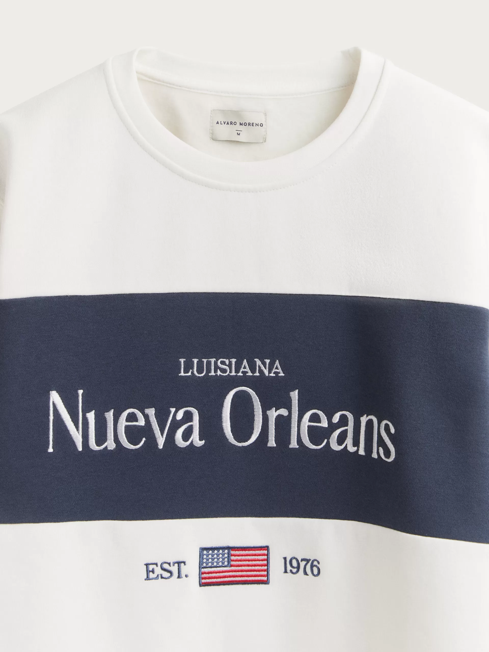 Sudadera con estampado personalizado en la parte frontal. Cuello redondo, manga larga y puños y bajo en acabado elástico. Corte regular fit.