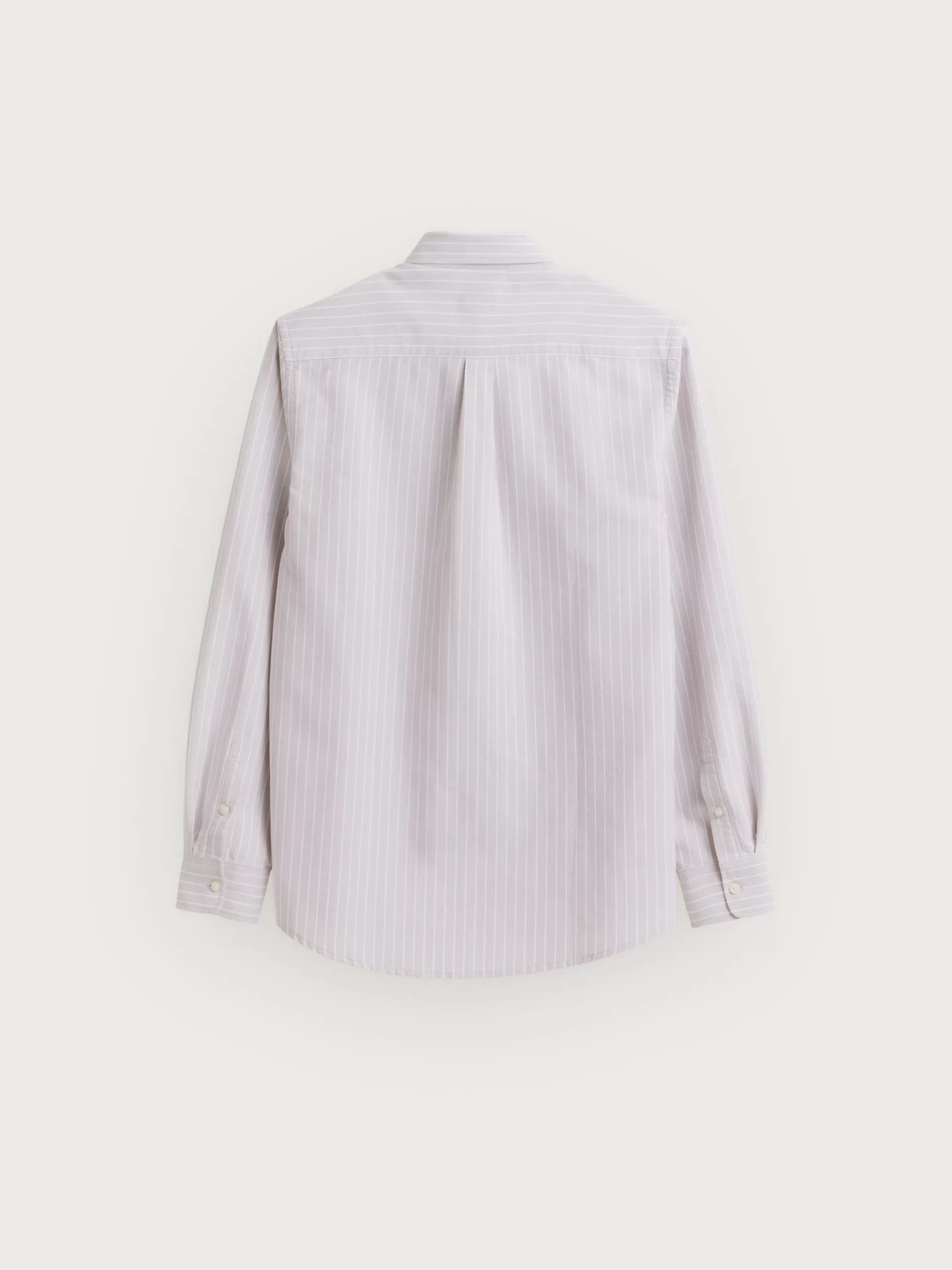 Camisa a rayas confeccionada en algodón con cuello clásico de botón, manga larga con puños simples y logo de la marca grabado en el frontal al tono. Corte regular fit.