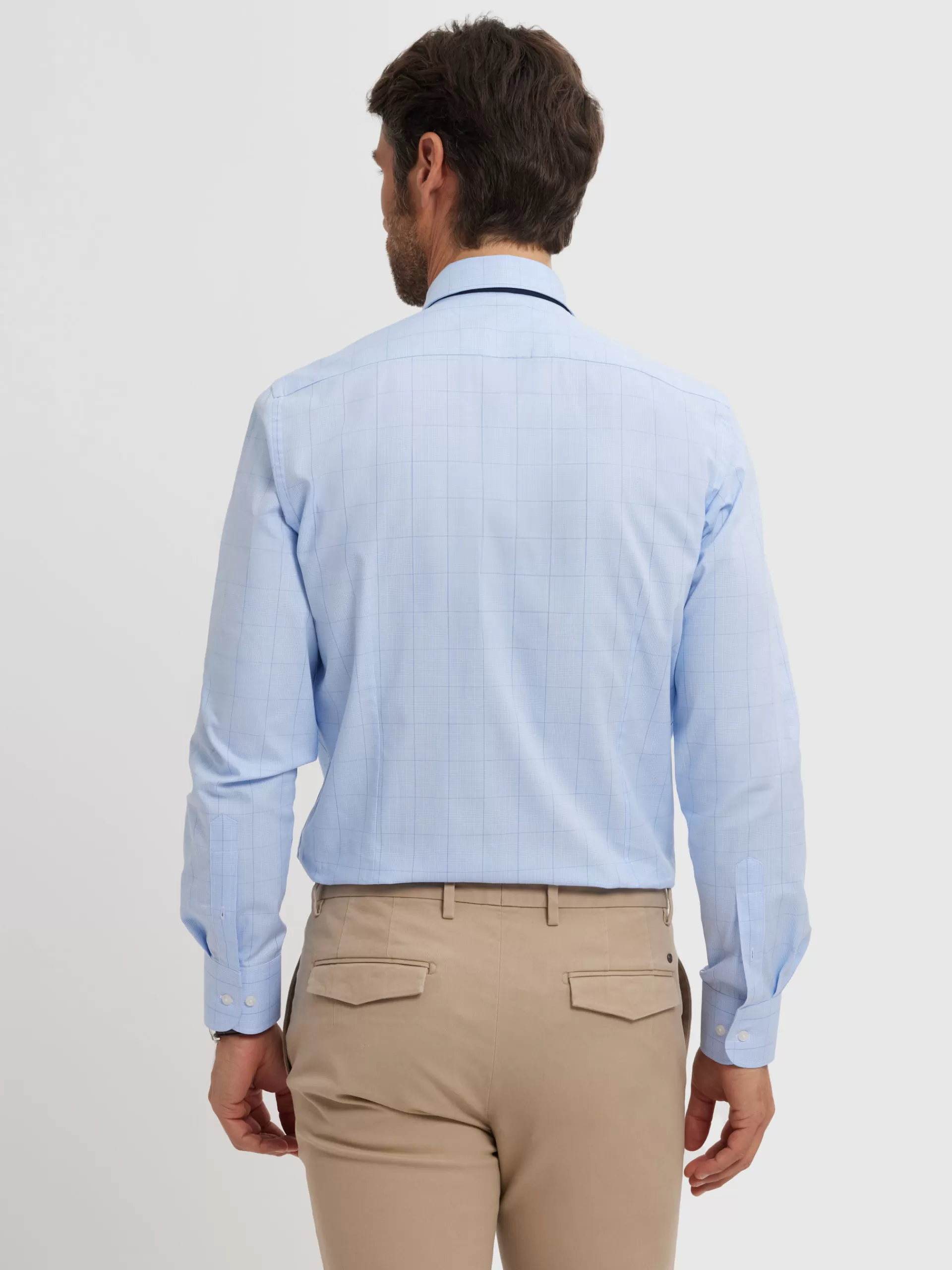 Camisa de vestir confeccionada con tejido estilo gales. Cuenta con cuello italiano, puños simples y logo de la marca grabado en el frontal. Corte slim fit.