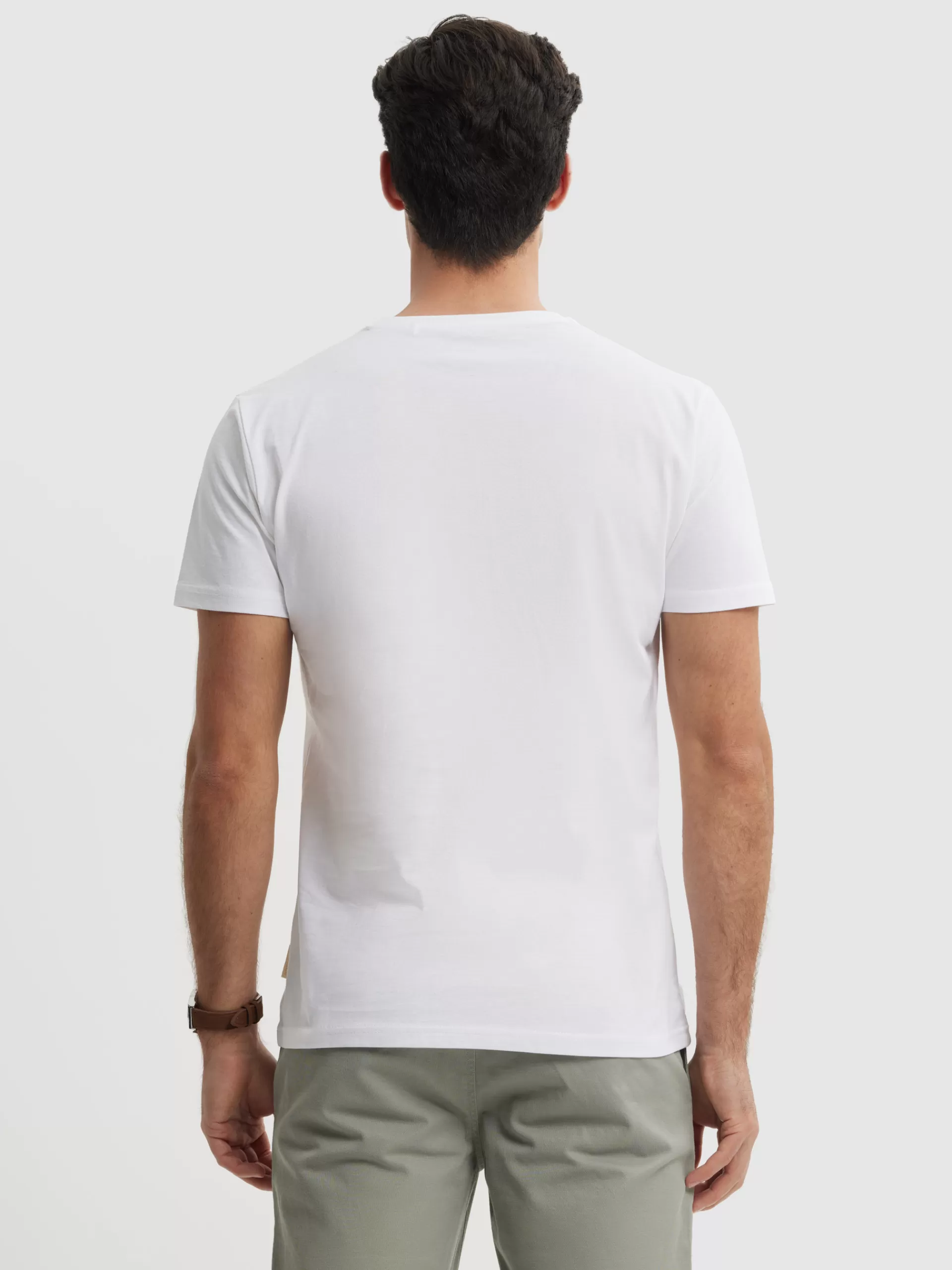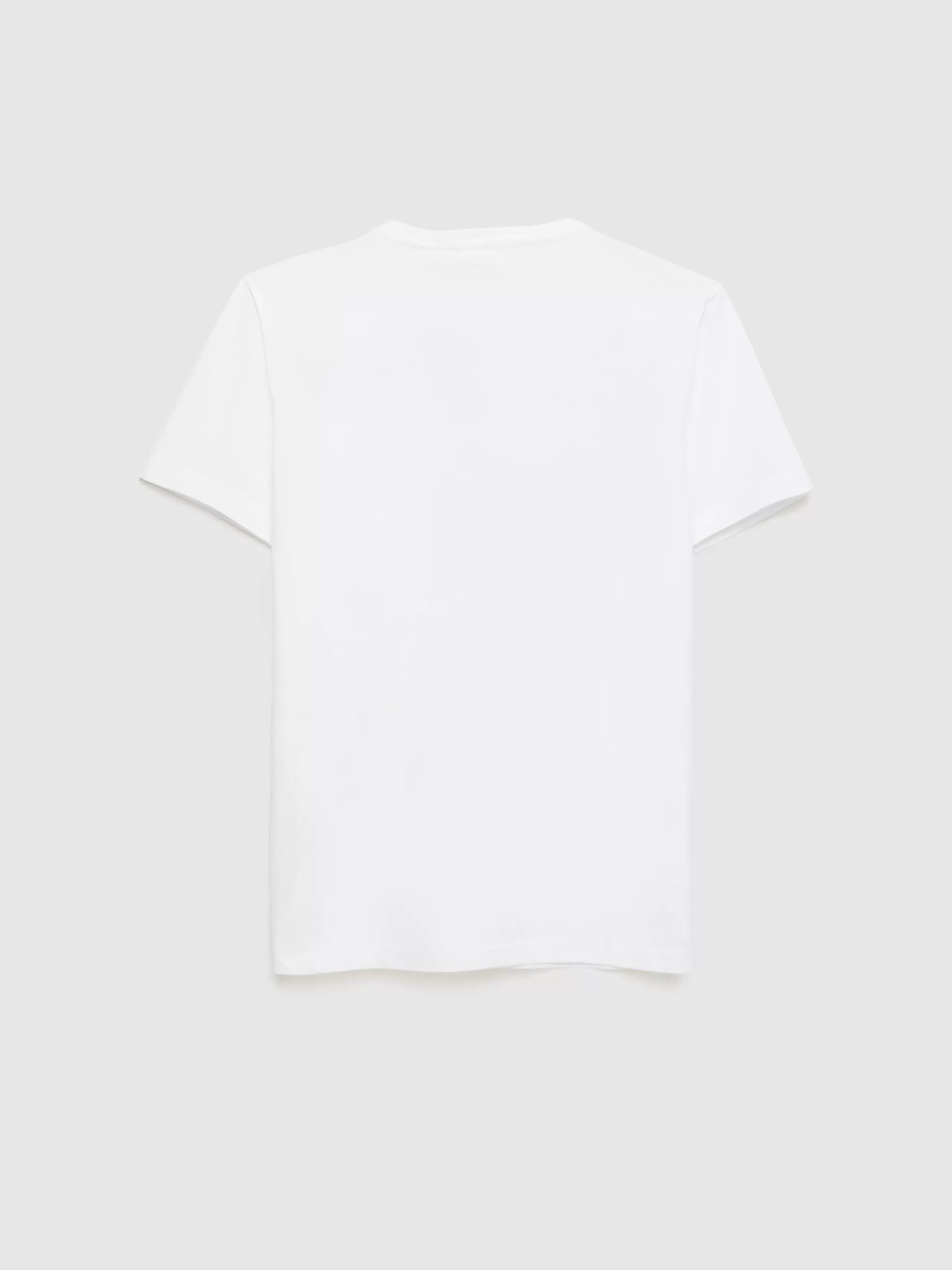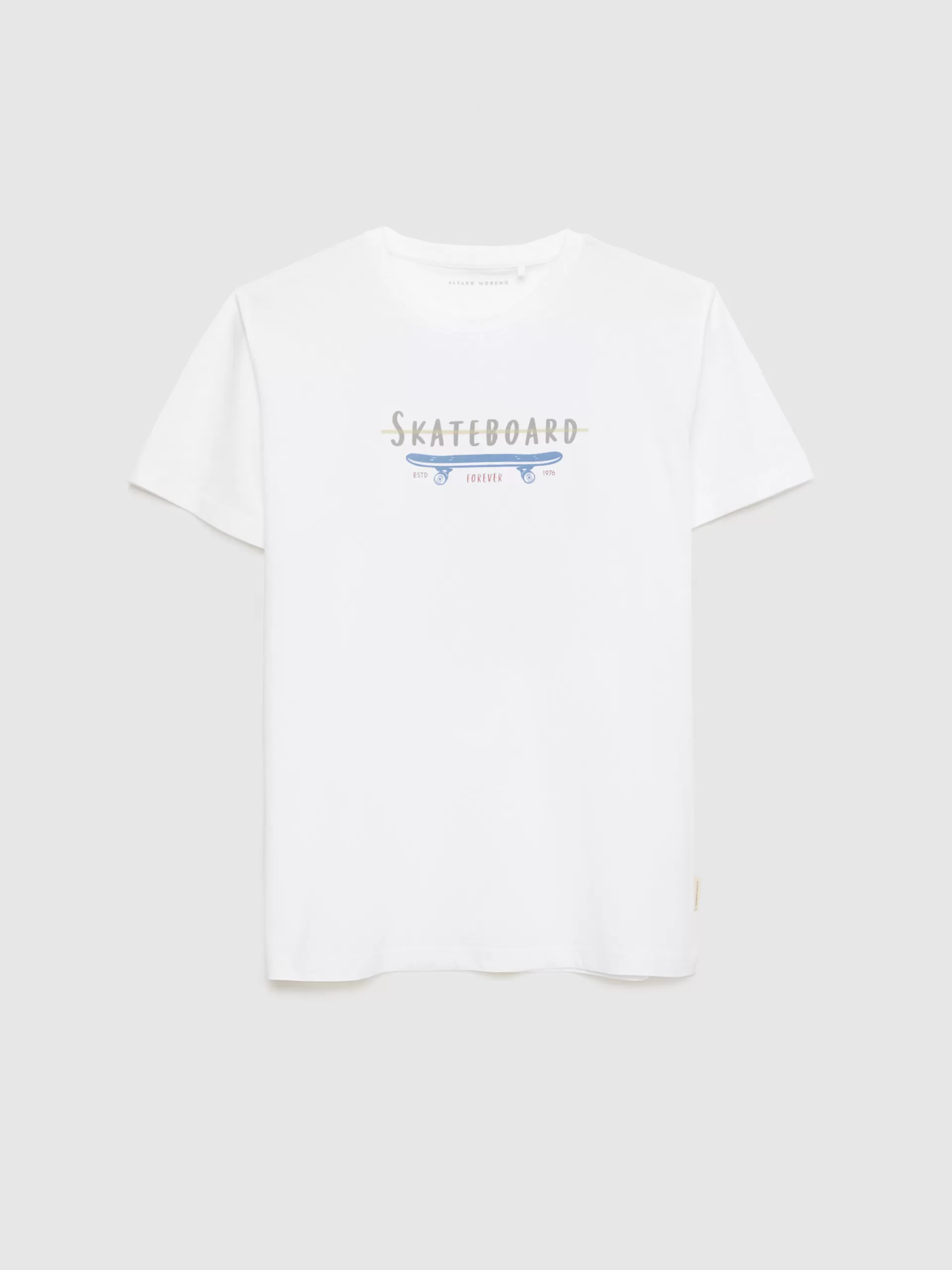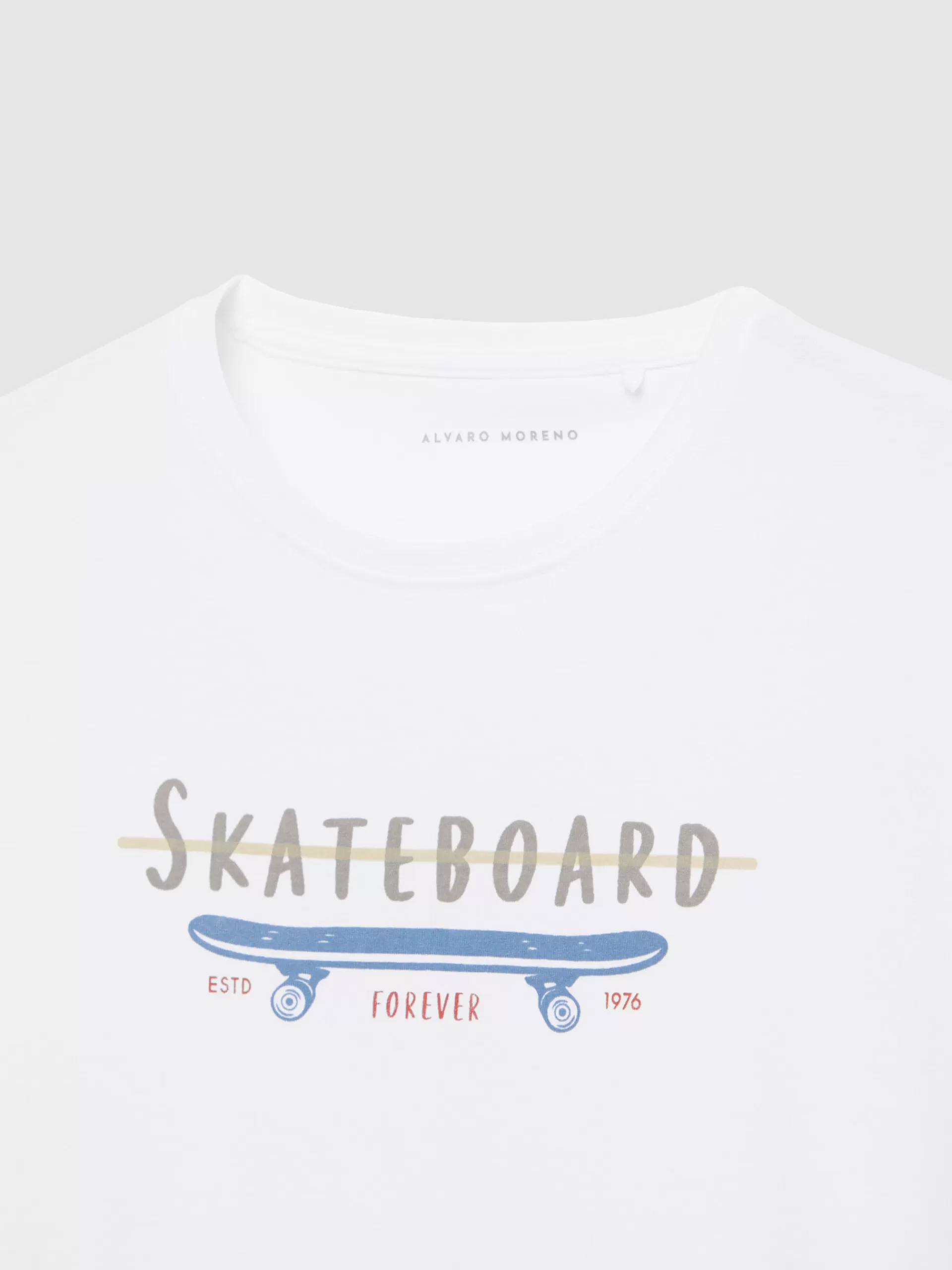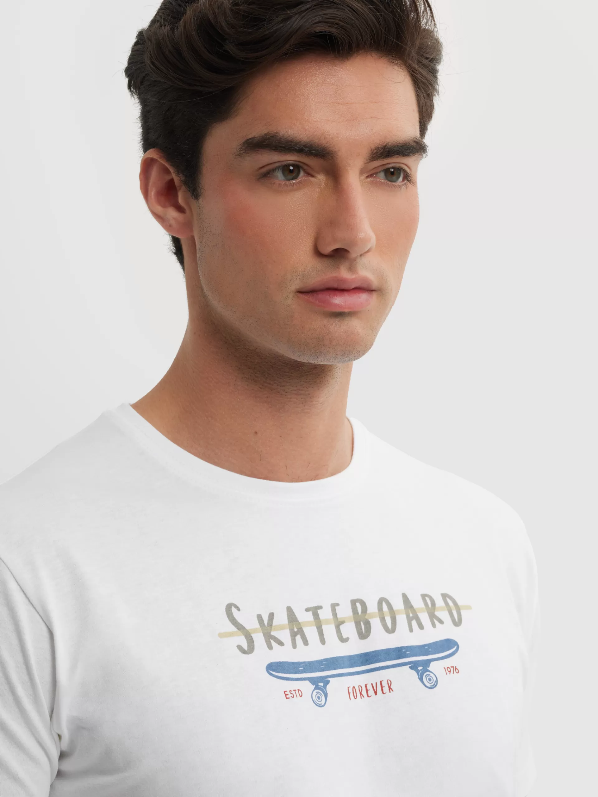 Camiseta con estampación personalizada en el frontal confeccionada en algodón. Cuenta con cuello redondo, manga corta y etiqueta canvas en el bajo. Corte regular fit.