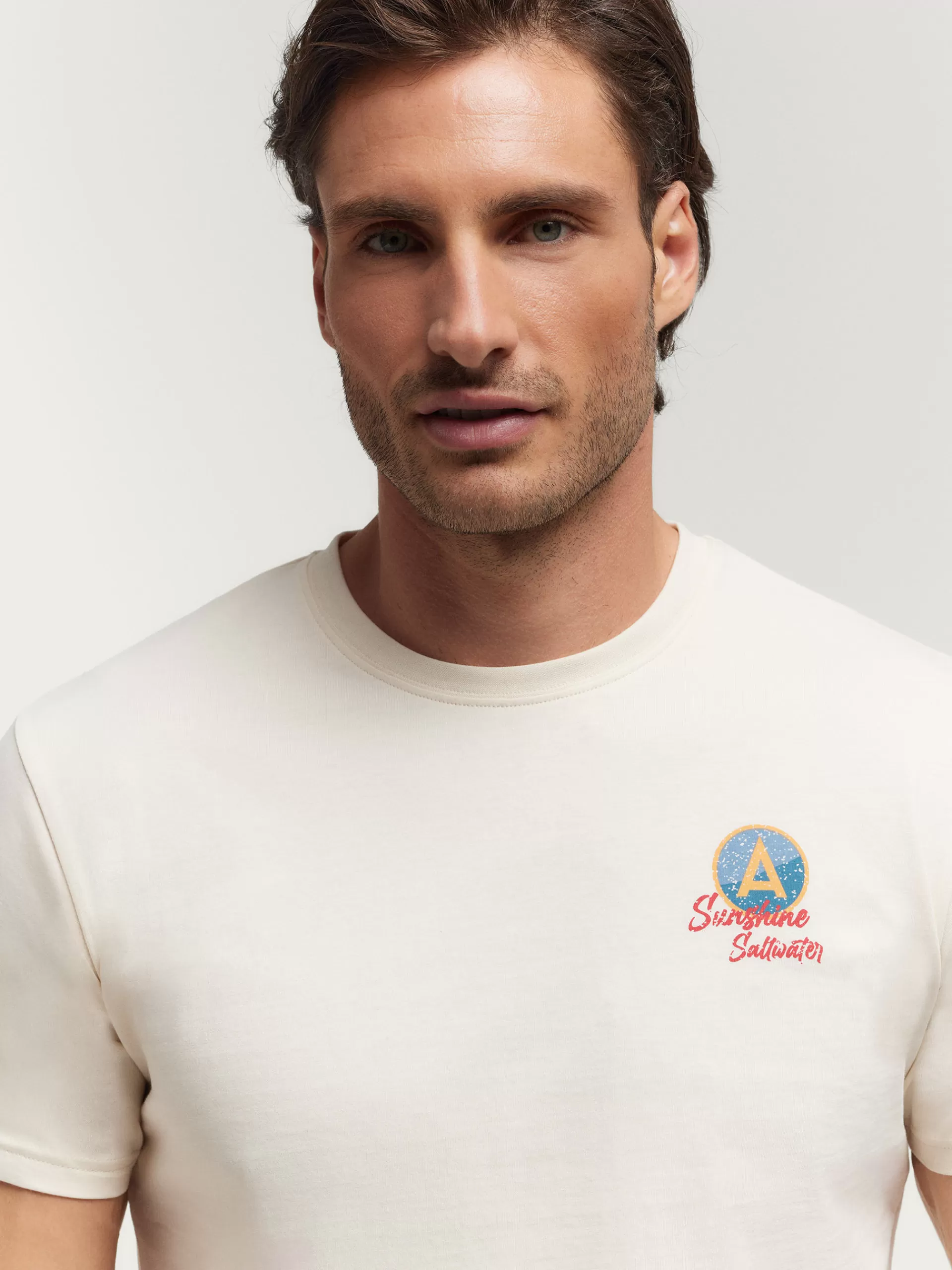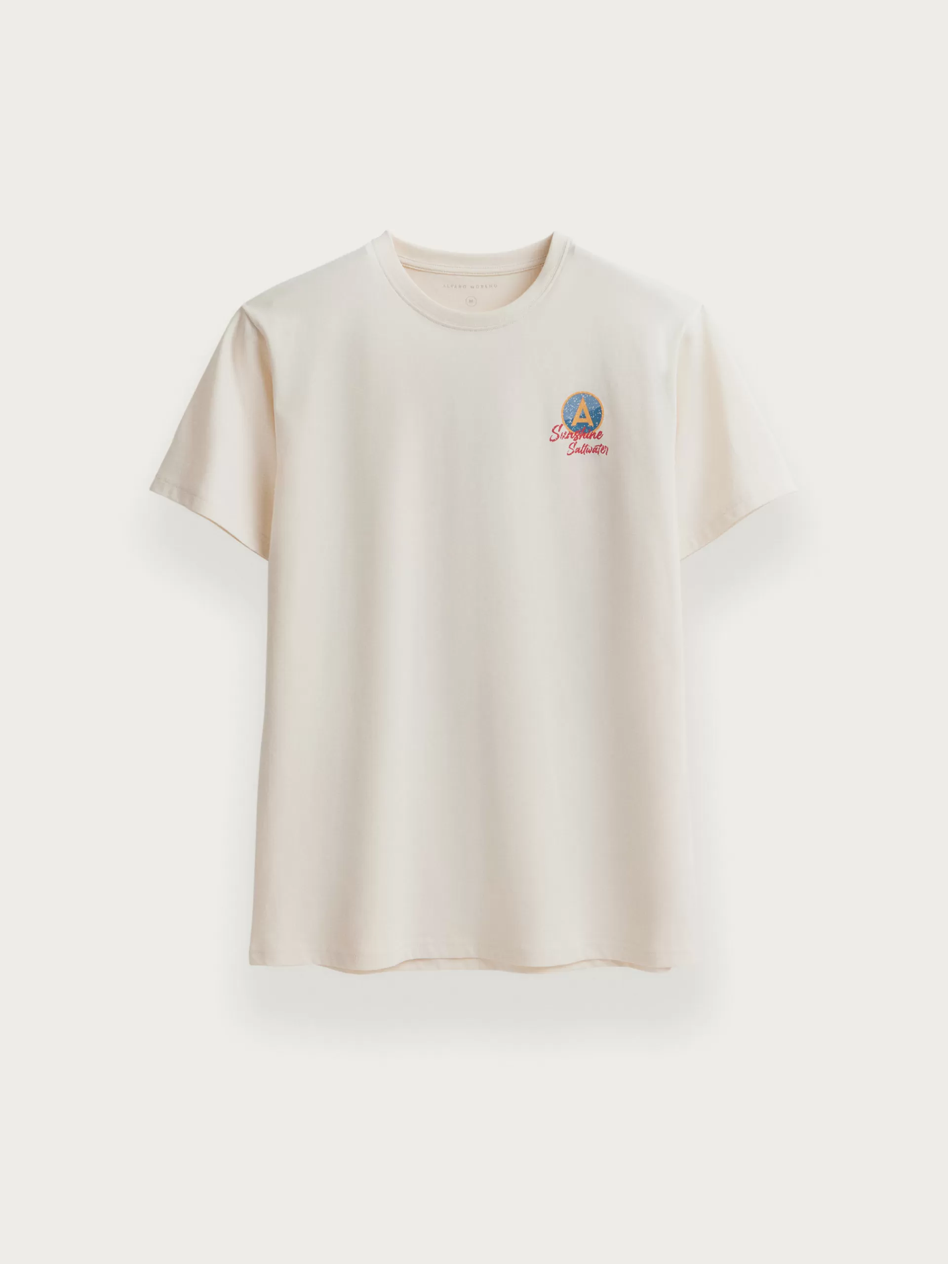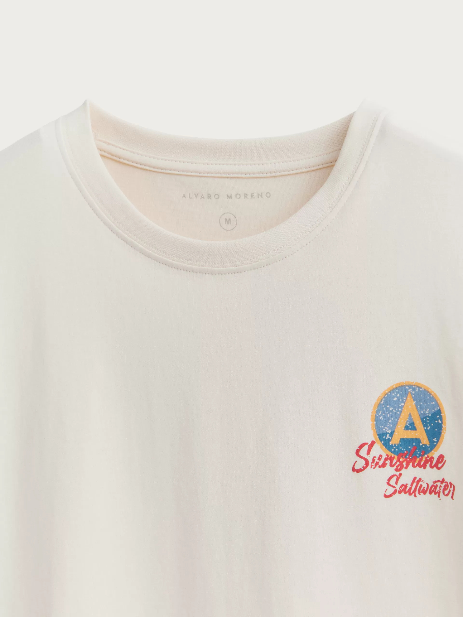 Camiseta con estampado personalizado a contraste en el frontal y en la espalda. Cuenta con cuello redondo, manga corta y corte regular fit.