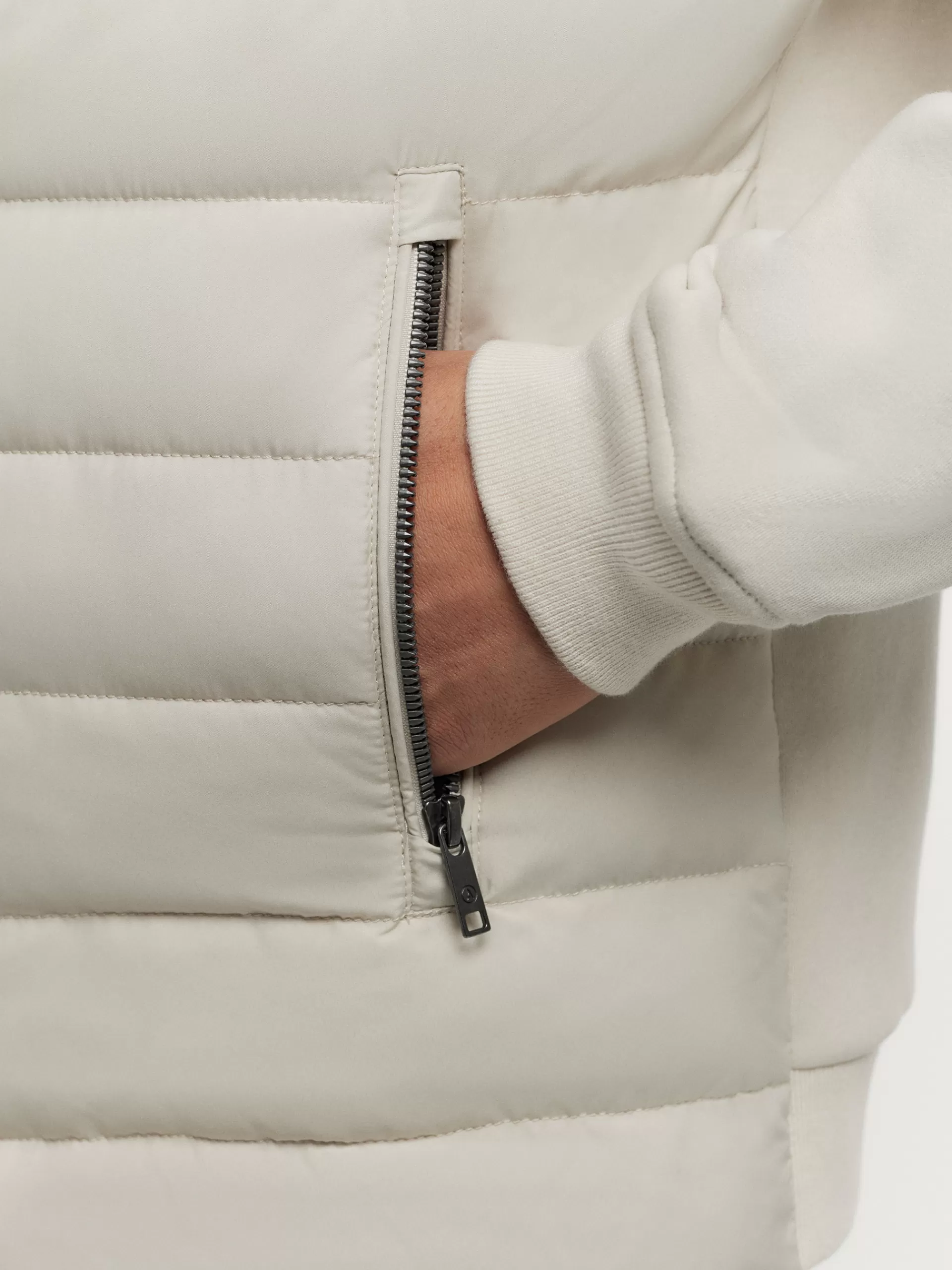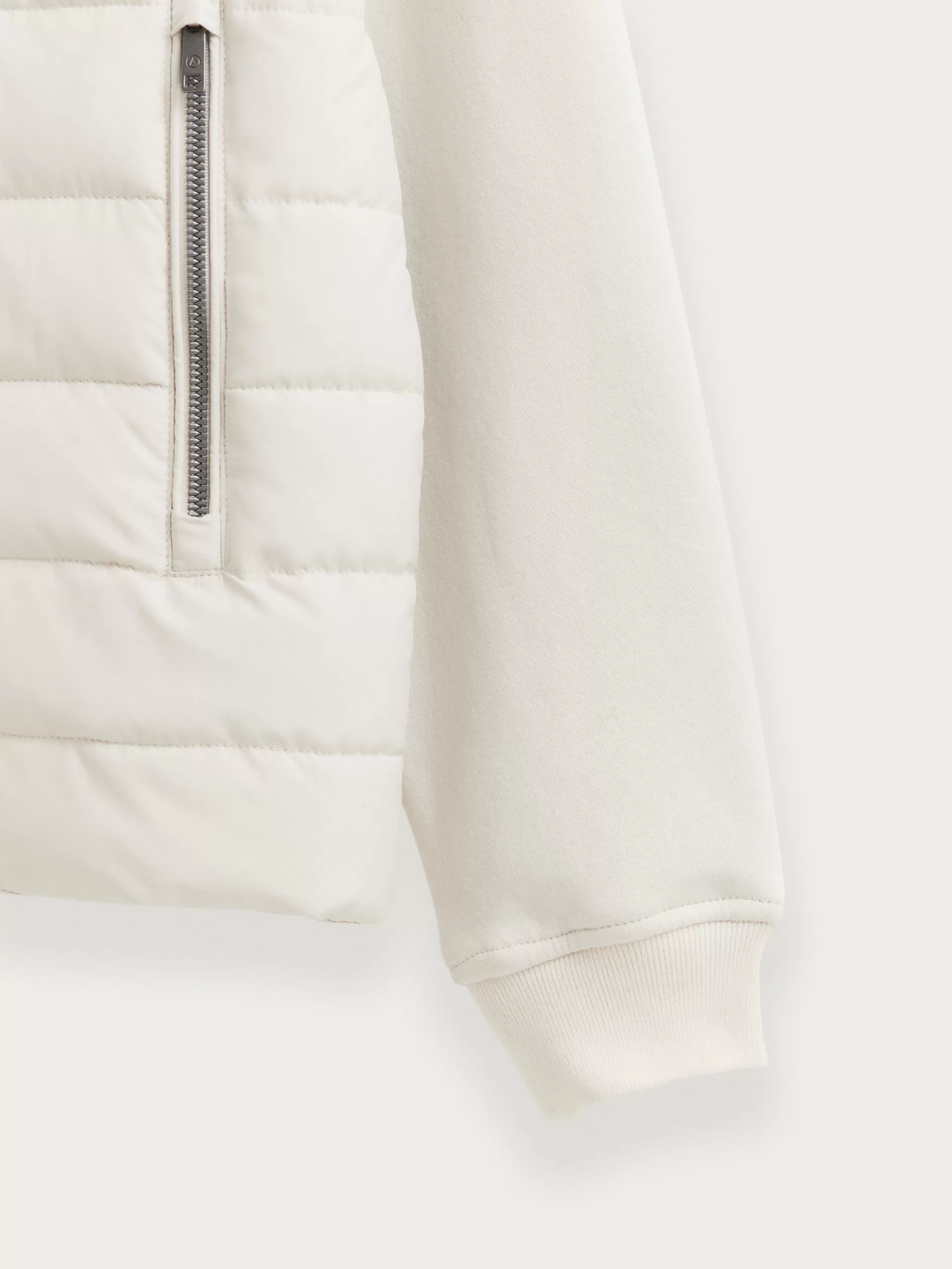 Cazadora estilo bomber con cuello y mangas en tejido de punto. Cuenta en su parte delantera con cierre central mediante …