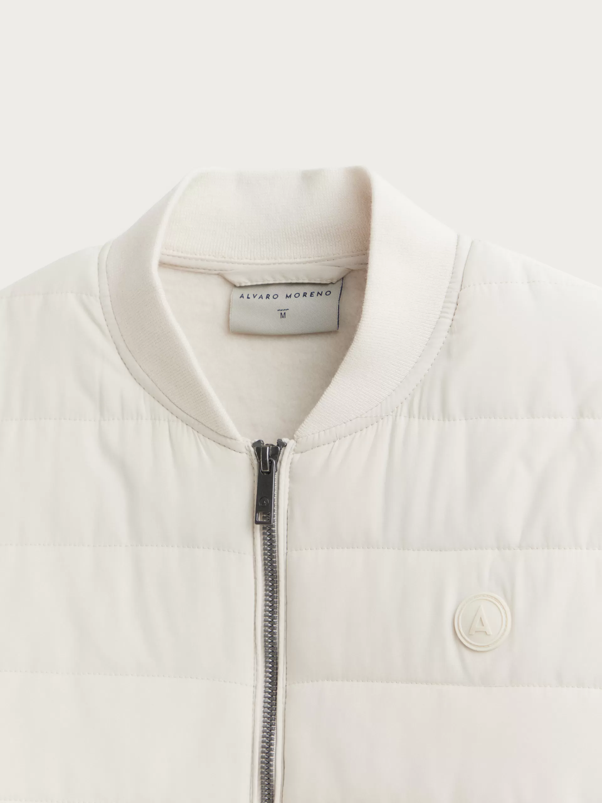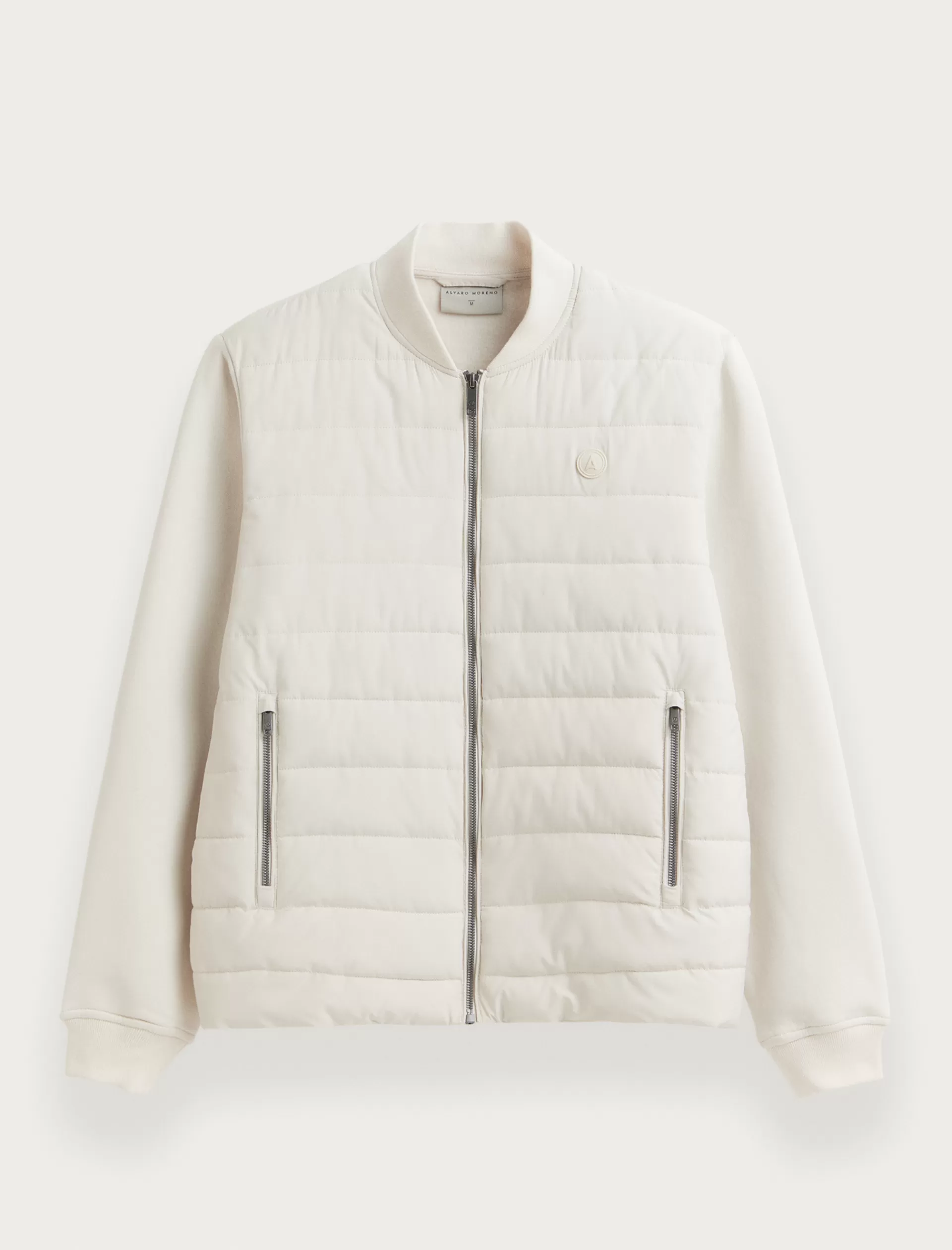 Cazadora estilo bomber con cuello y mangas en tejido de punto. Cuenta en su parte delantera con cierre central mediante cremallera, dos bolsillos y parche con el logo de la marca grabado en el pecho.