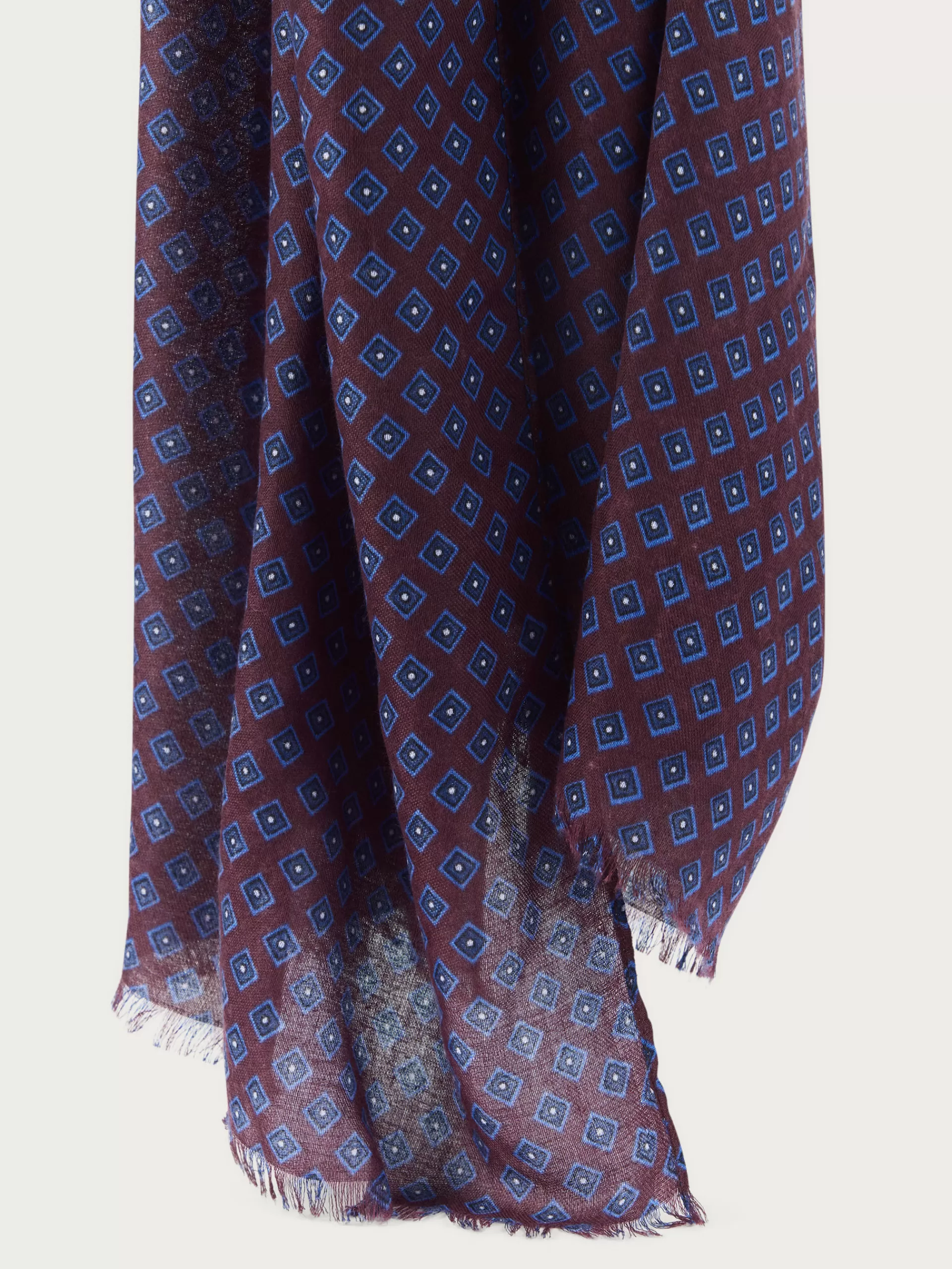 Foulard de diseño personalizado estampado confeccionado en tejido suave y cálido. Terminación con flecos.