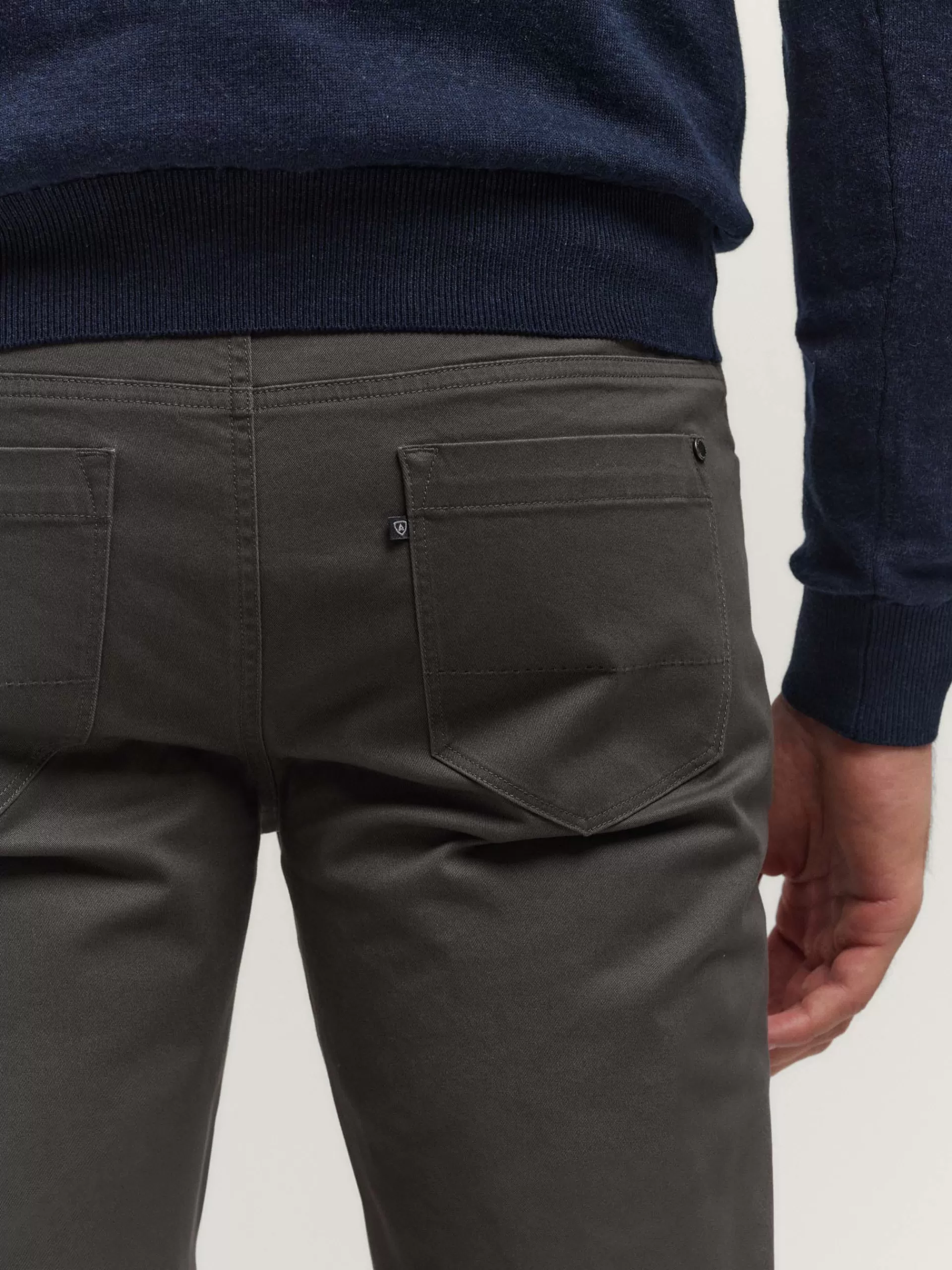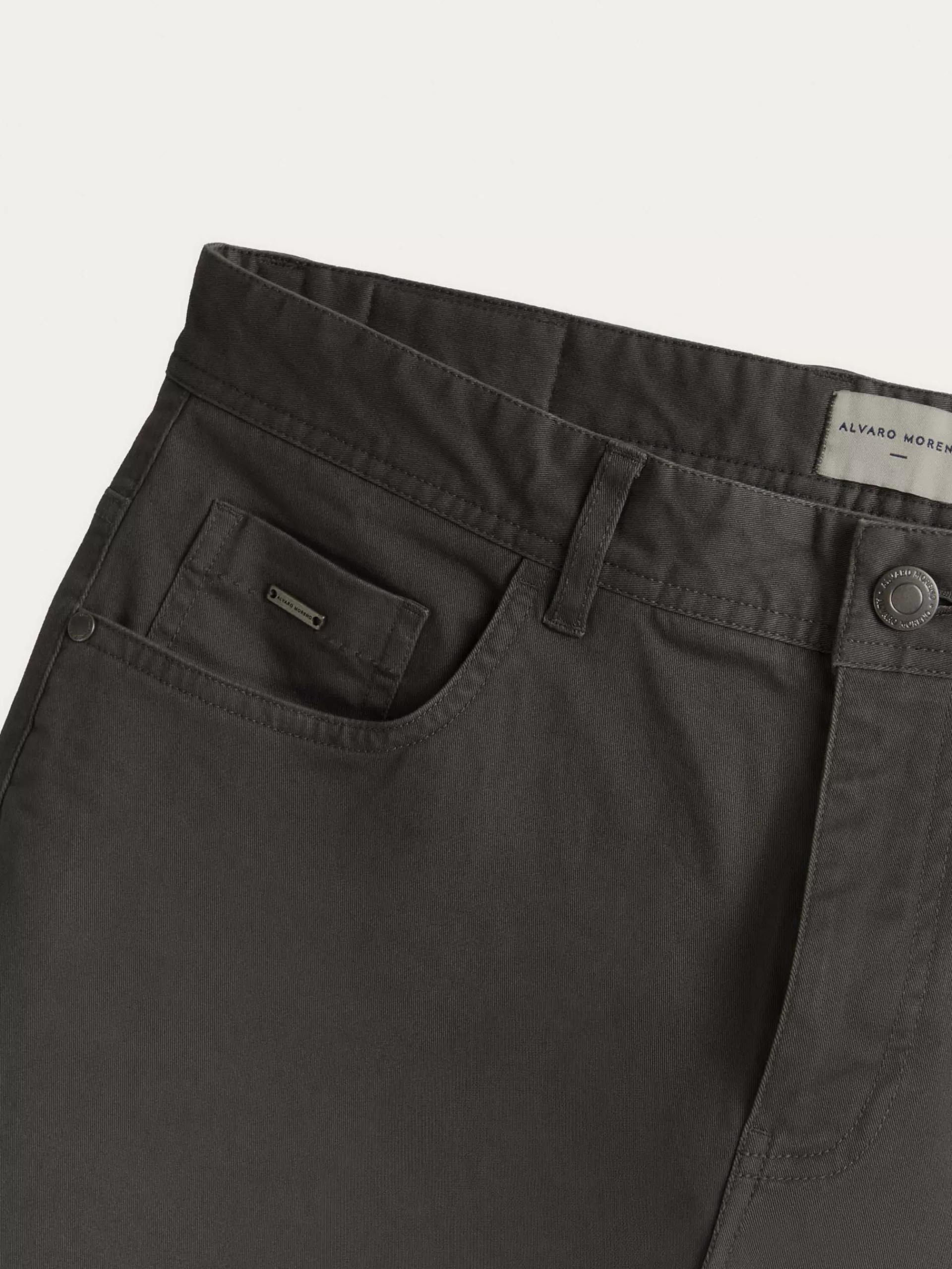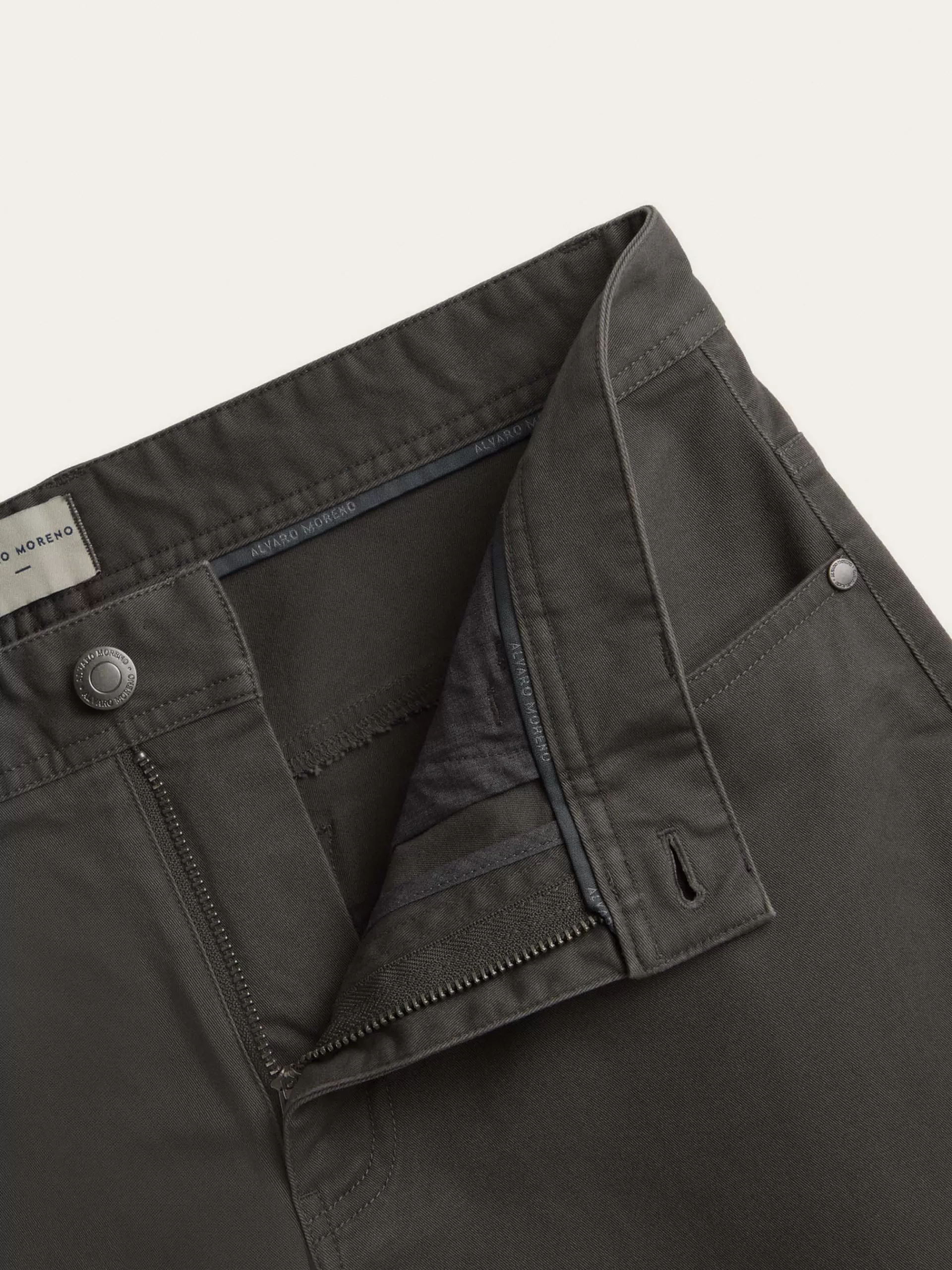 Pantalón de corte slim fit con 5 bolsillos. Cierre central mediante botón y cremallera, bolsillo cerillero y dos bolsi…