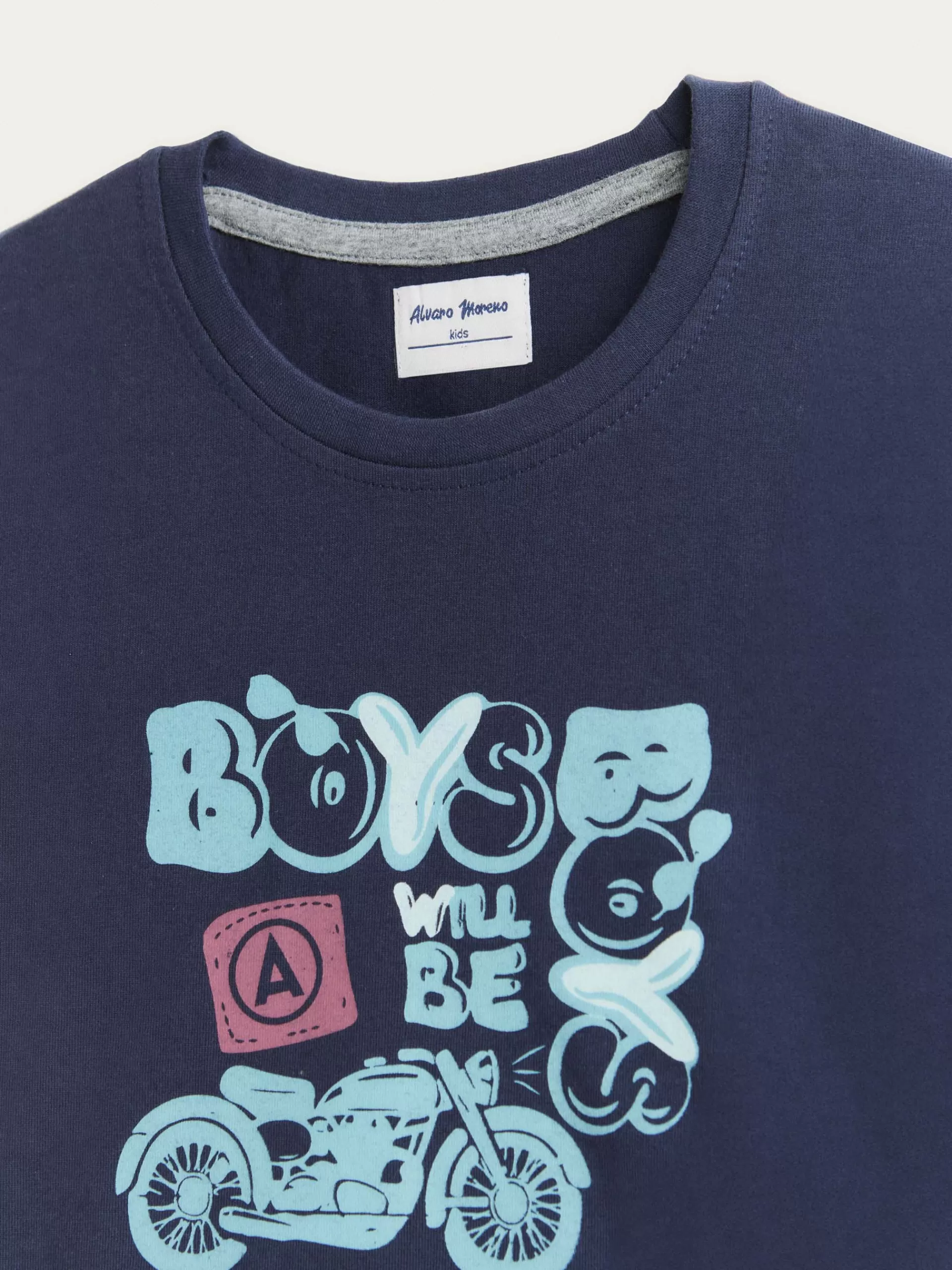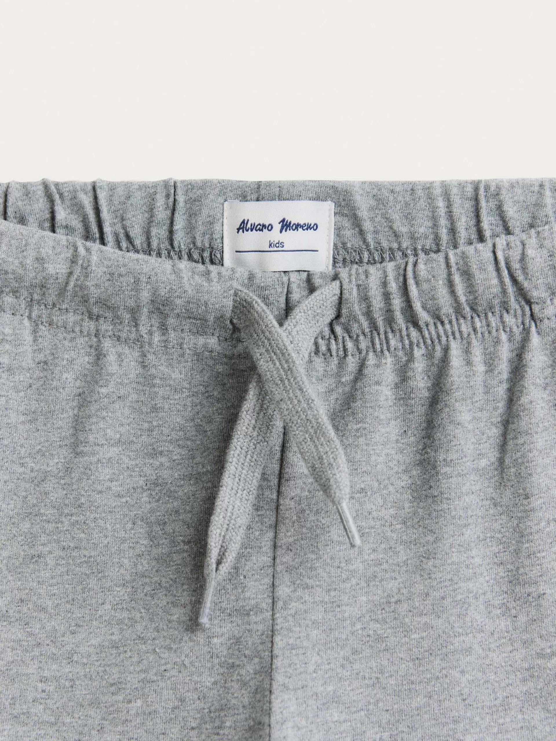 Pijama compuesto por dos piezas, superior e inferior. Parte superior camiseta de manga larga con cuello redondo y estampación personalizada en el frontal. Pantalón liso con cinturilla elástica y cordón ajustable.