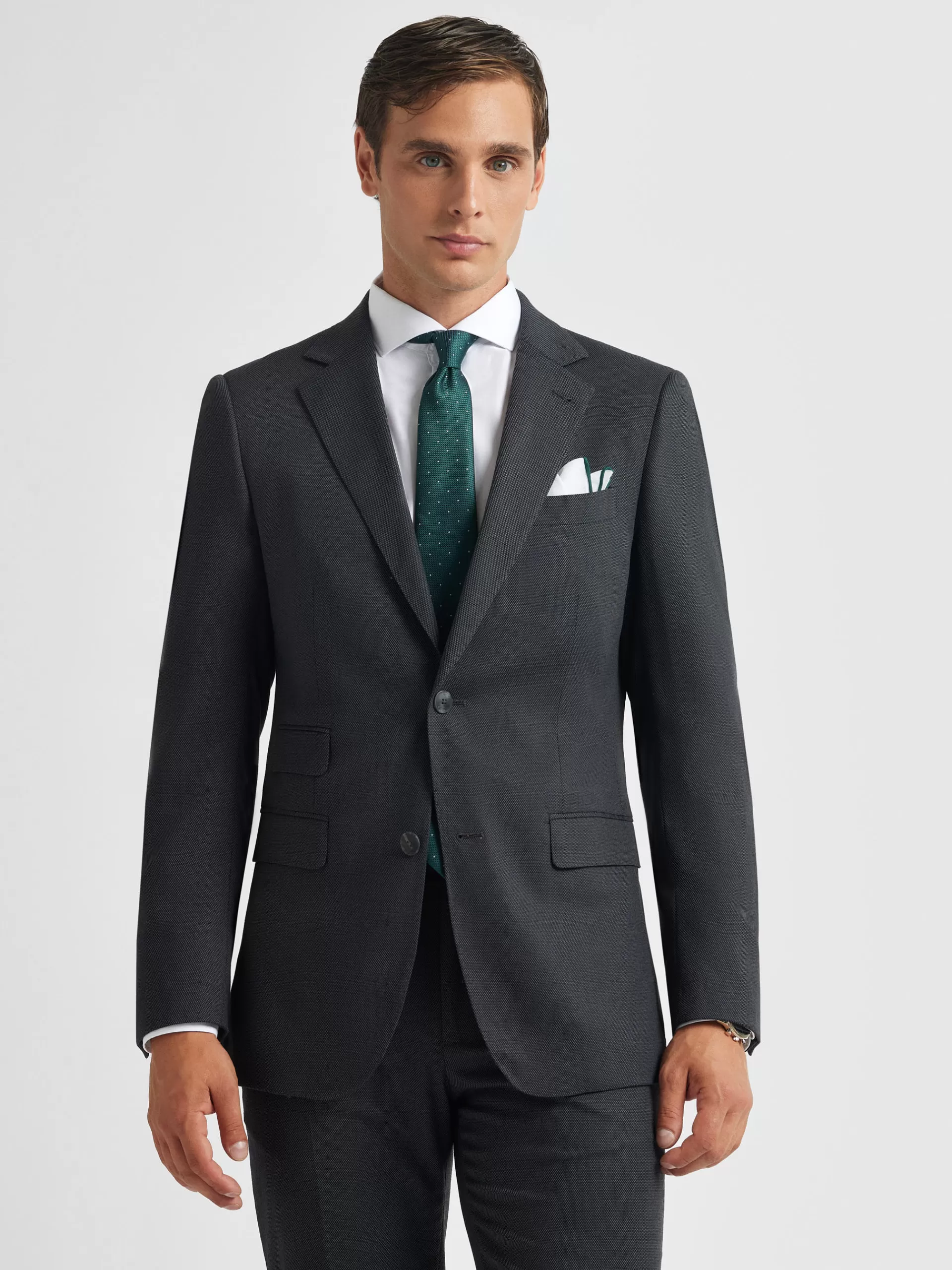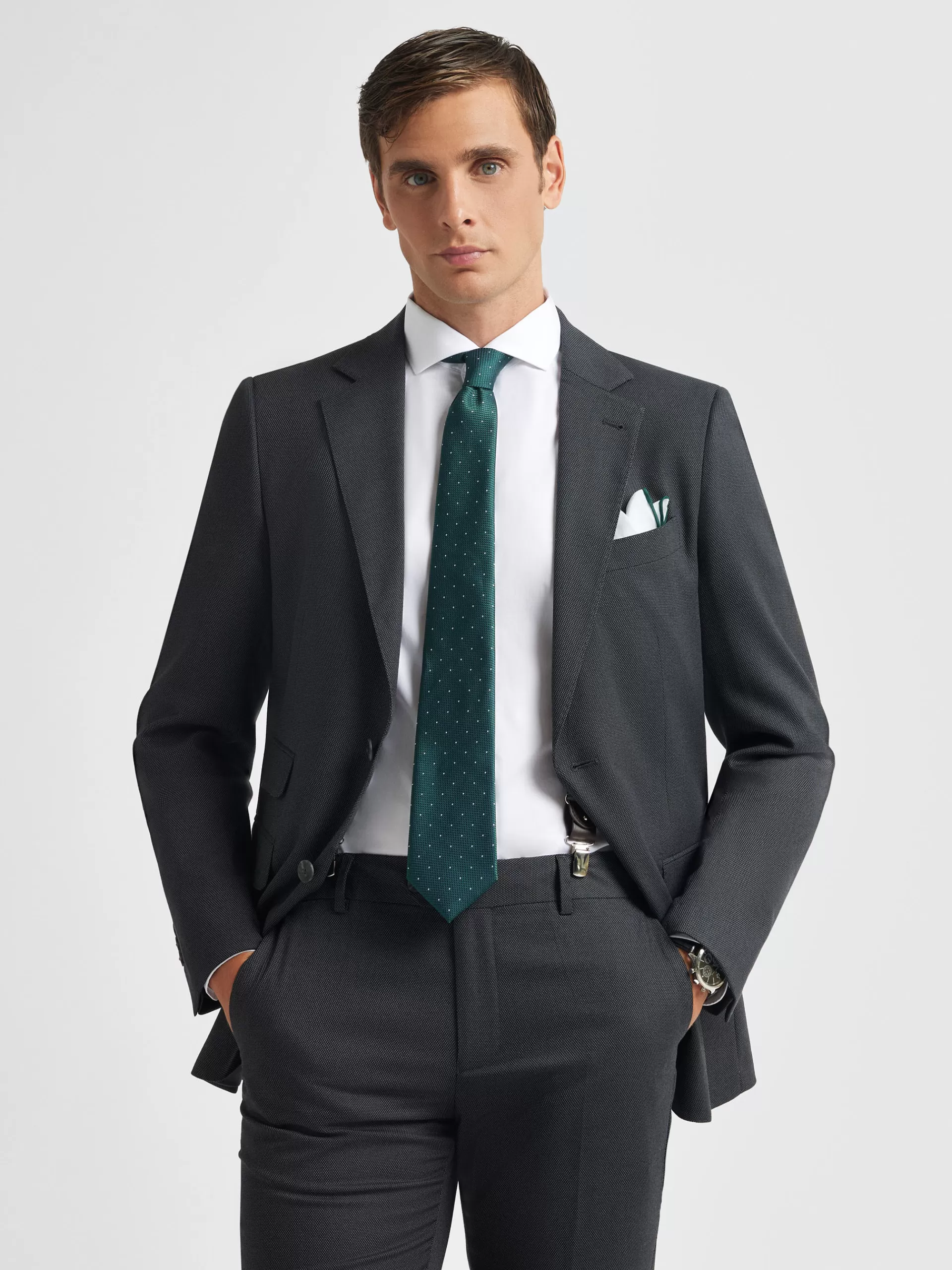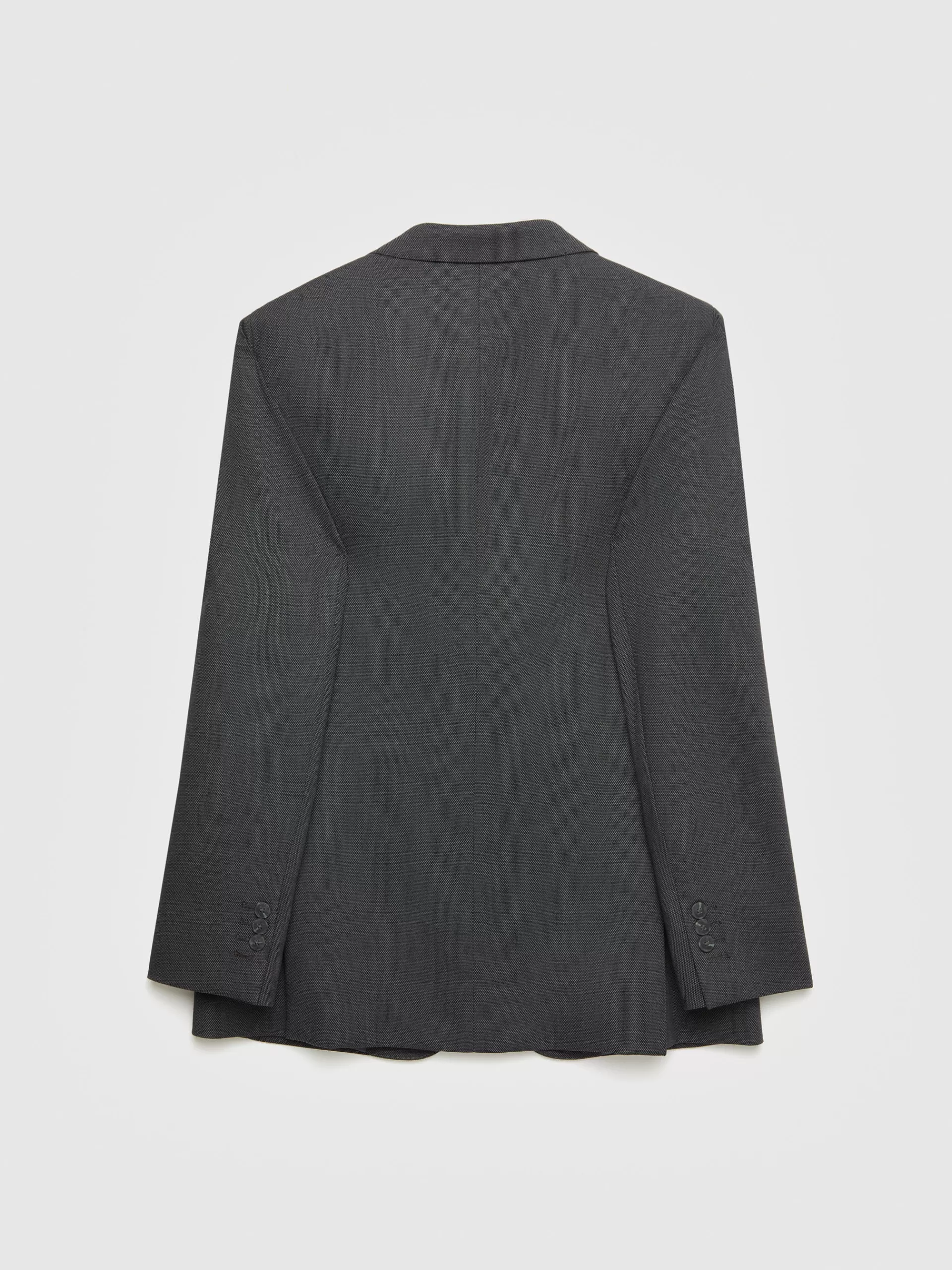 Americana con cuello y solapa en tejido de ojo de perdiz. Cierre central mediante botones, bolsillo de ojal en el pecho, tres bolsillos de solapa en la cintura y puños con botones decorativos. Interior forrado y con bolsillos.